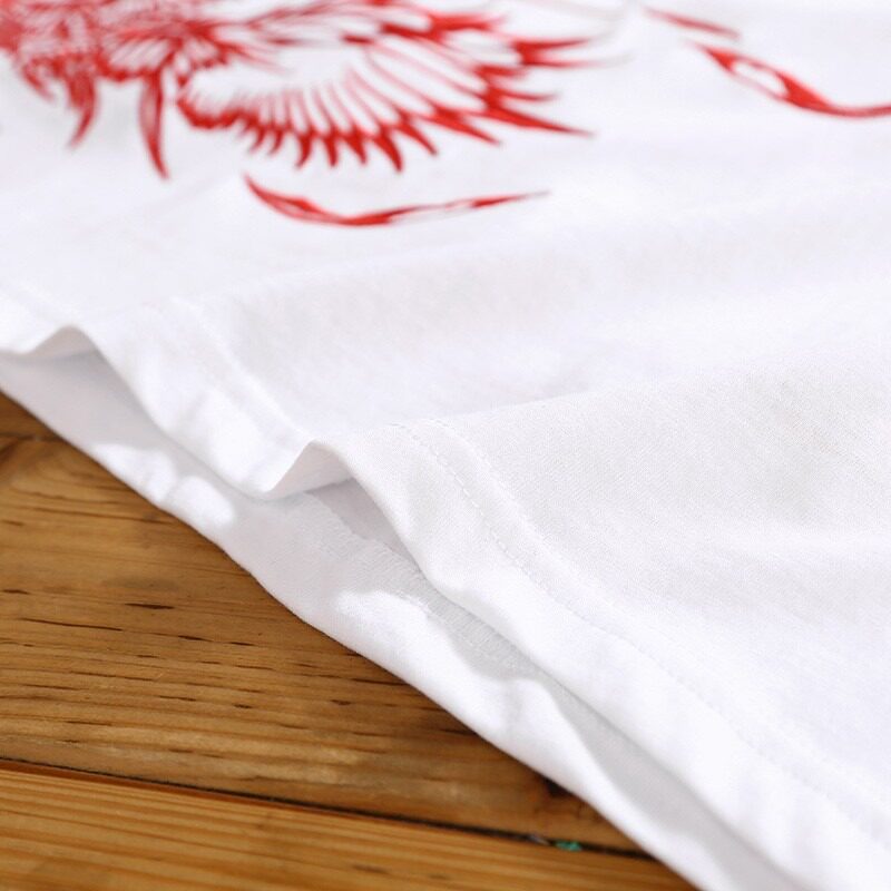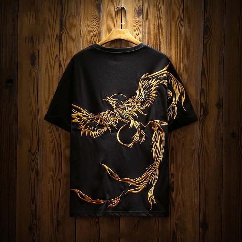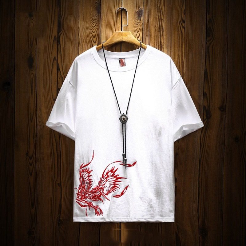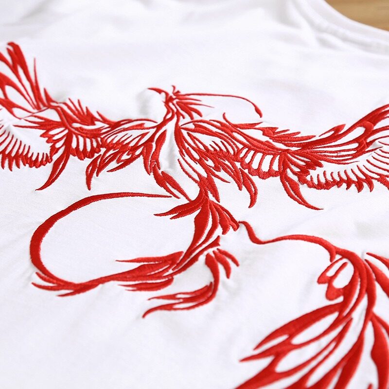 Китайский хлопковый Феникс, трендовая футболка, китайский стиль, короткий рукав, оверсайз, размер, с вышивкой, этнический стиль