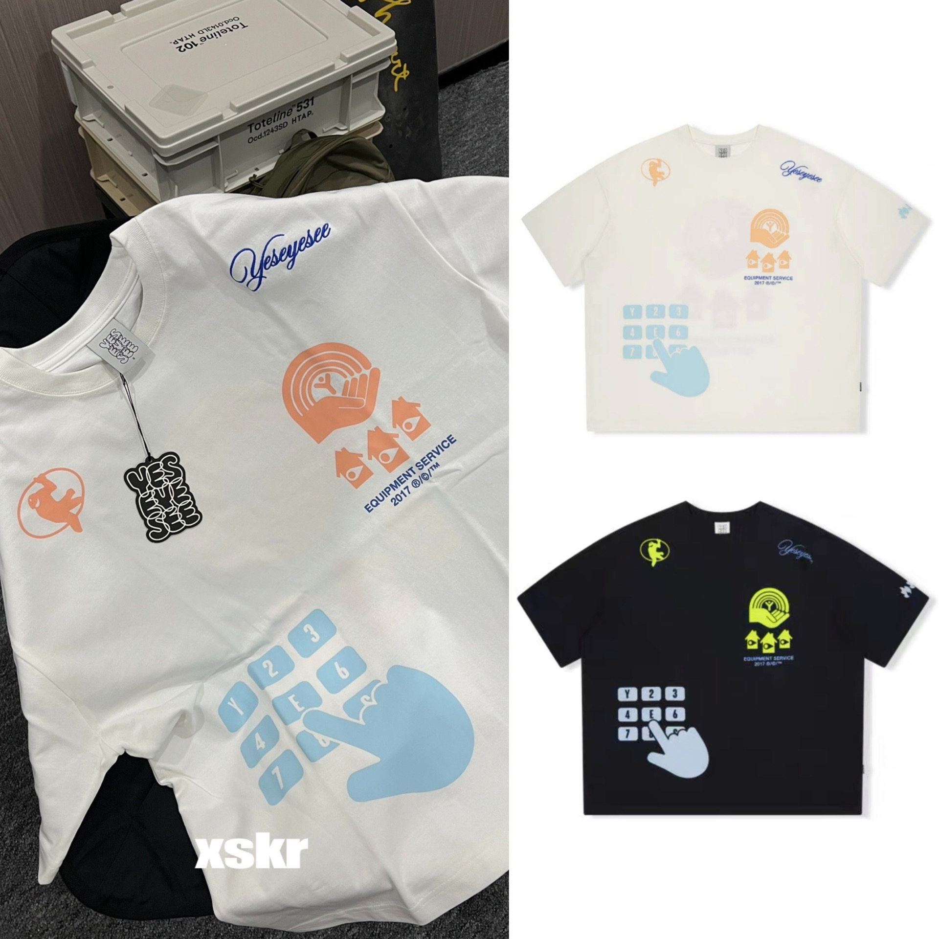 Sese yeseyesee Южная Корея 23 Весна и летняя прилив Y.E.S Security Tee Creative Print Short -Sleeed T -For