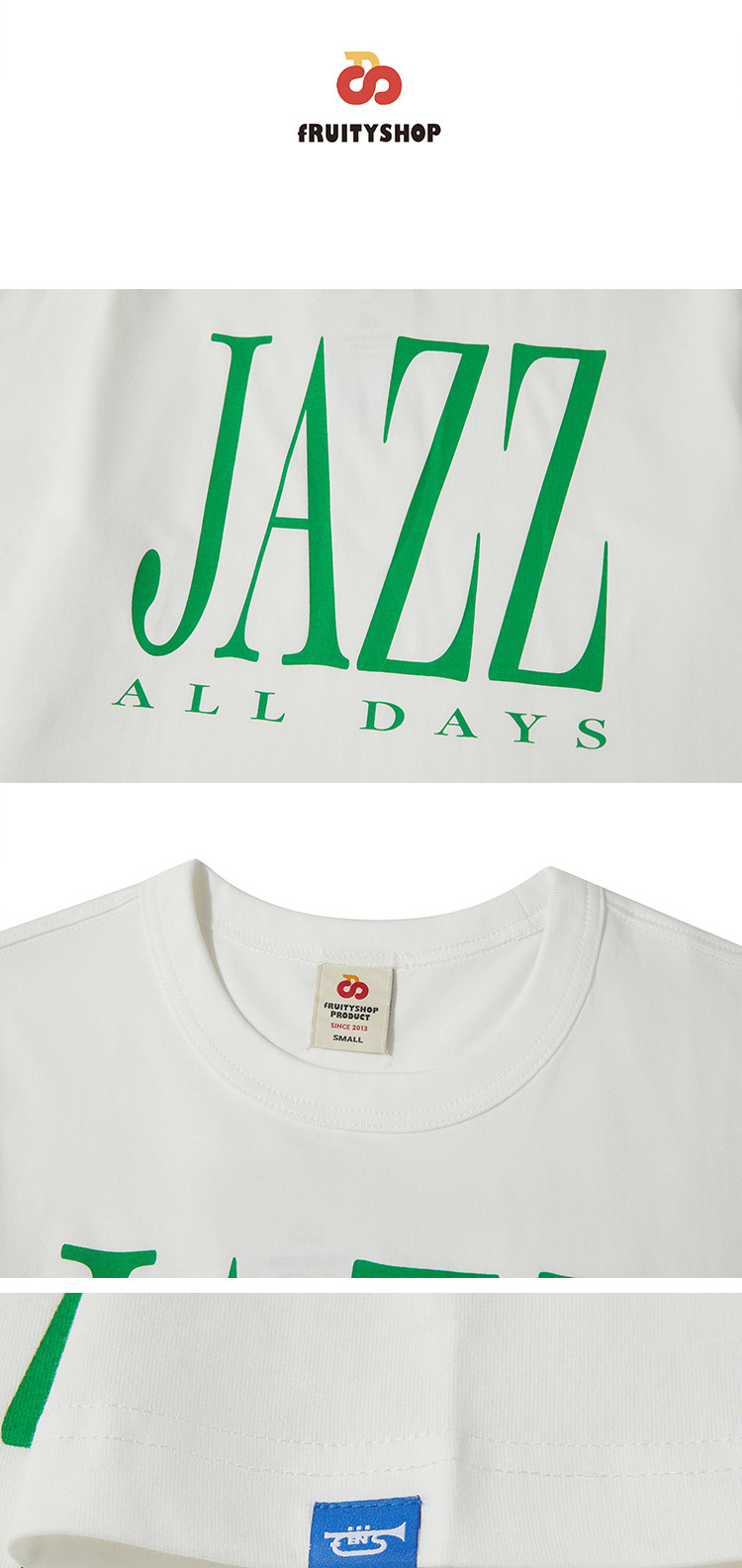 FruiteShop | Джаз все дни круглый шее хлопковое хлопок.