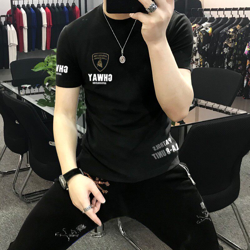 Универсальная хлопковая летняя дышащая футболка с коротким рукавом с круглым воротником, европейский стиль, облегающий крой