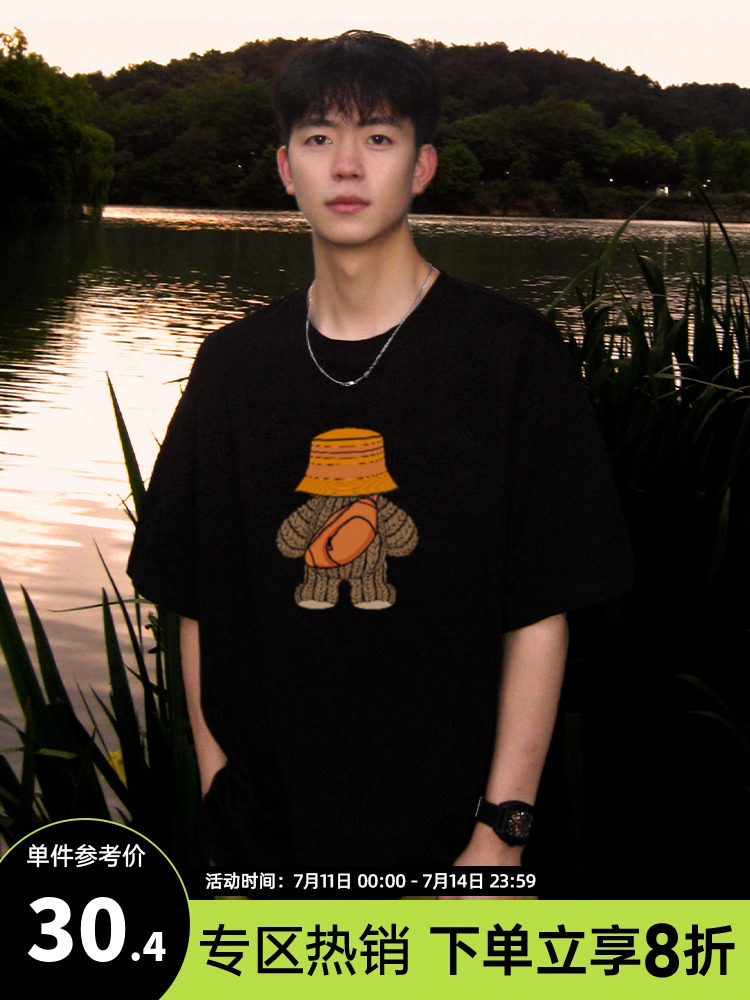 Летняя хлопковая футболка с коротким рукавом, в американском стиле, с медвежатами, коллекция 2023