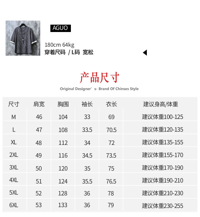 Футболка с коротким рукавом, ханьфу, китайский стиль, размер, из хлопка и льна