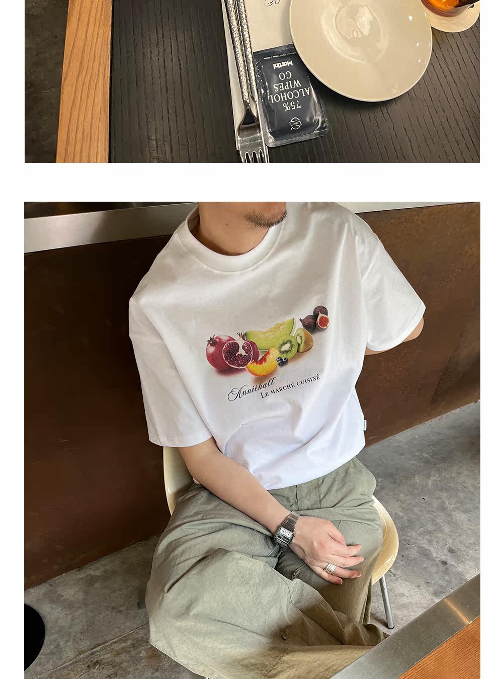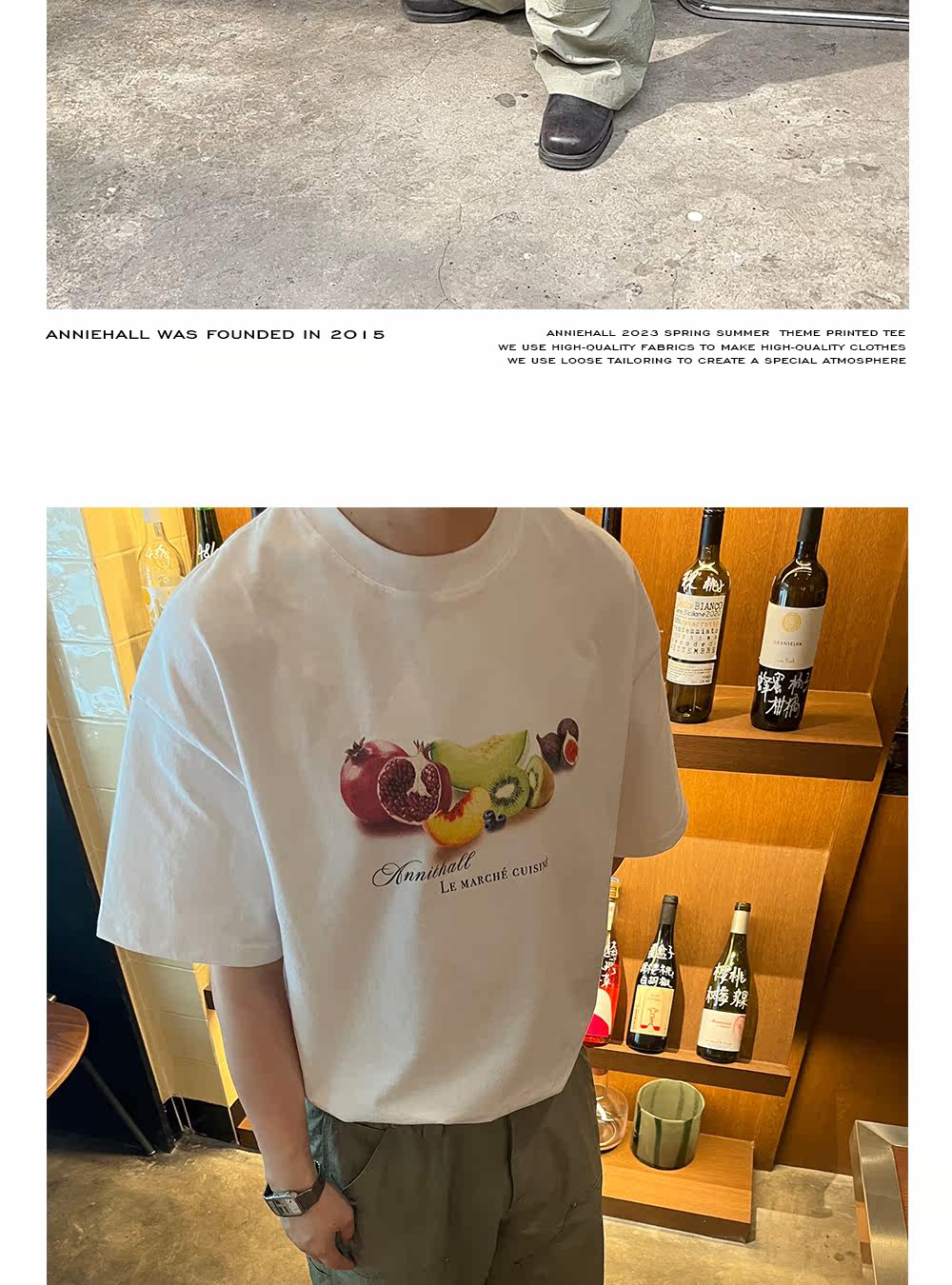 Anniehall23ss Оригинальное французское фруктовое блюдо рынка культурная рубашка винтаж коротки
