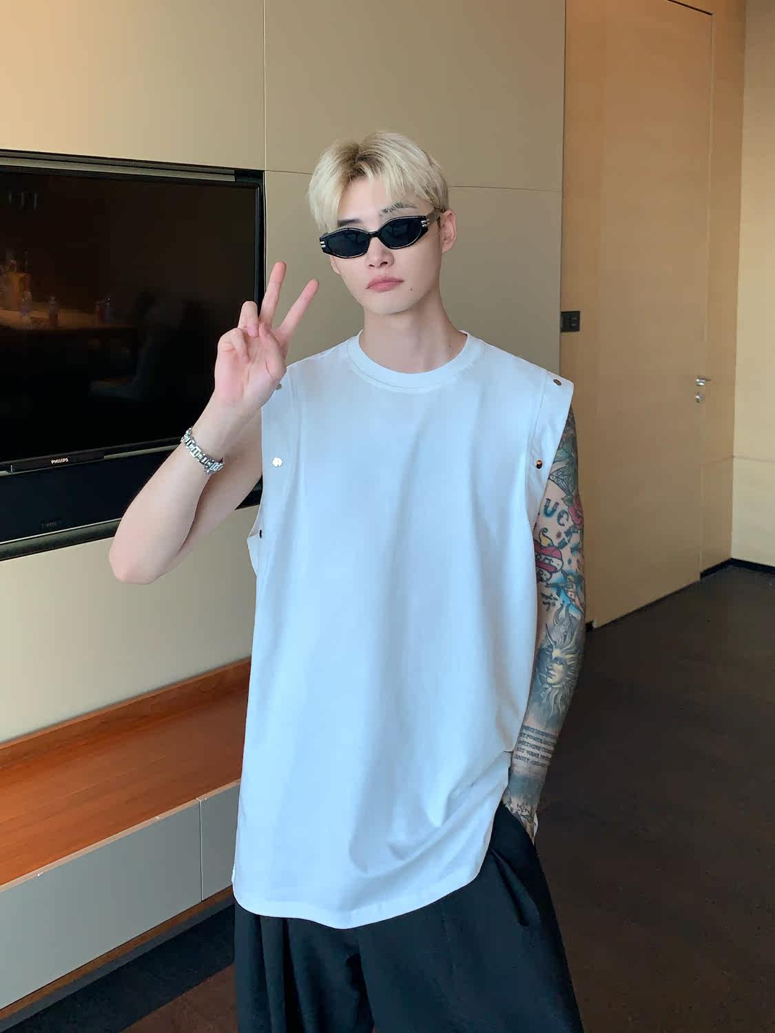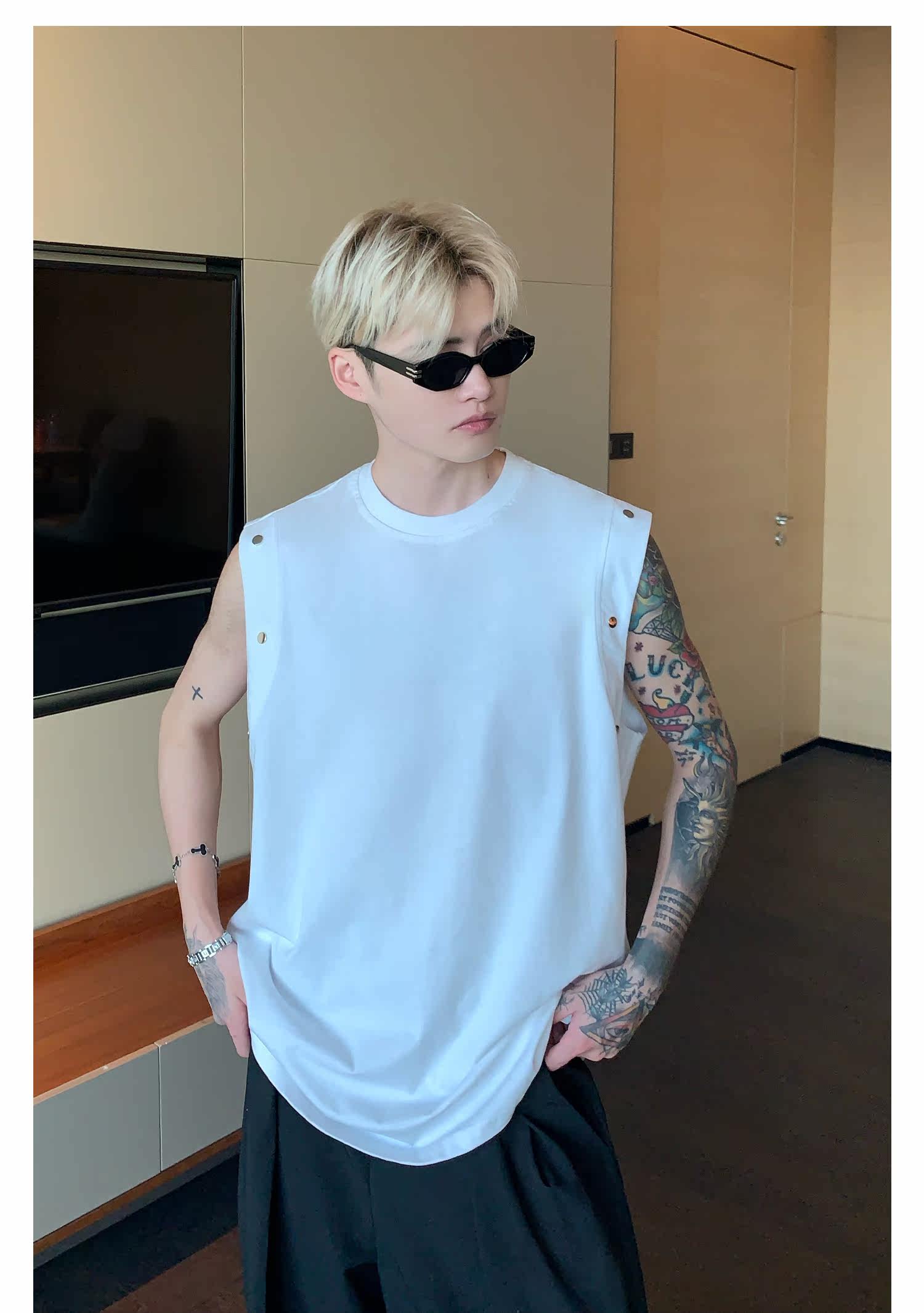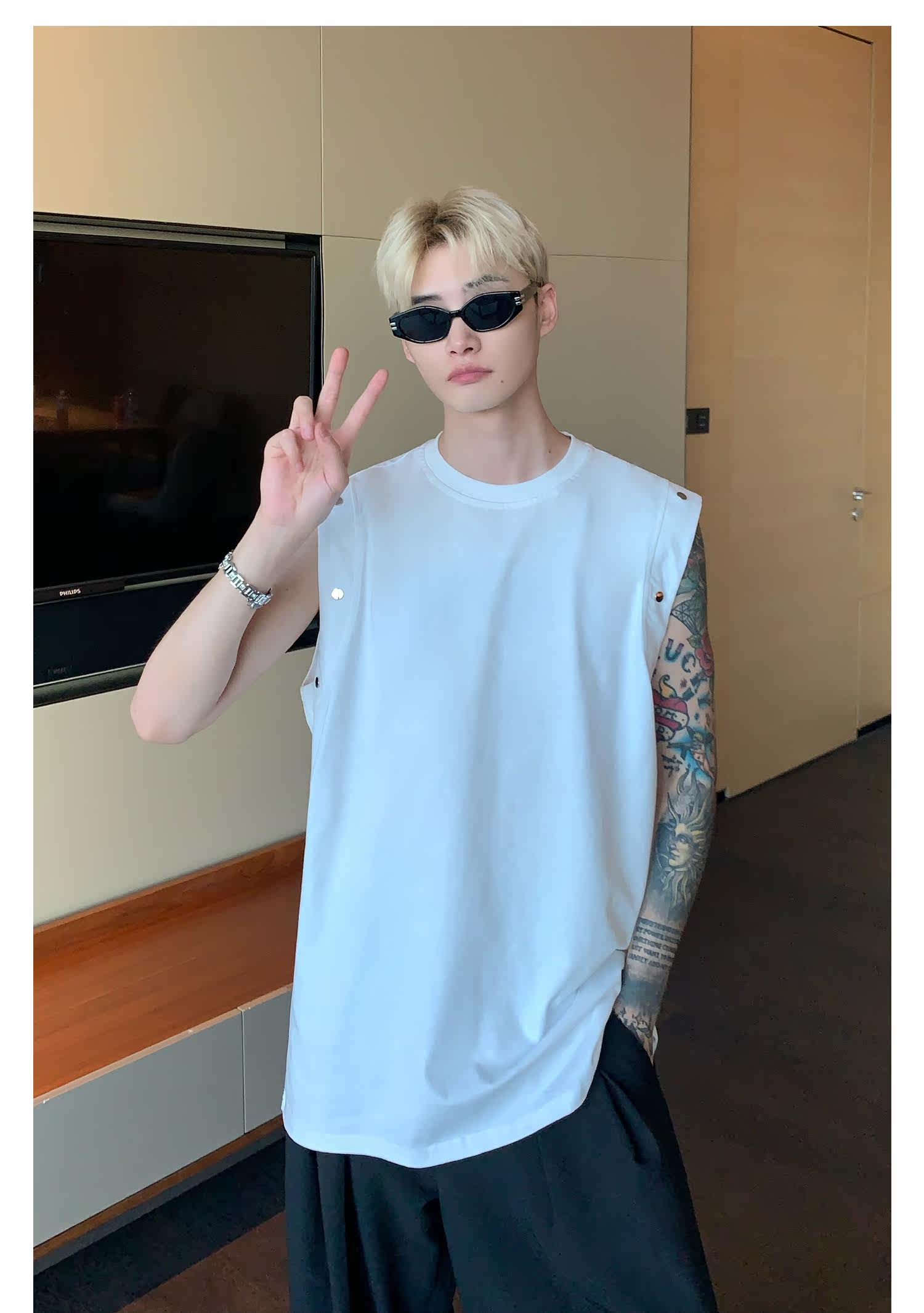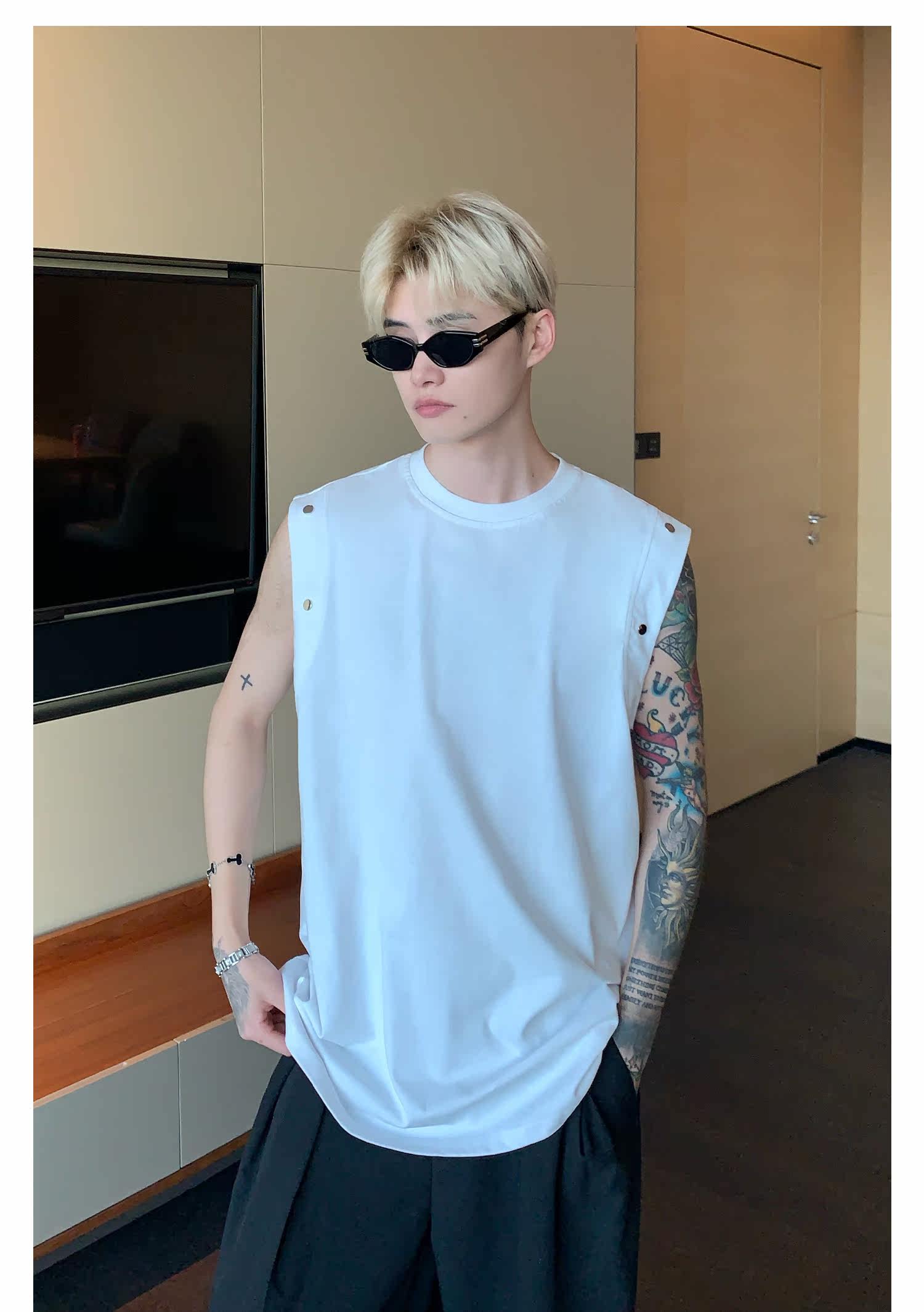 Небольшой дизайнерский летний жилет без рукавов для отдыха, футболка, тренд сезона, оверсайз