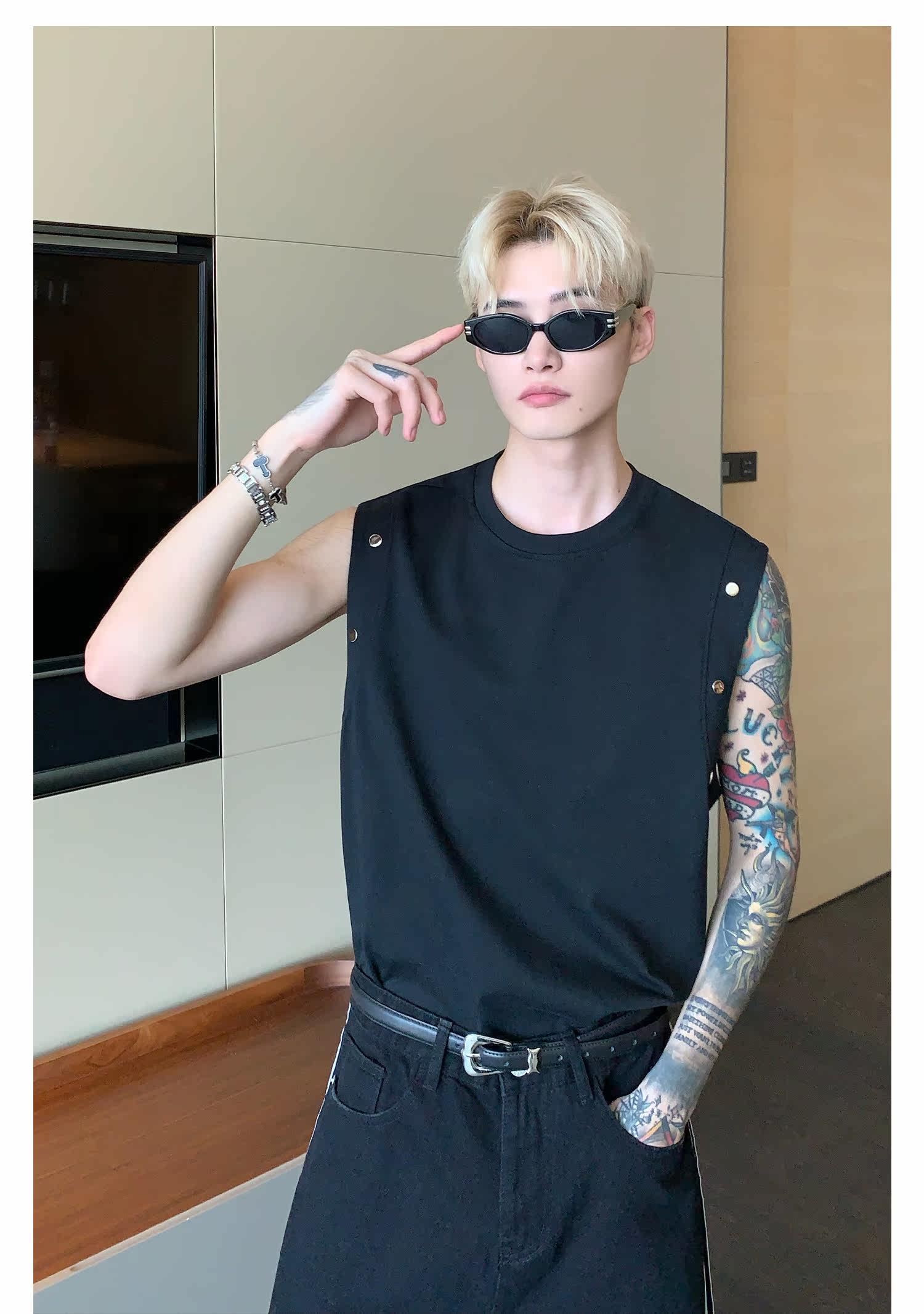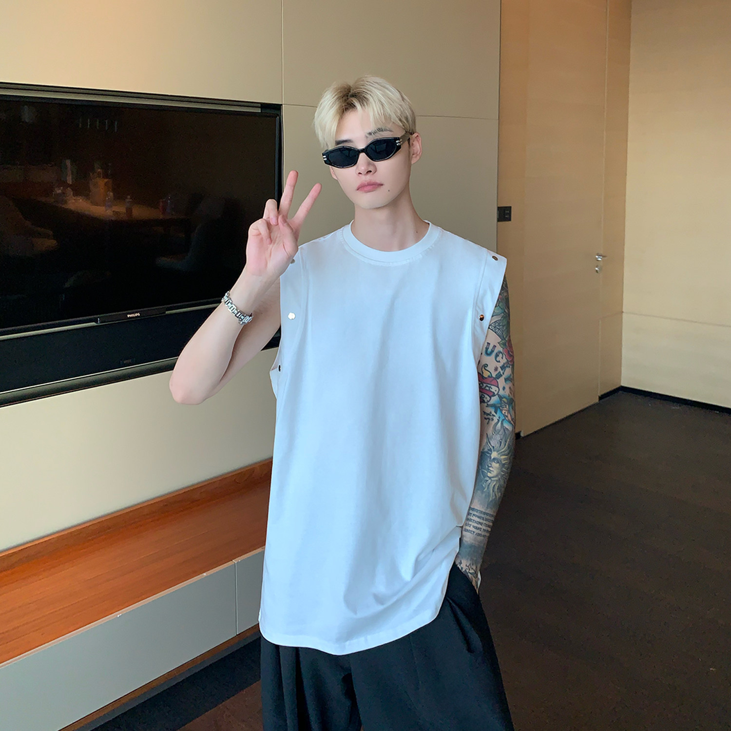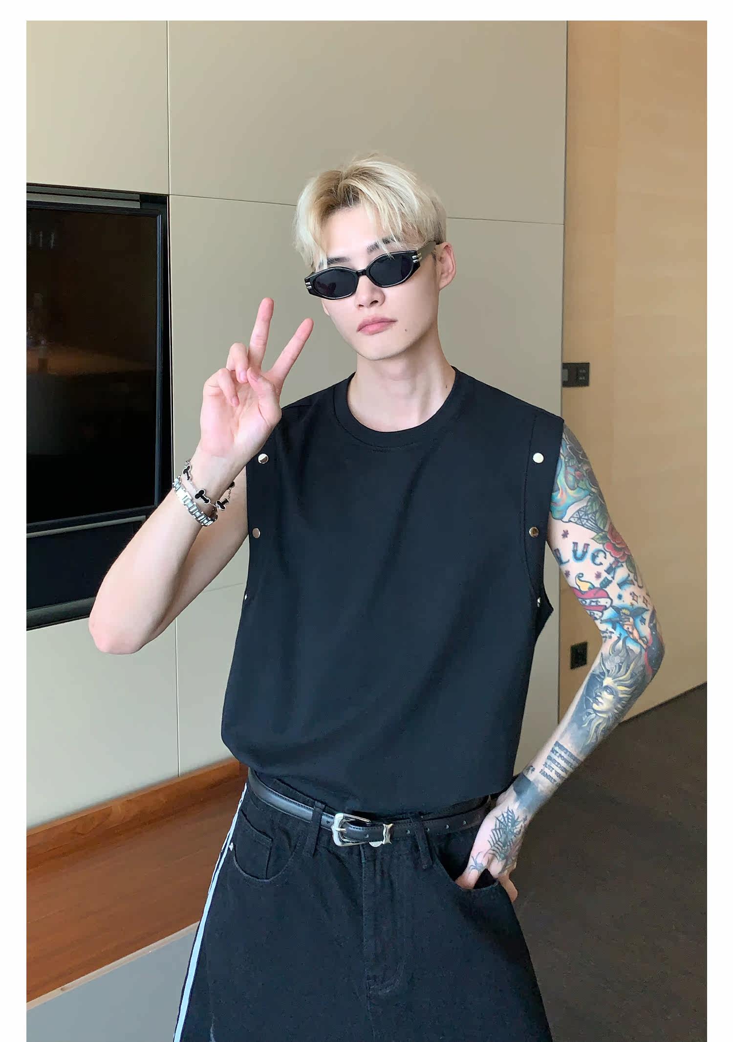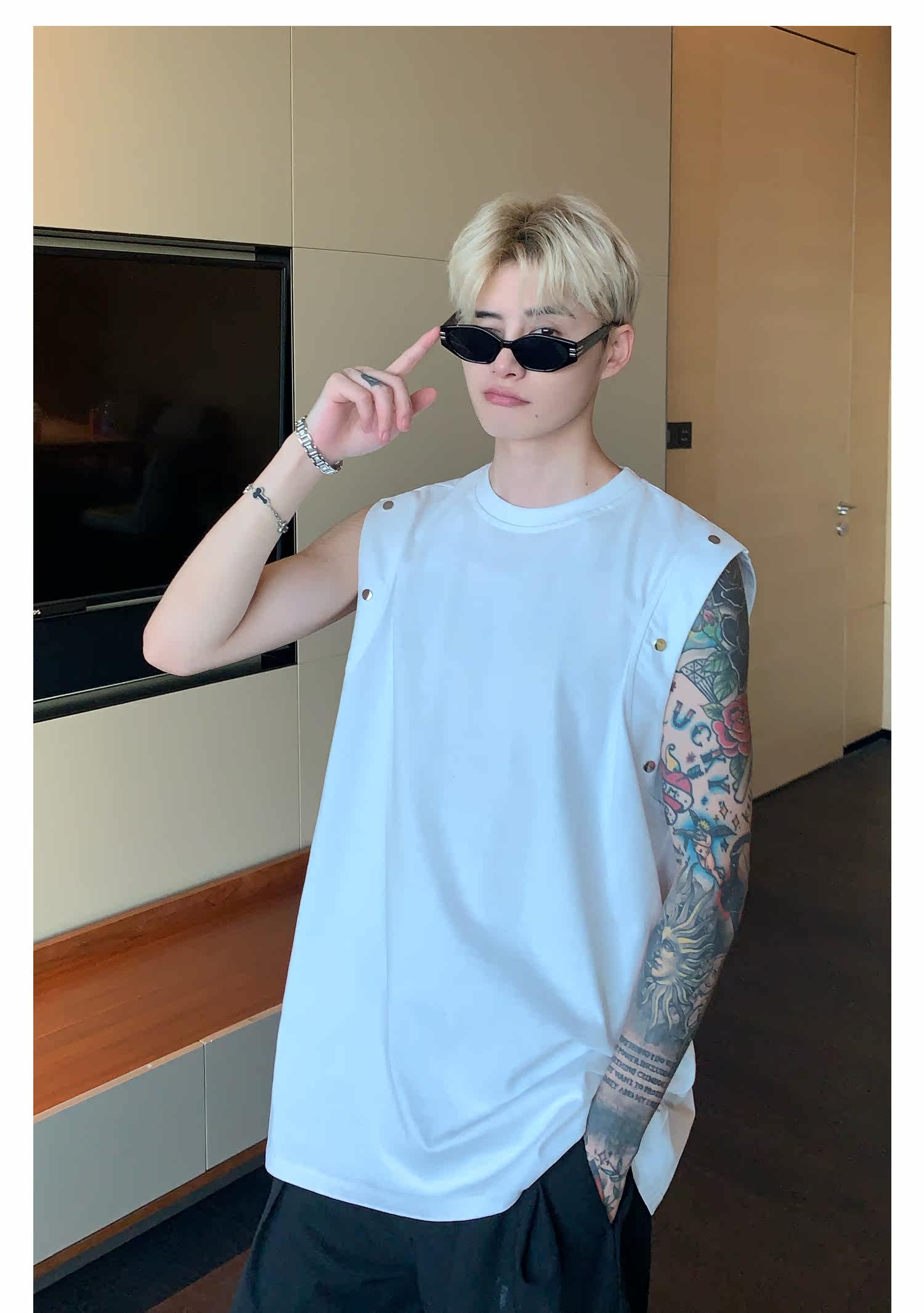 Небольшой дизайнерский летний жилет без рукавов для отдыха, футболка, тренд сезона, оверсайз