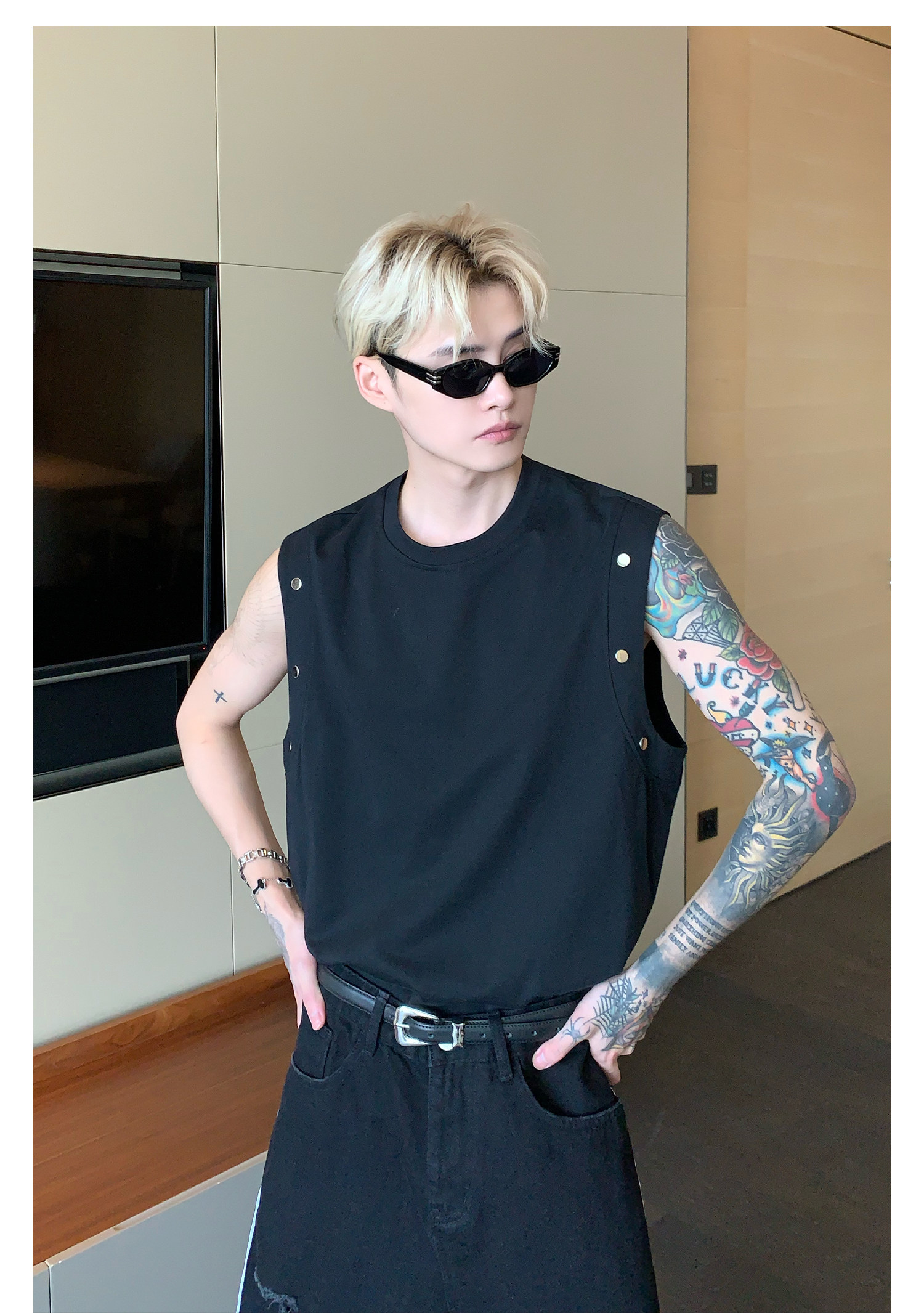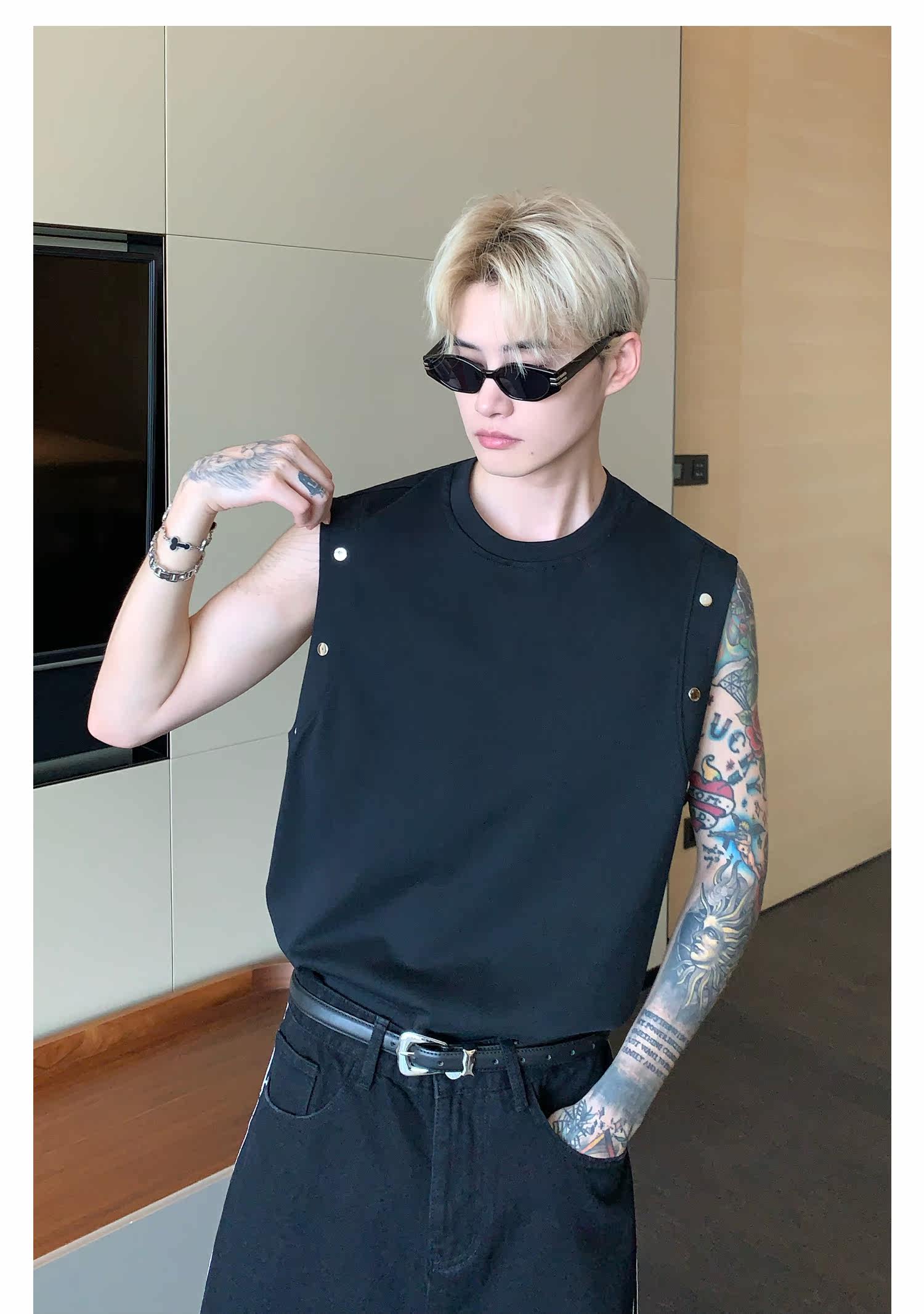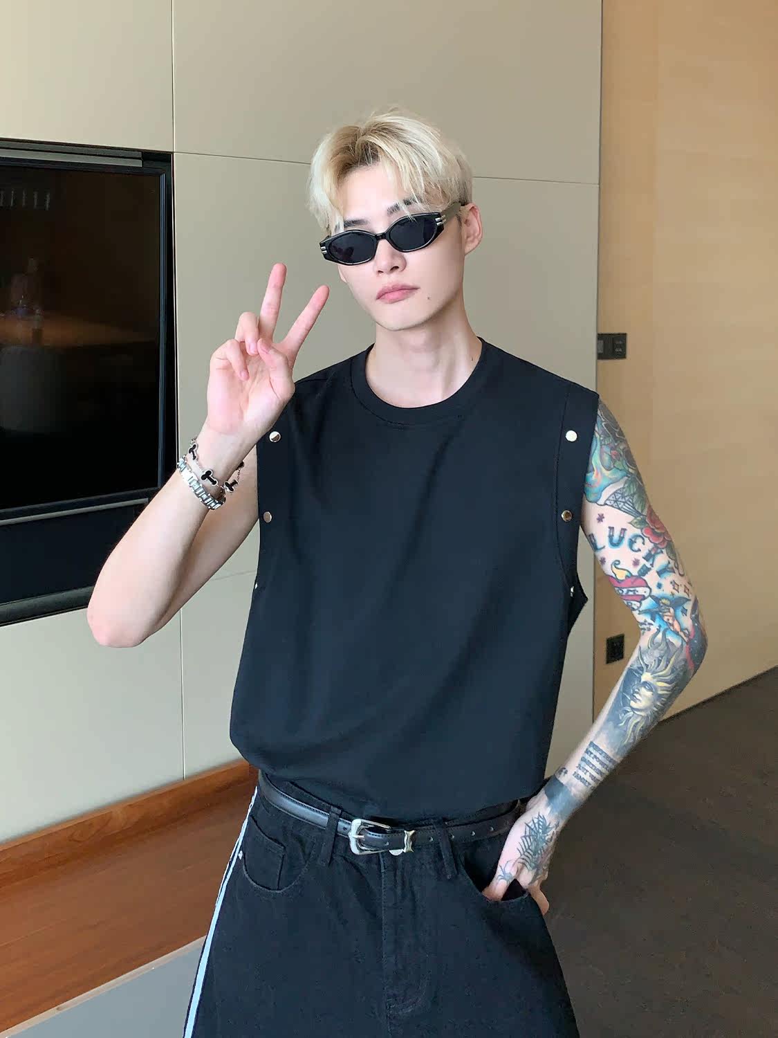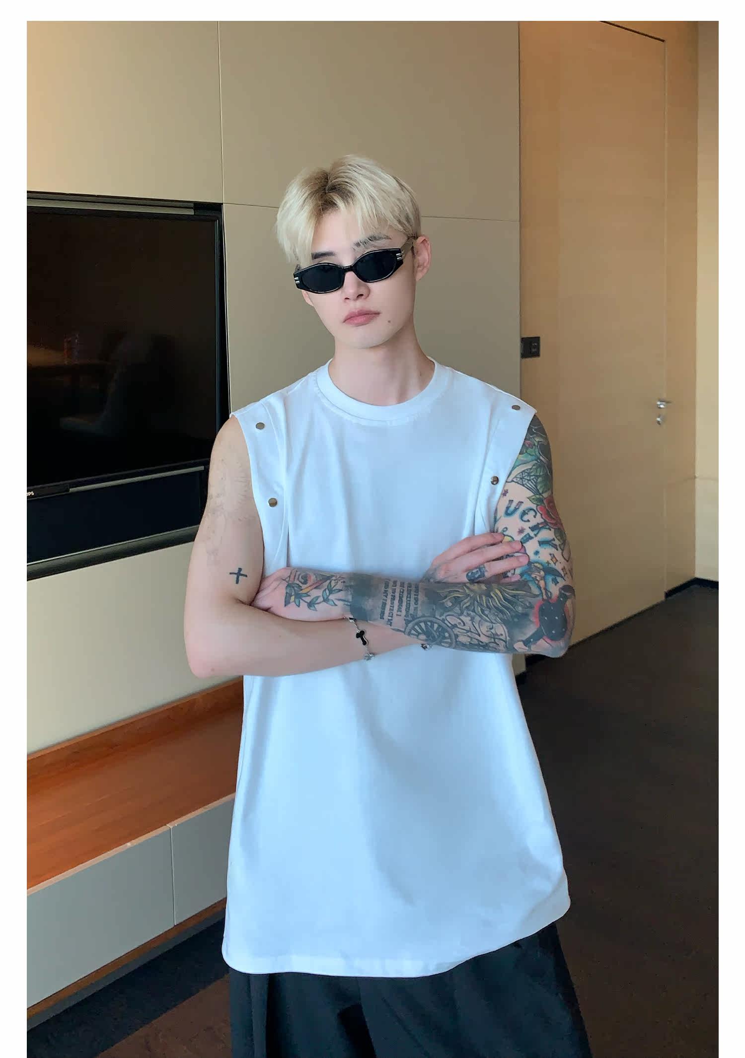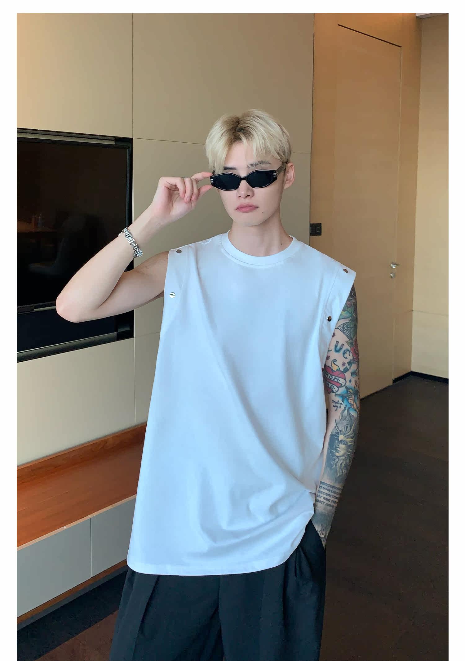 Небольшой дизайнерский летний жилет без рукавов для отдыха, футболка, тренд сезона, оверсайз