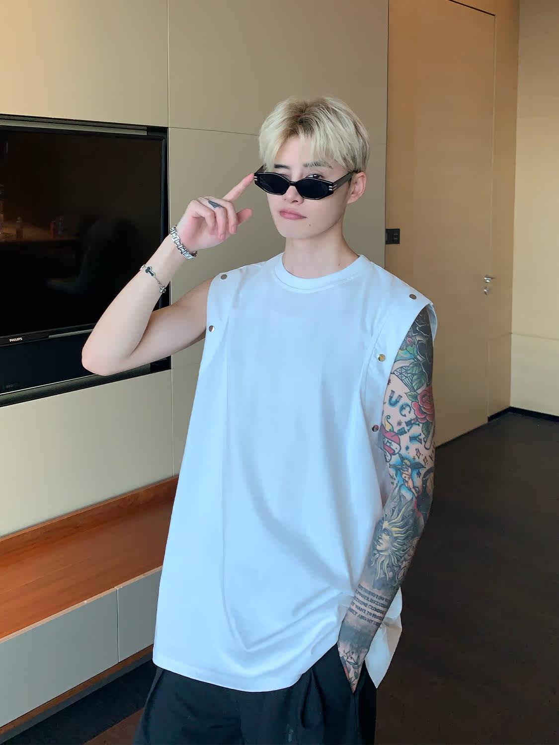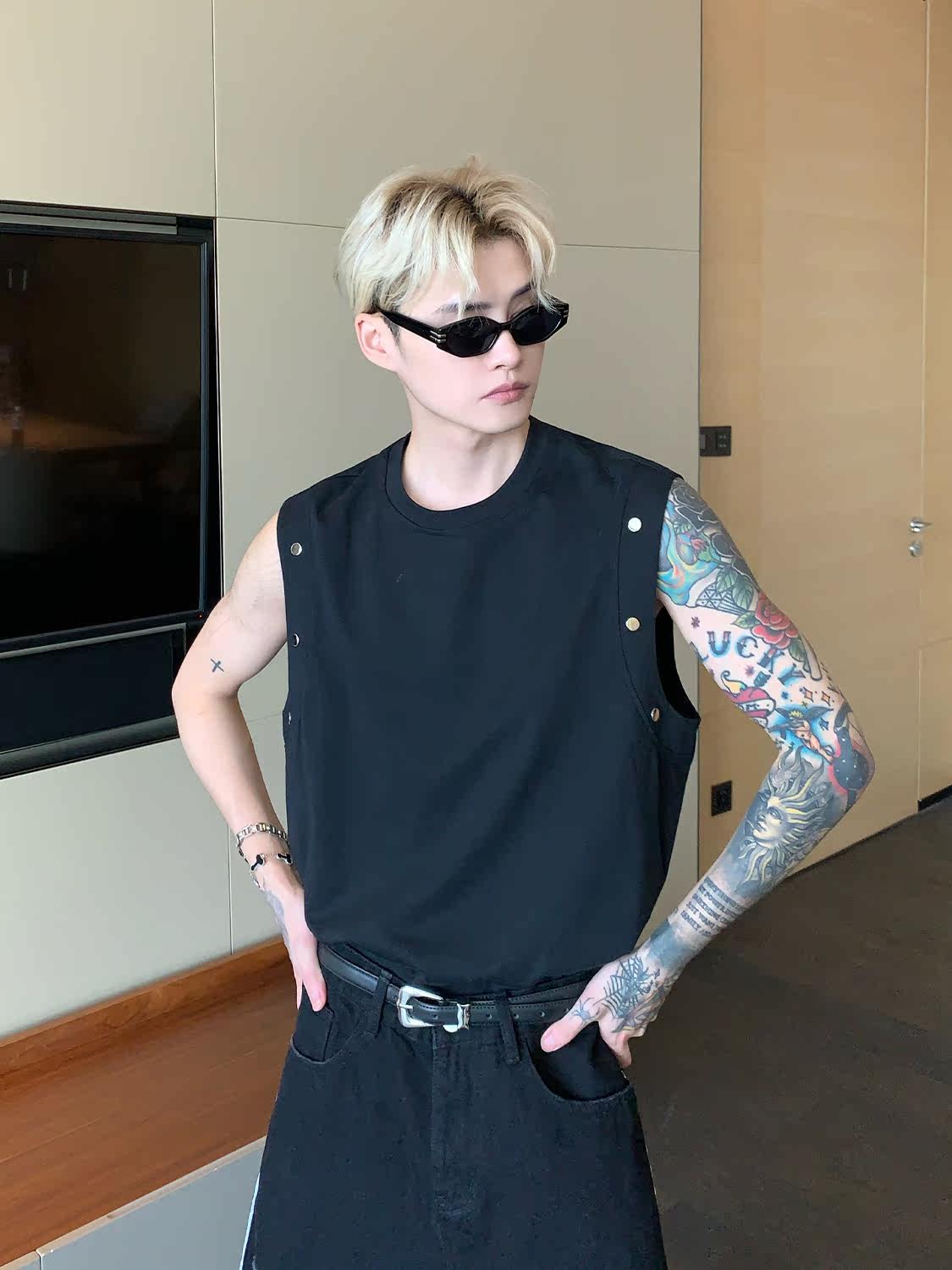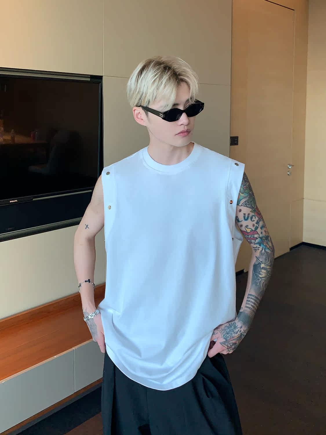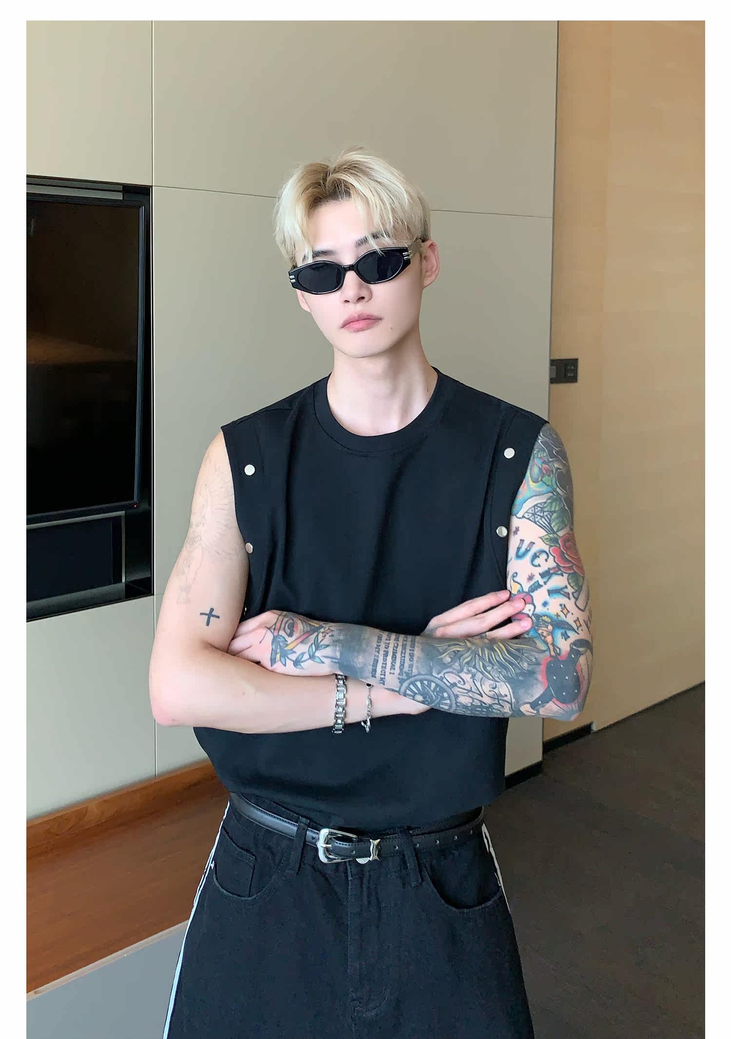 Небольшой дизайнерский летний жилет без рукавов для отдыха, футболка, тренд сезона, оверсайз