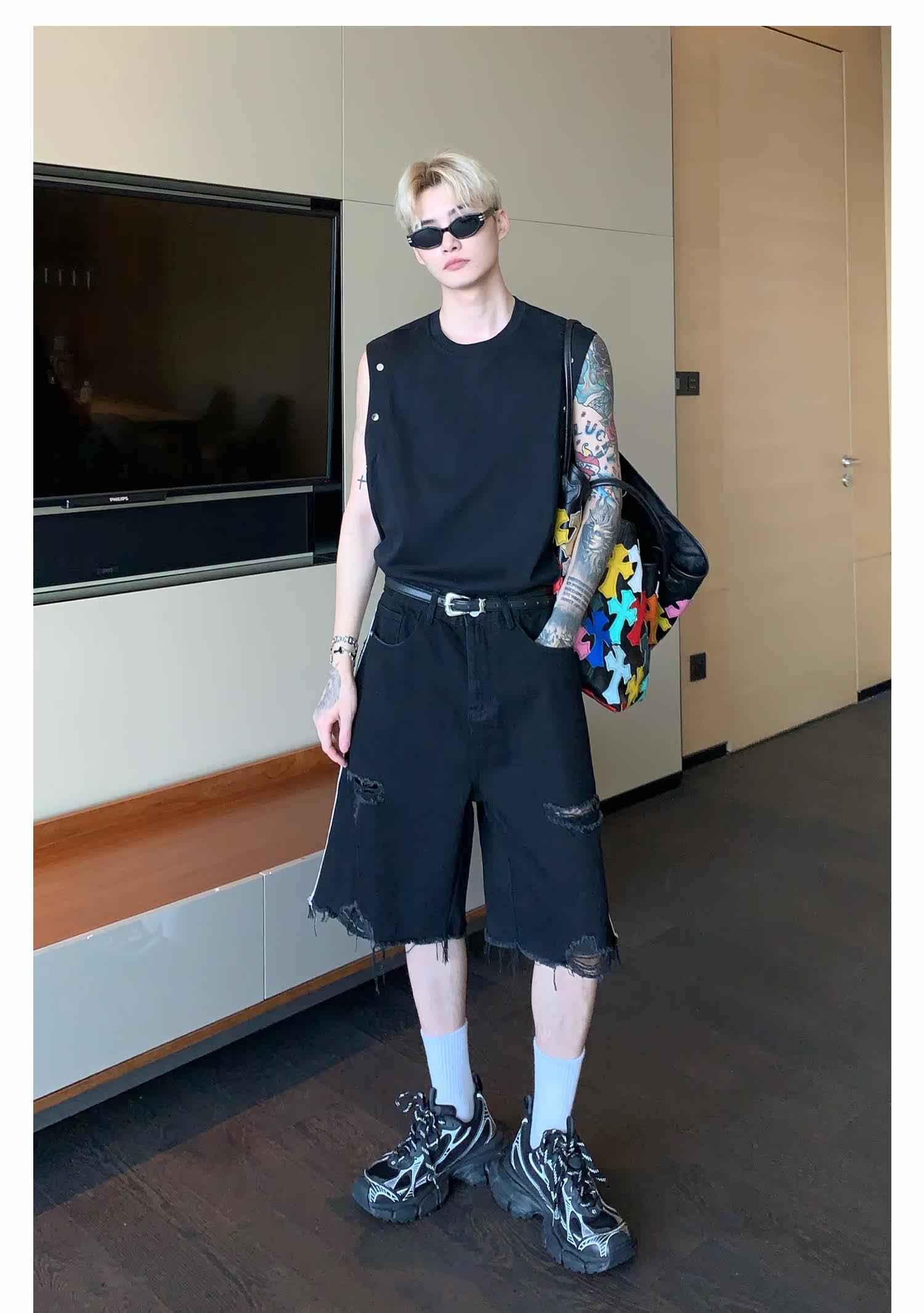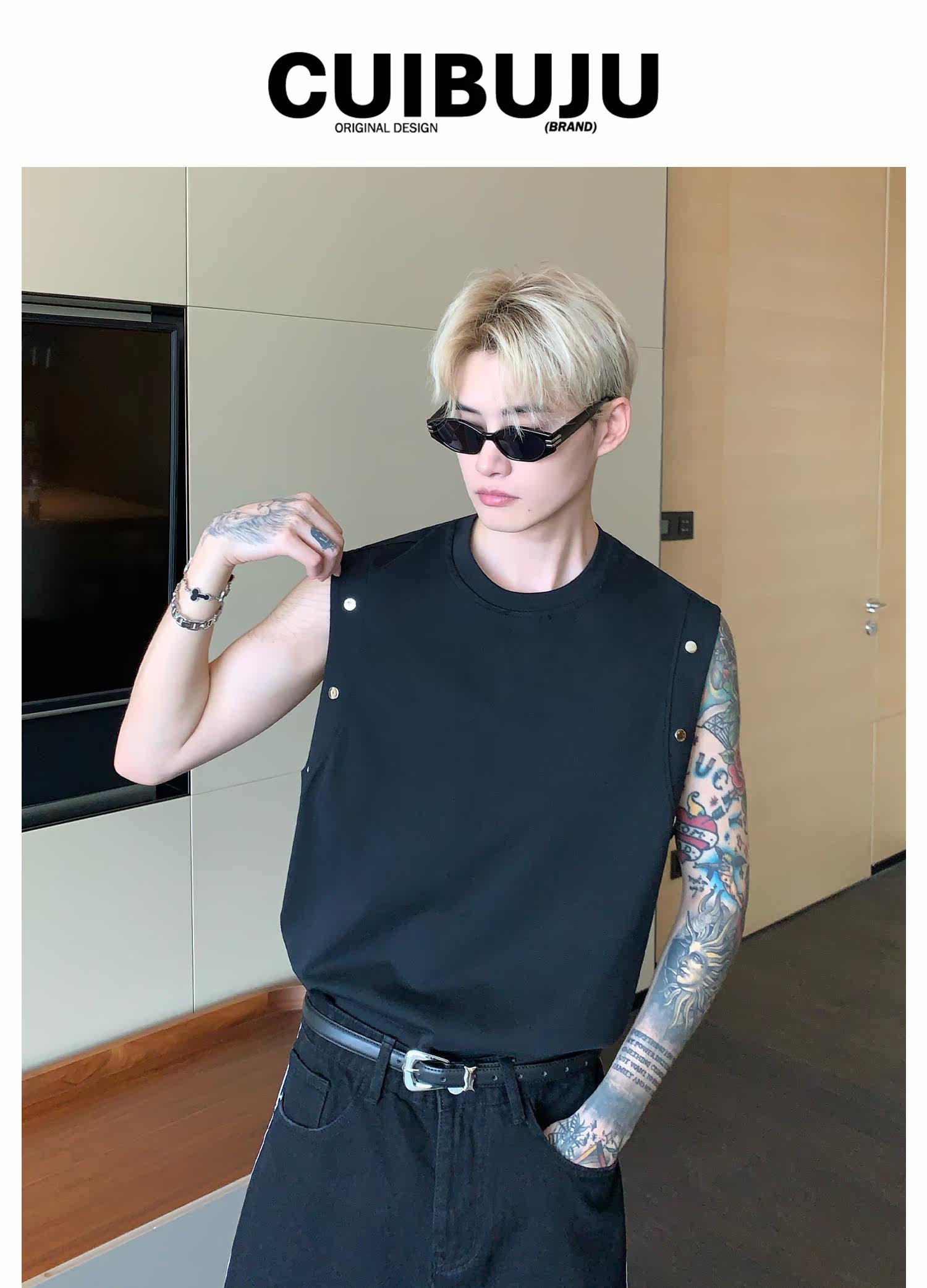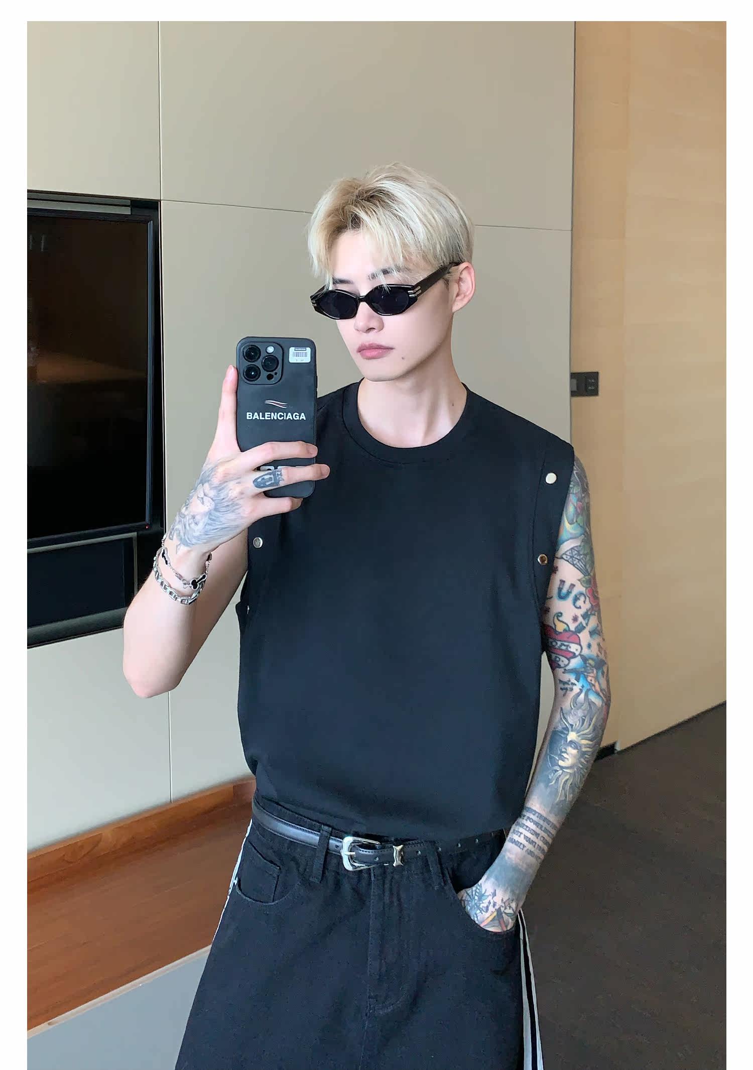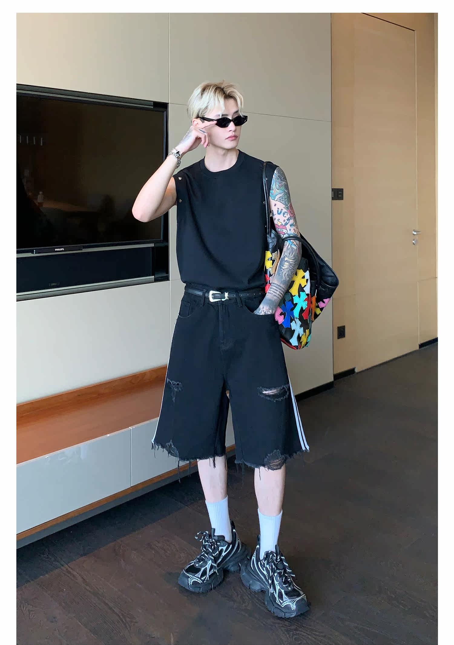 Небольшой дизайнерский летний жилет без рукавов для отдыха, футболка, тренд сезона, оверсайз