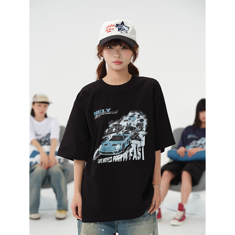 Черная хлопковая футболка с коротким рукавом в стиле хип-хоп, в американском стиле