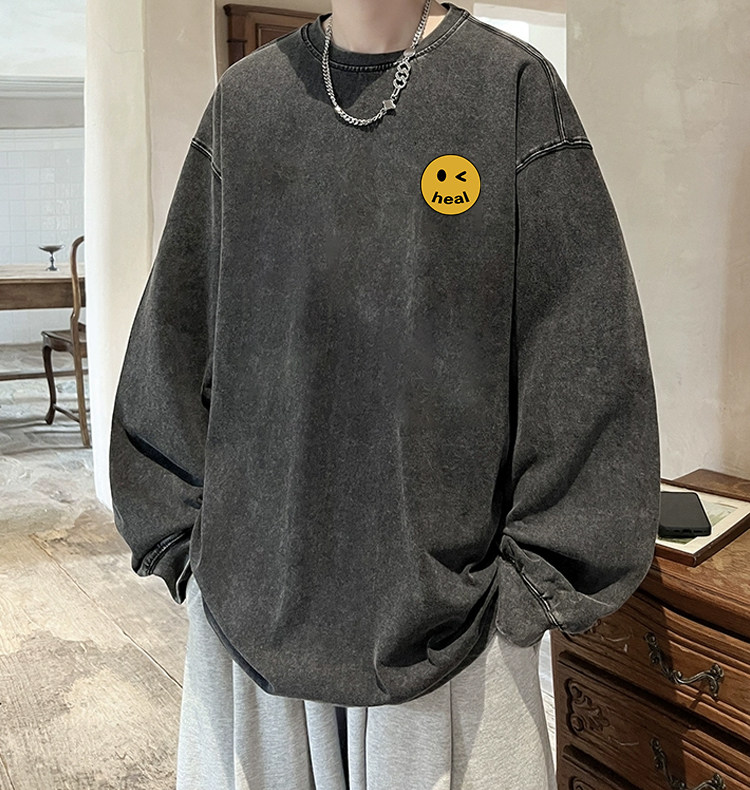 Мужской лонгслив, ретро осенняя толстовка с круглым воротником, оверсайз, для влюбленных