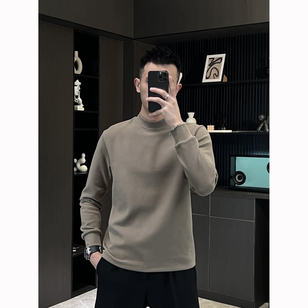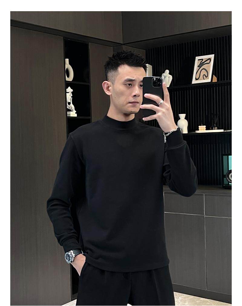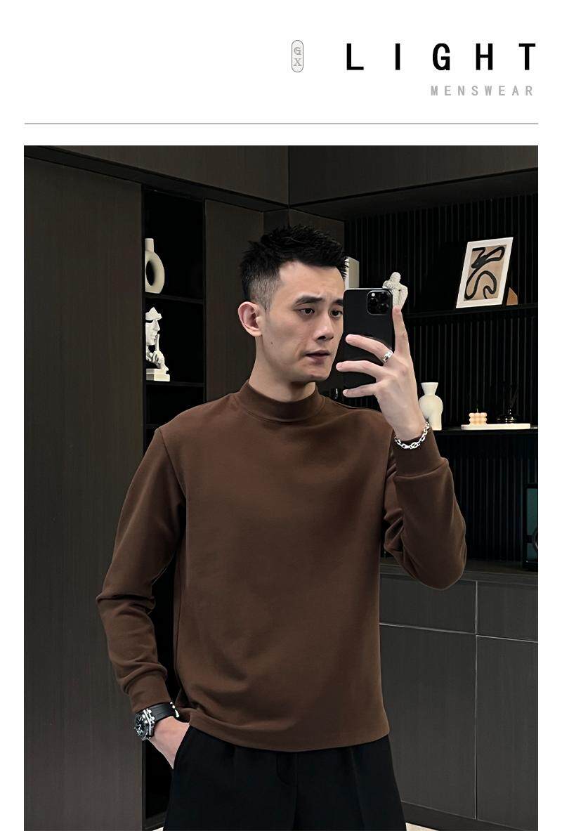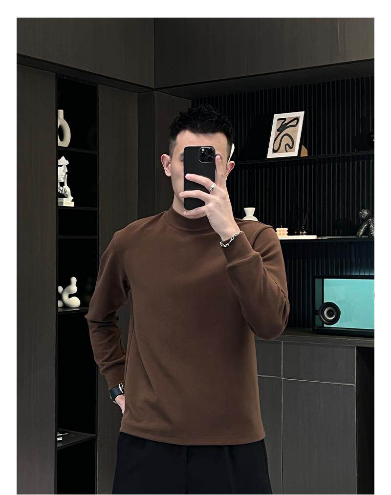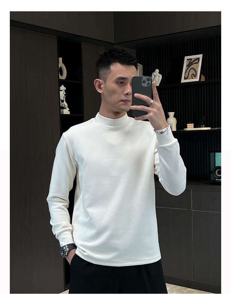 Базовая бархатная приятная телу демисезонная утепленный лонгслив, высокий воротник, городской стиль