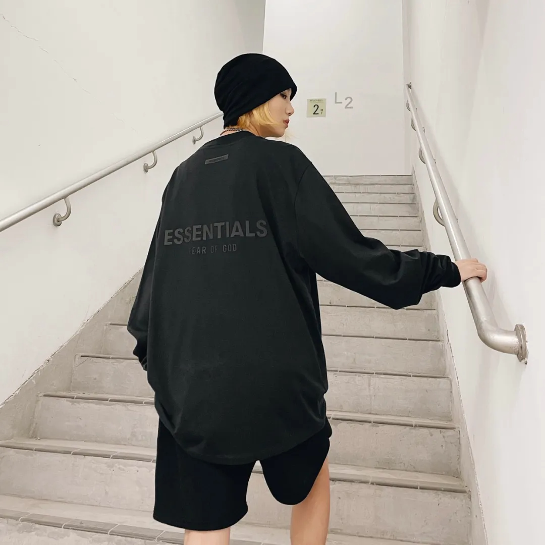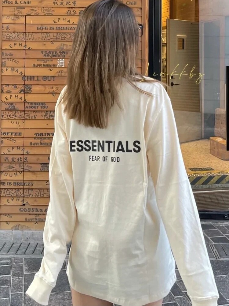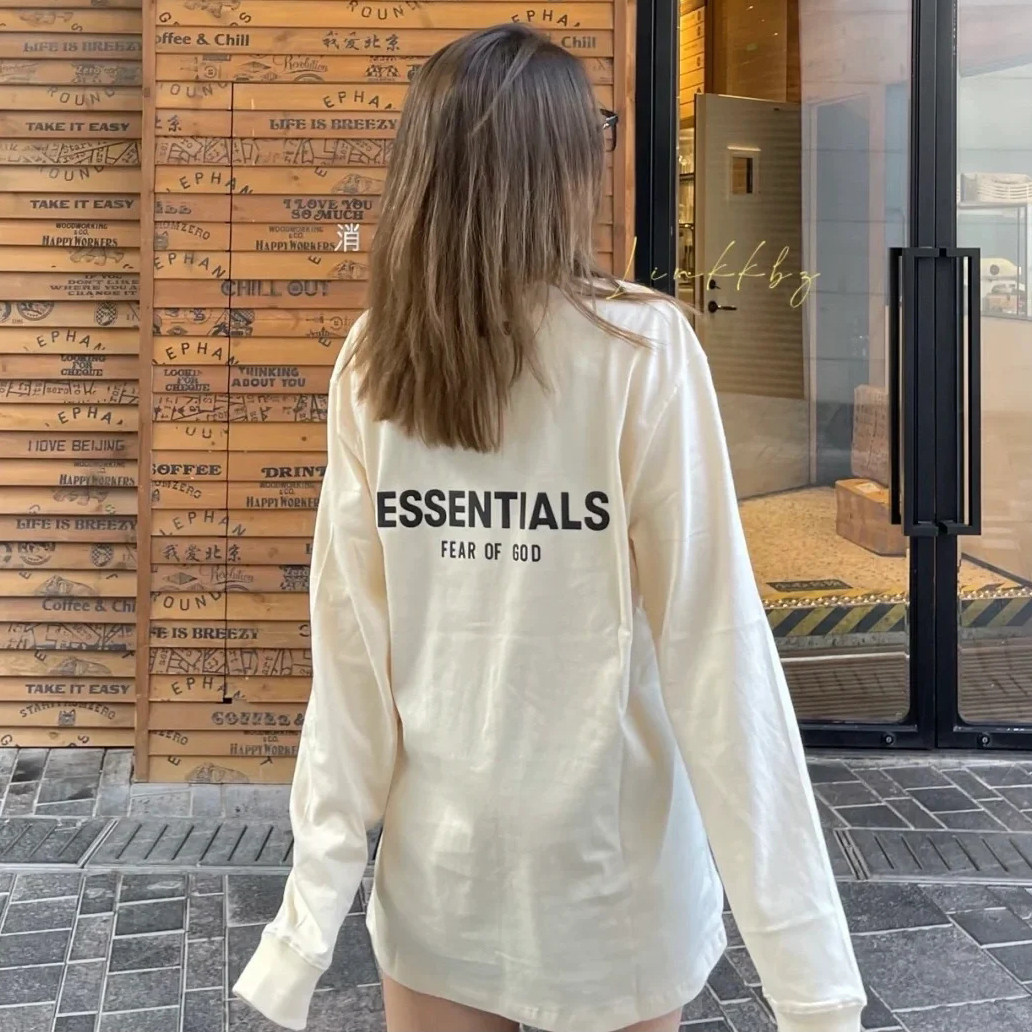 Силиконовая футболка ESSENTLAIS FOGESS2025 с длинными рукавами для мужчин и женщин, весенне-осенняя футболка в стиле хип-хоп из американского хлопка