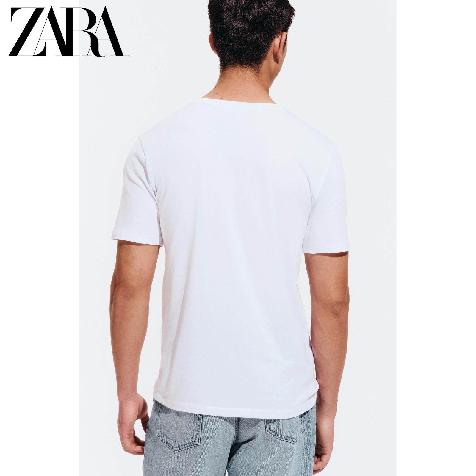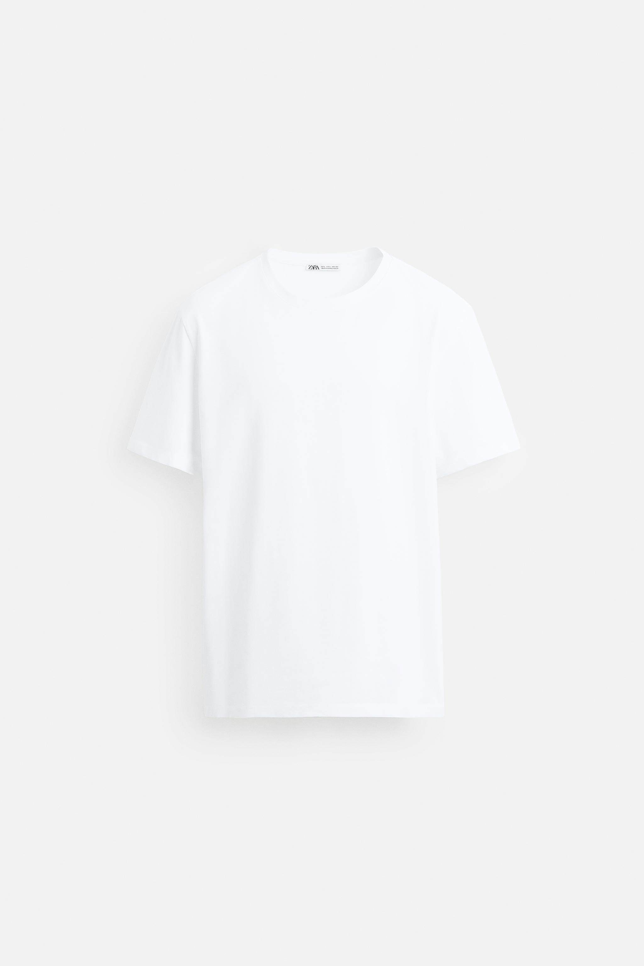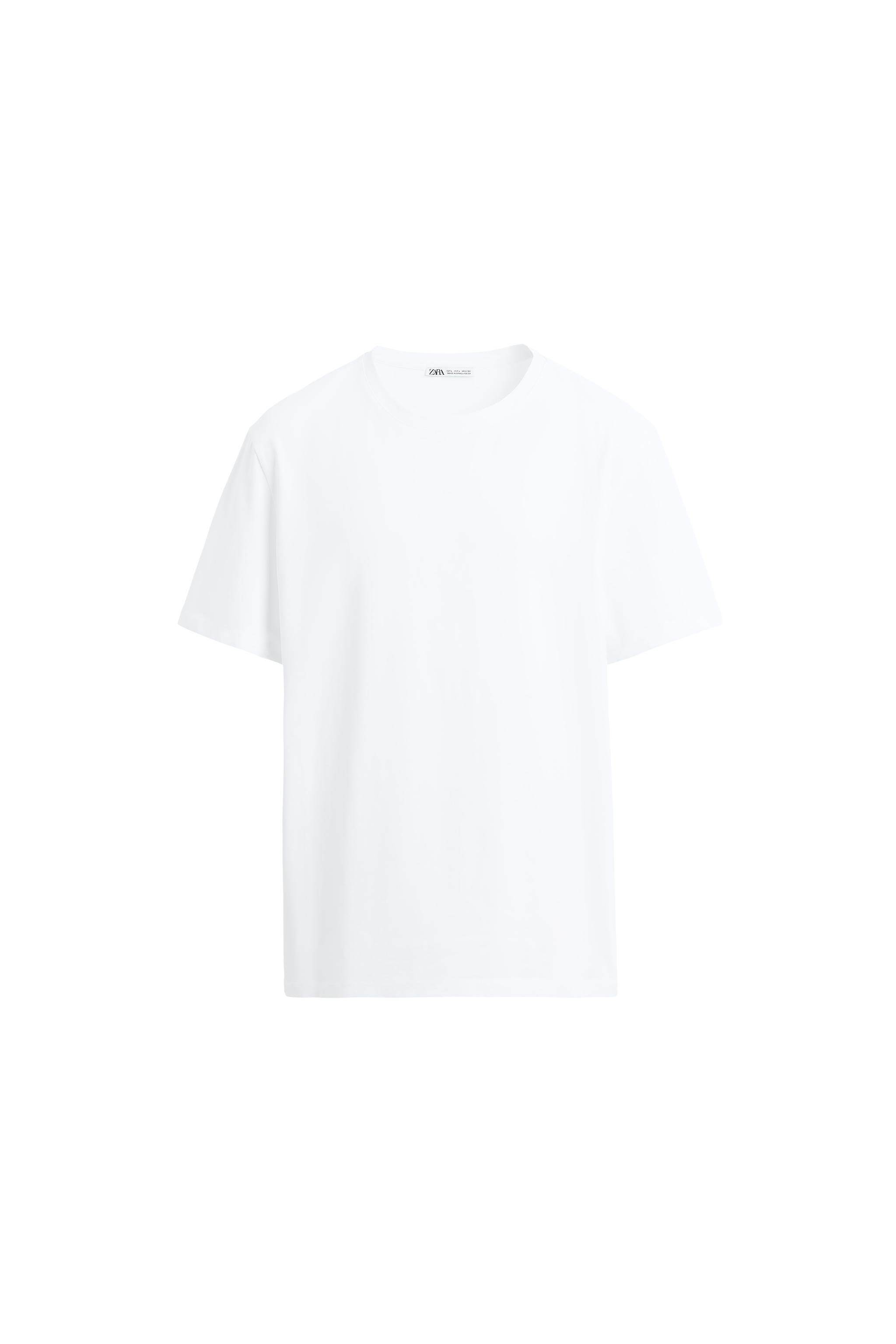 ZARA Новинки для мужчин и женщин: белая хлопковая облегающая базовая футболка с короткими рукавами 5584401 250