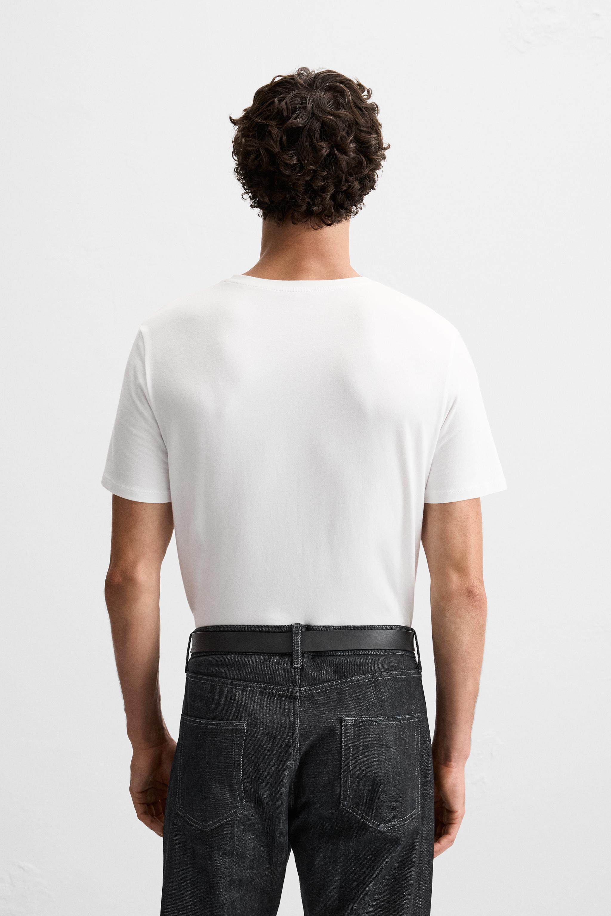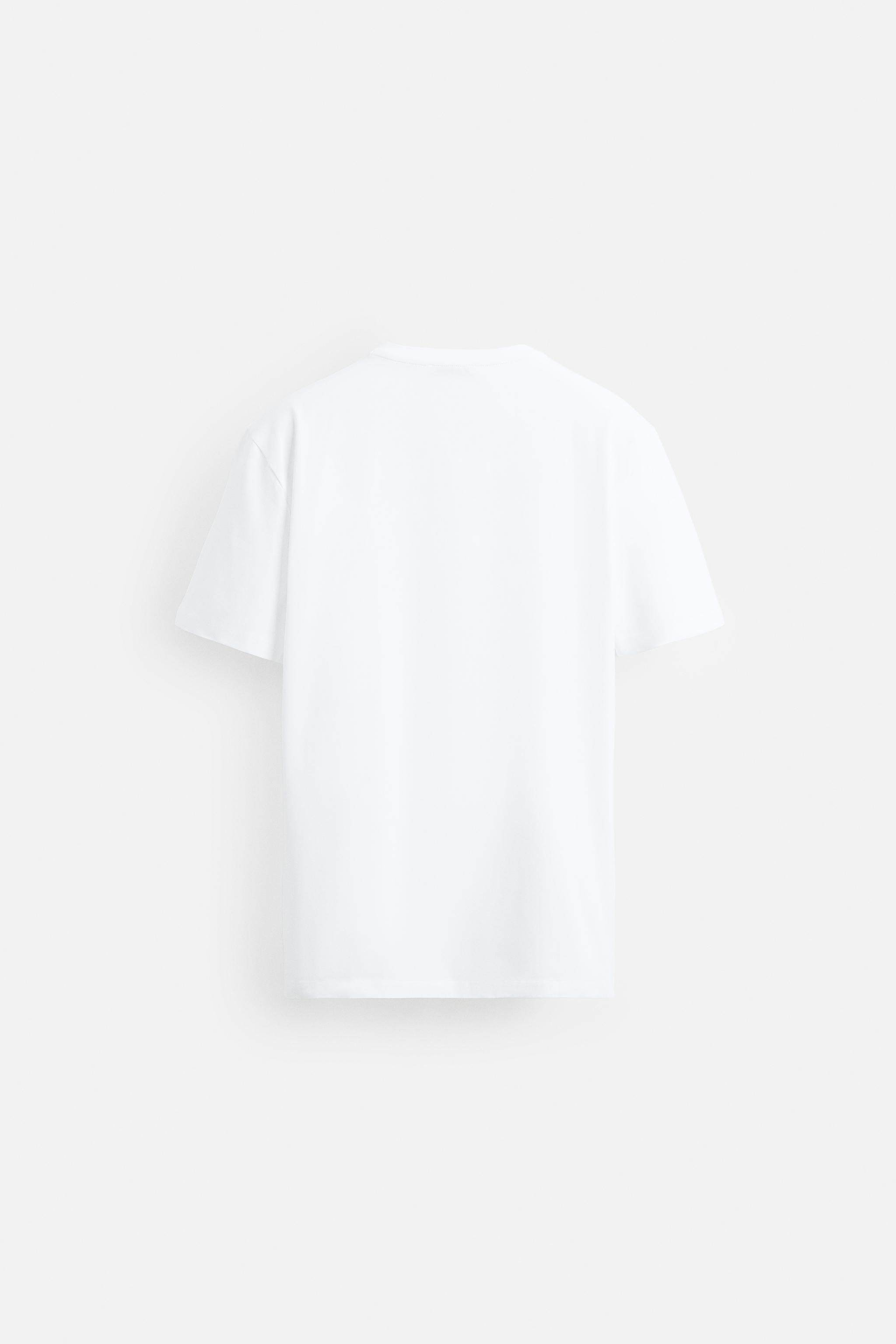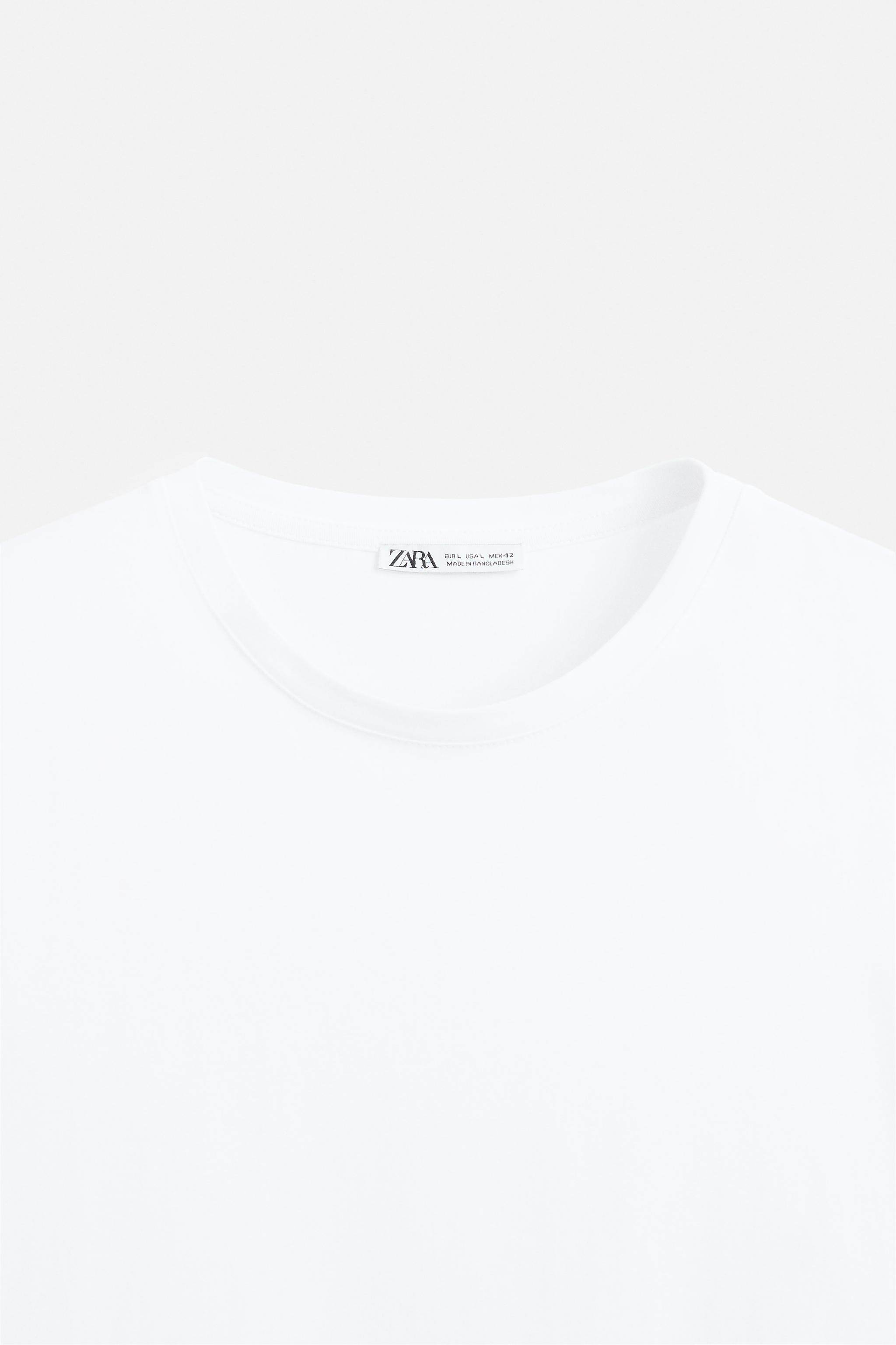 ZARA Новинки для мужчин и женщин: белая хлопковая облегающая базовая футболка с короткими рукавами 5584401 250