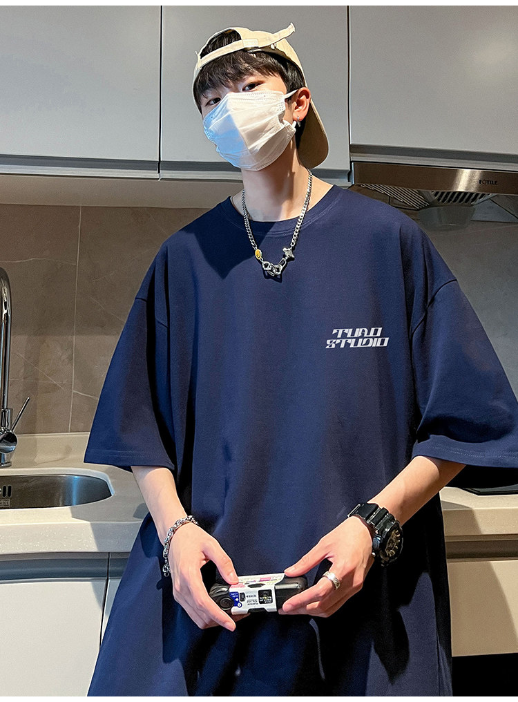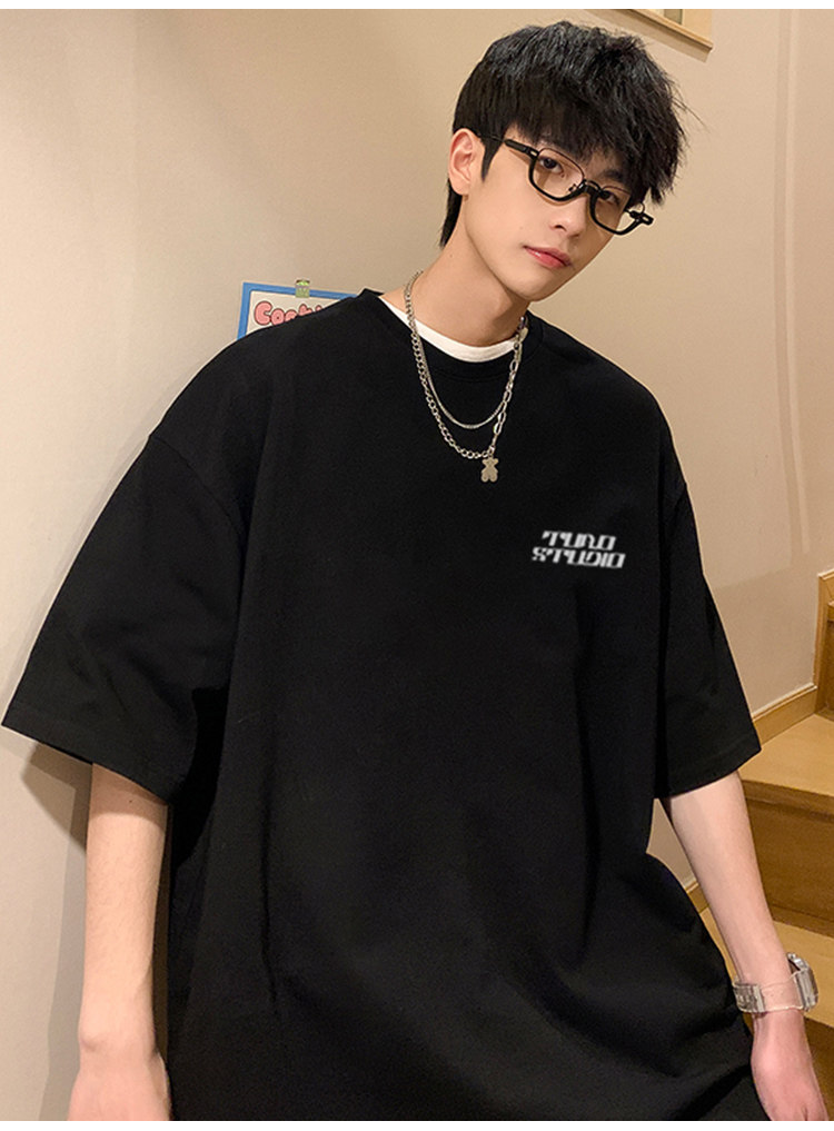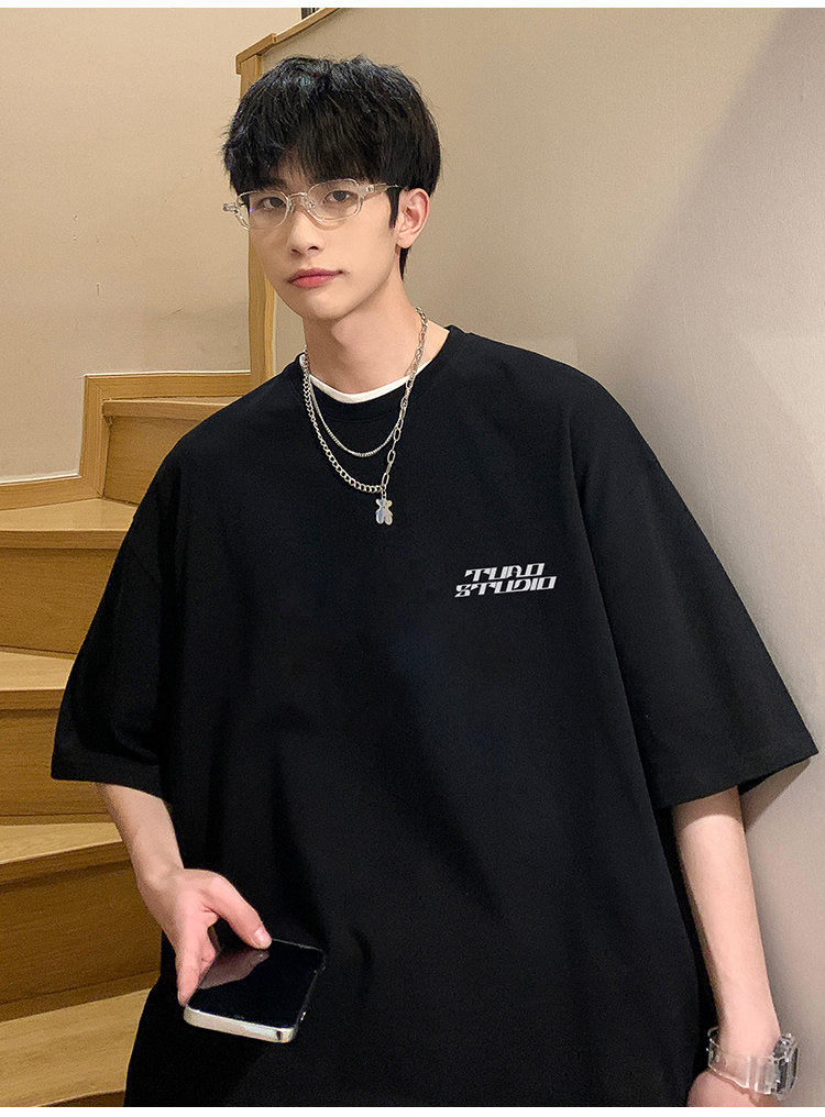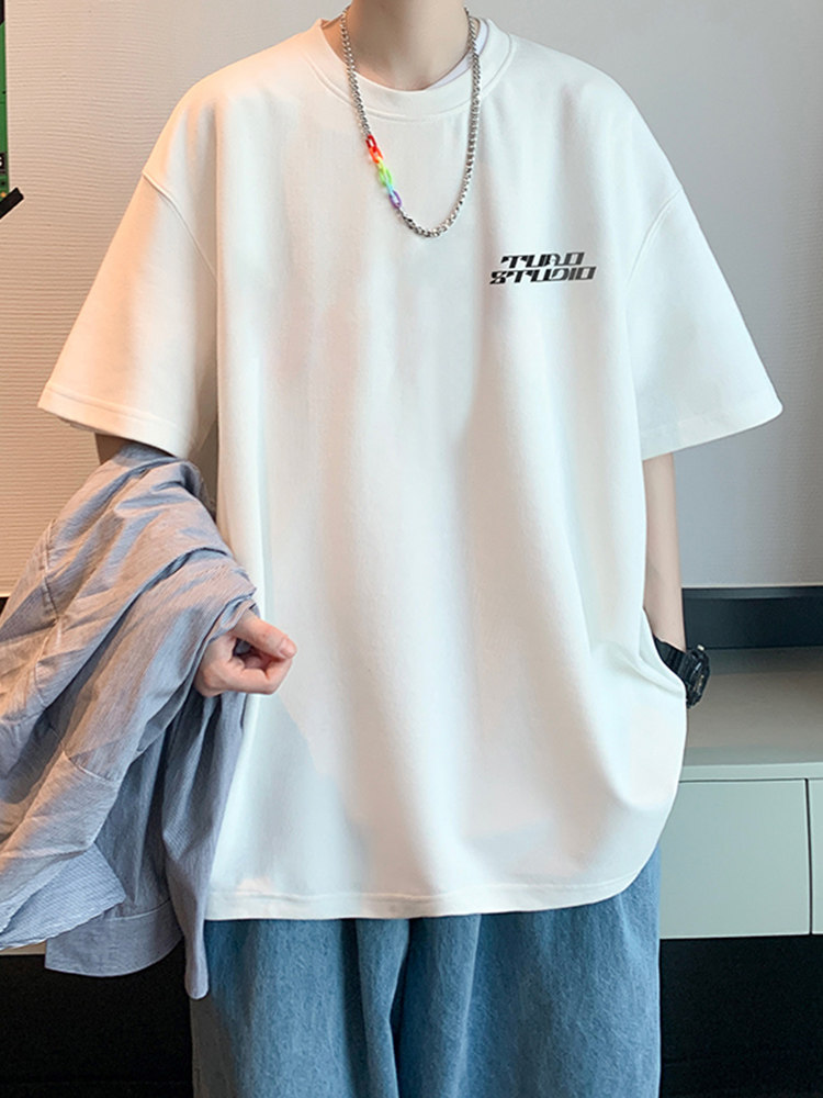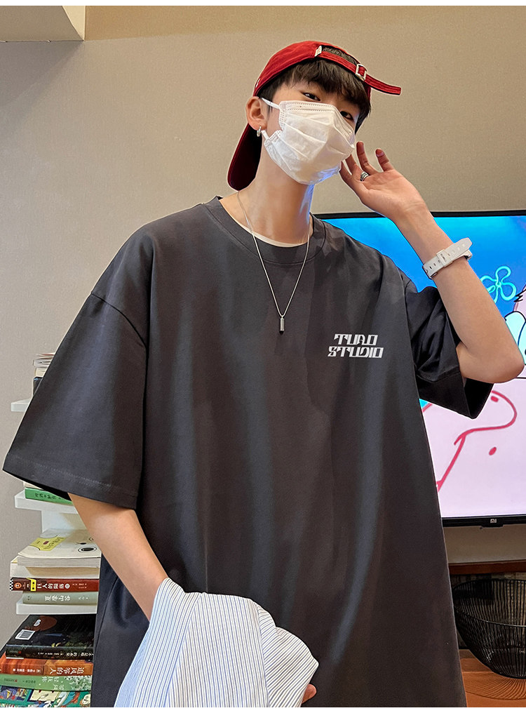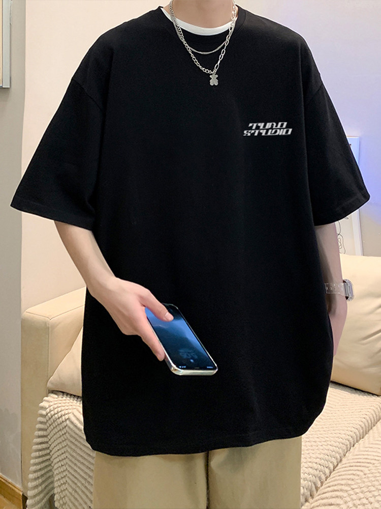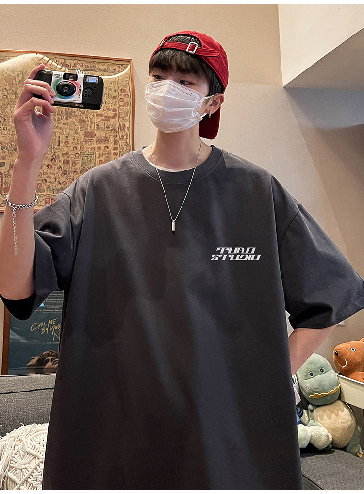Летняя хлопковая трендовая футболка с коротким рукавом, короткий рукав, свободный крой, подходит для подростков, в американском стиле