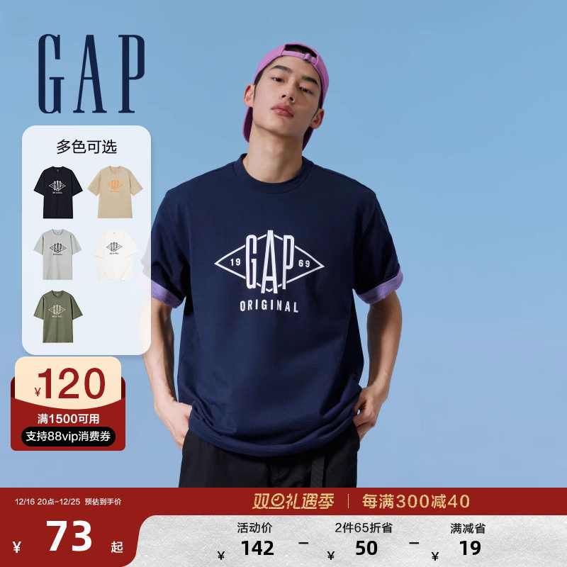 Gap Осенняя хлопковая футболка с коротким рукавом подходит для мужчин и женщин, с печатью вашего логотипа, в американском стиле