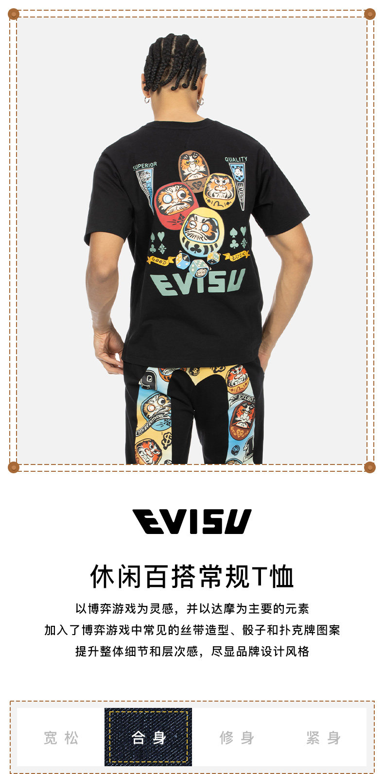 Evisu 2024 Летний новый продукт для мужчин и женщин, играющих друг с другом, Damo Printed Funct Fort
