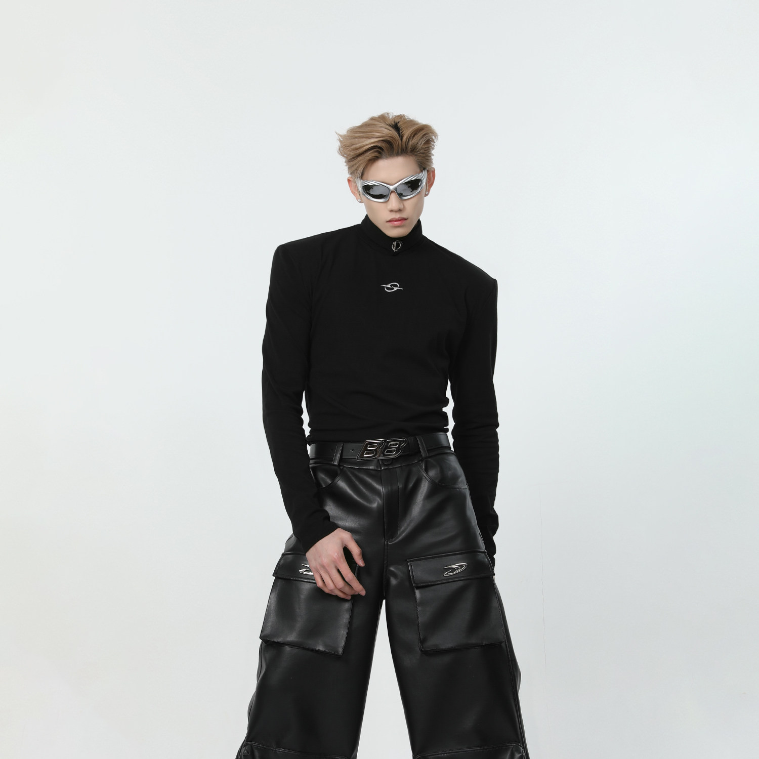 Металлический дизайнерский базовый приятный телу лонгслив, тренд сезона, изысканный стиль