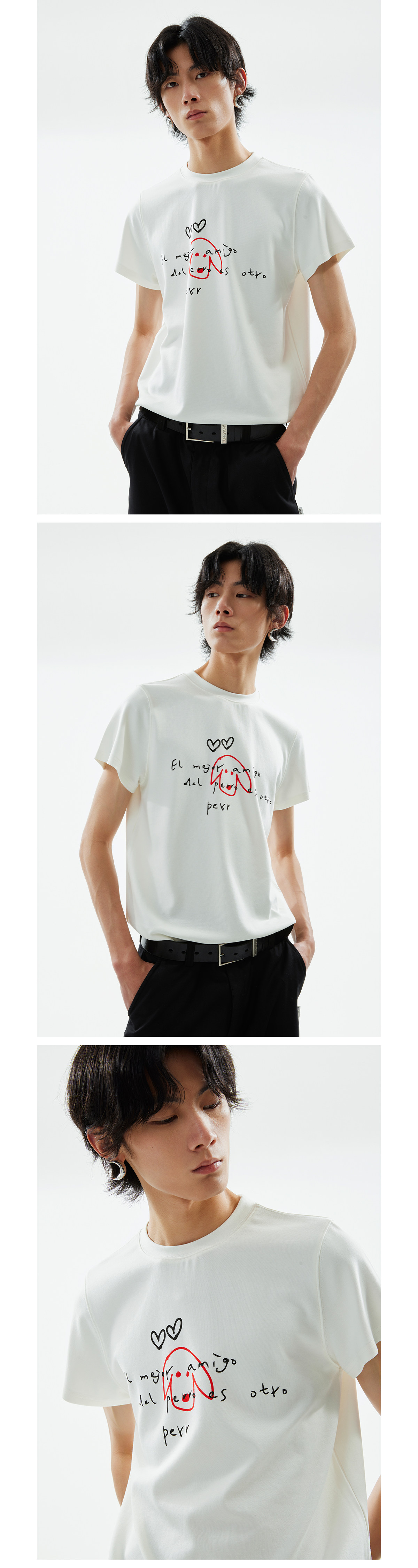 FUNKYFUN Дизайнерская рука -по -прежнему "собака -хороший друг людей" напечатано положительное плечо короткое -шорт -мала