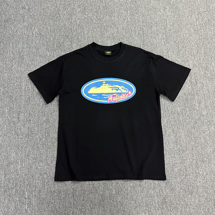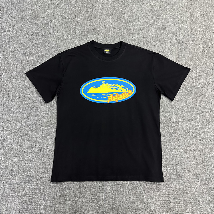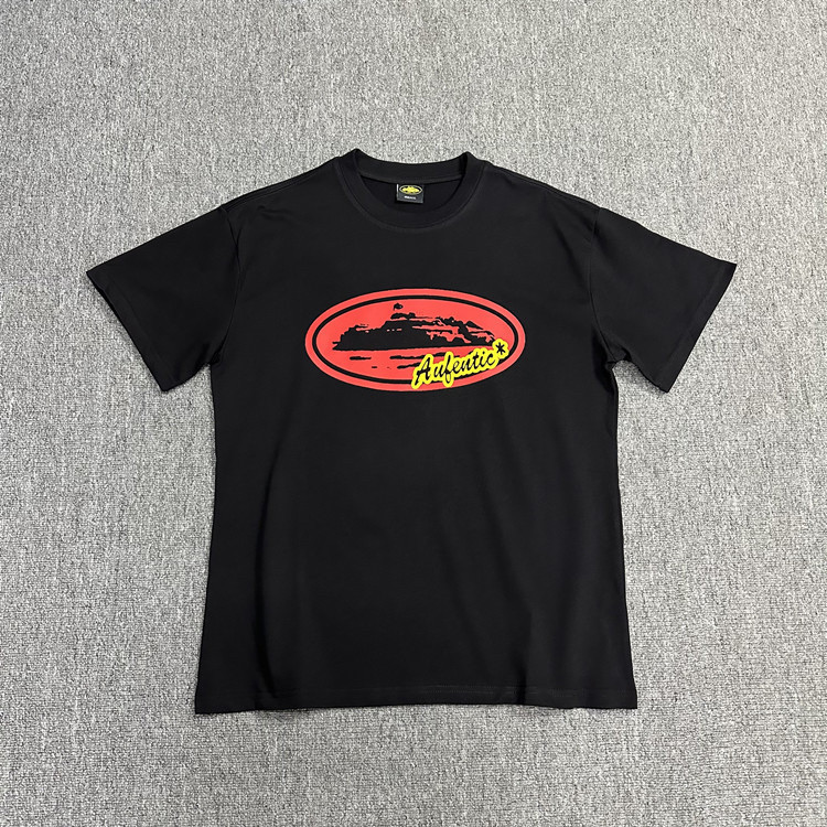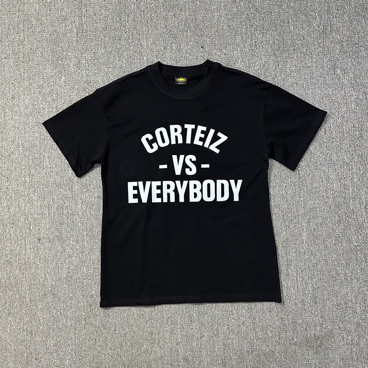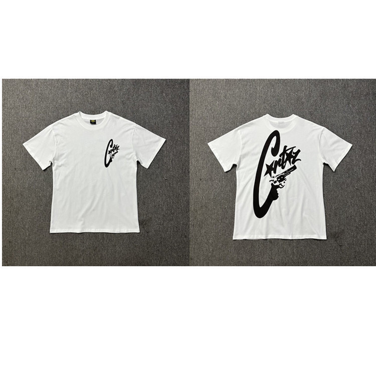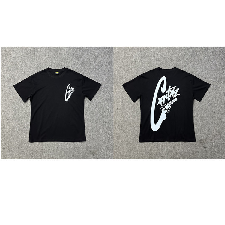 American Corteiz Tops серии Alcatraz серии HD Print Fort Print Gothic Dark Style с коротким рукавом модная бренда одежда