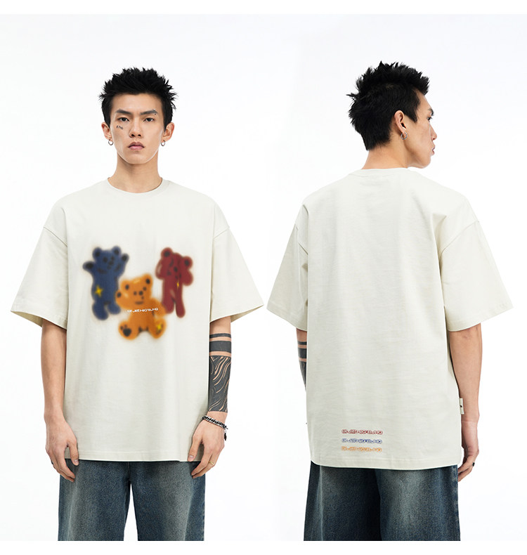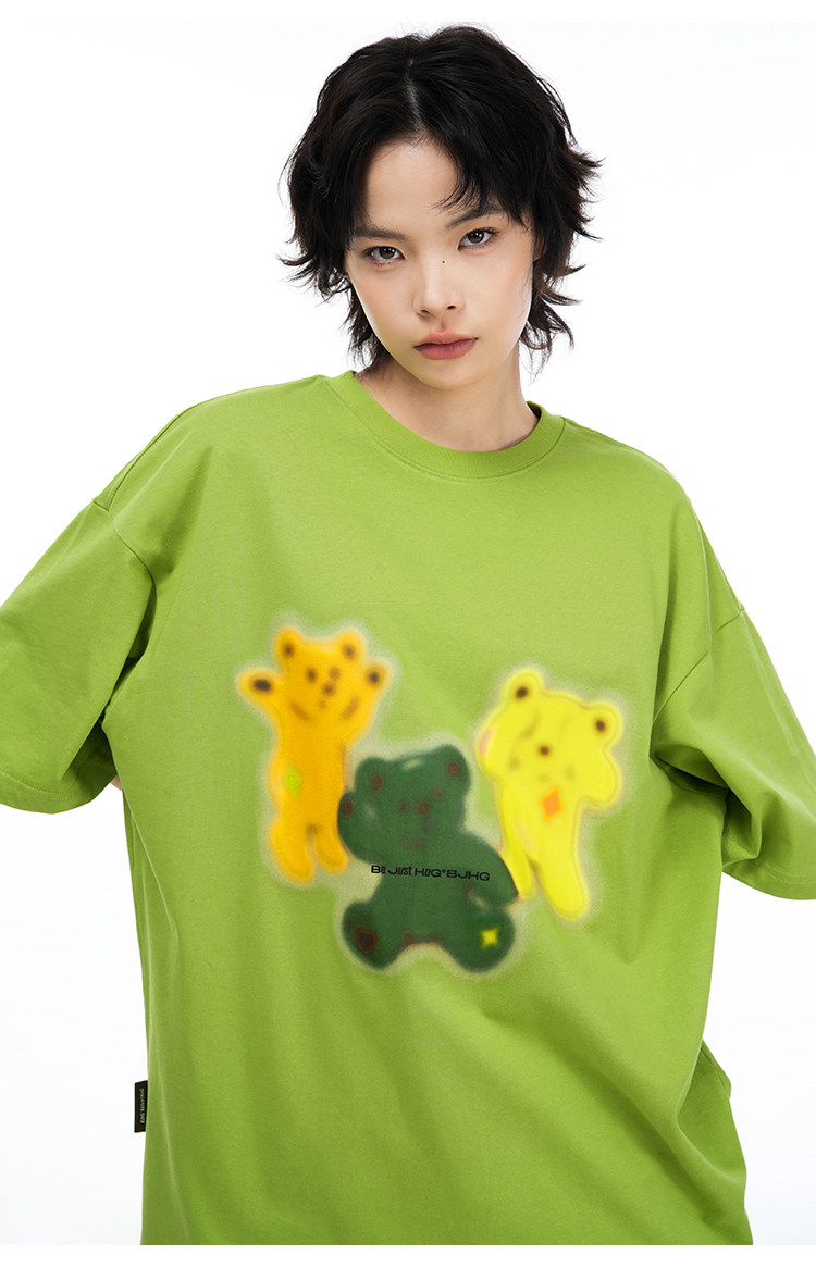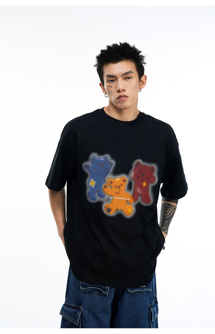 Хлопковая летняя футболка, парная одежда с круглым воротником, с медвежатами, США, для влюбленных