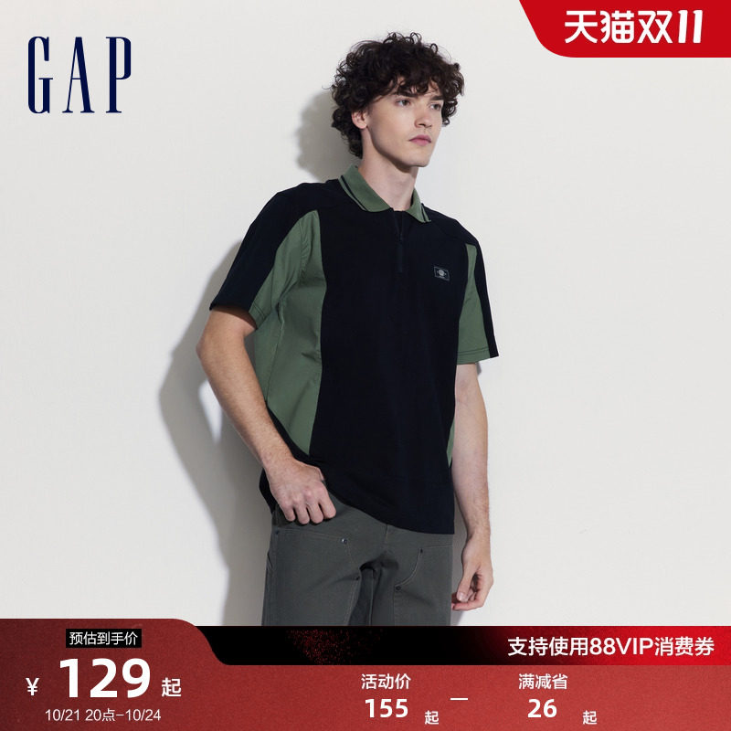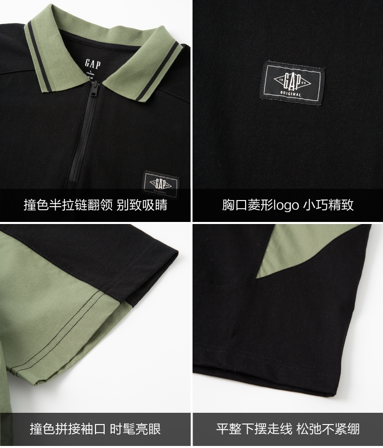 Gap Осенняя хлопковая футболка с коротким рукавом подходит для мужчин и женщин с молнией, футболка polo