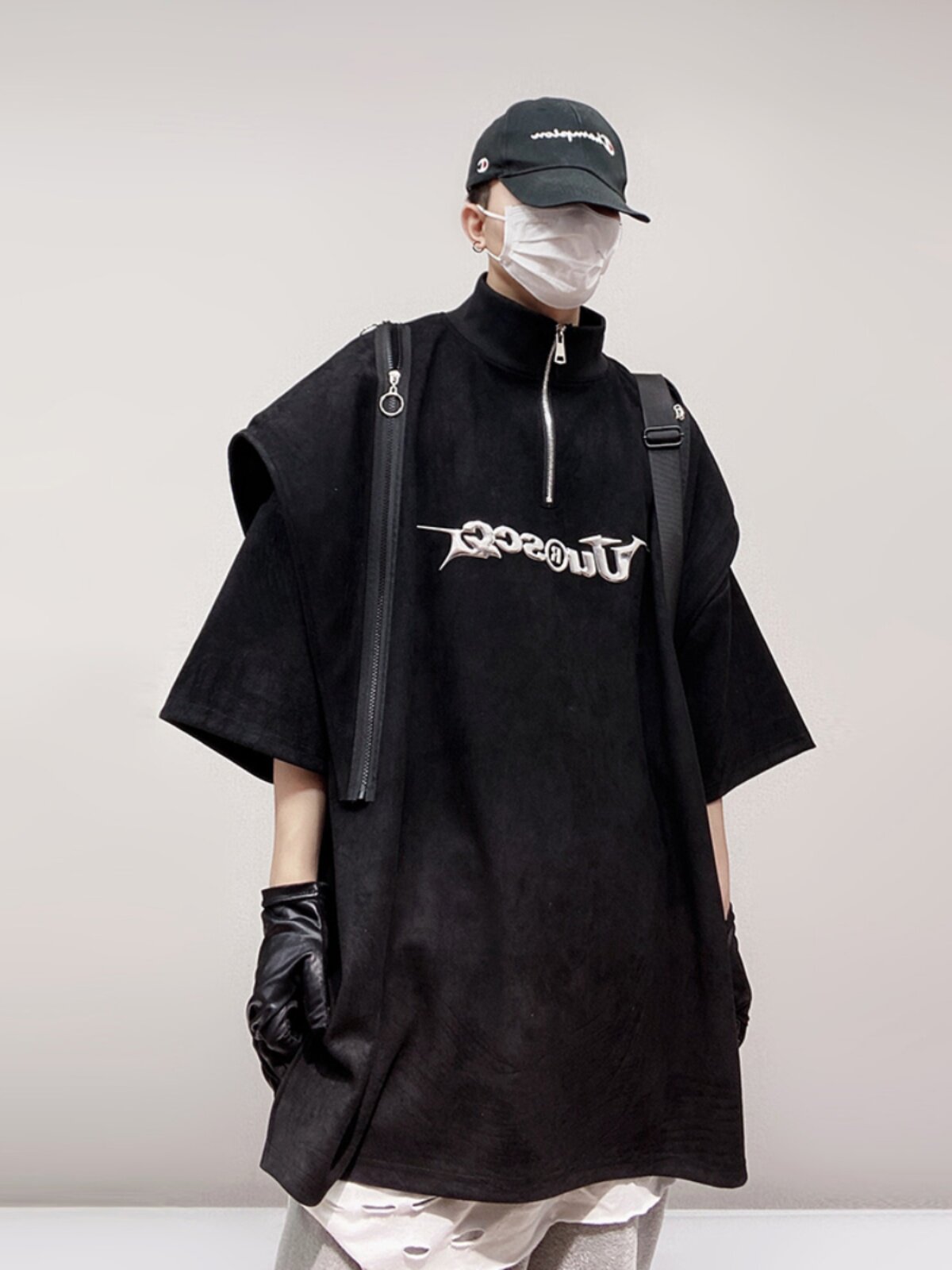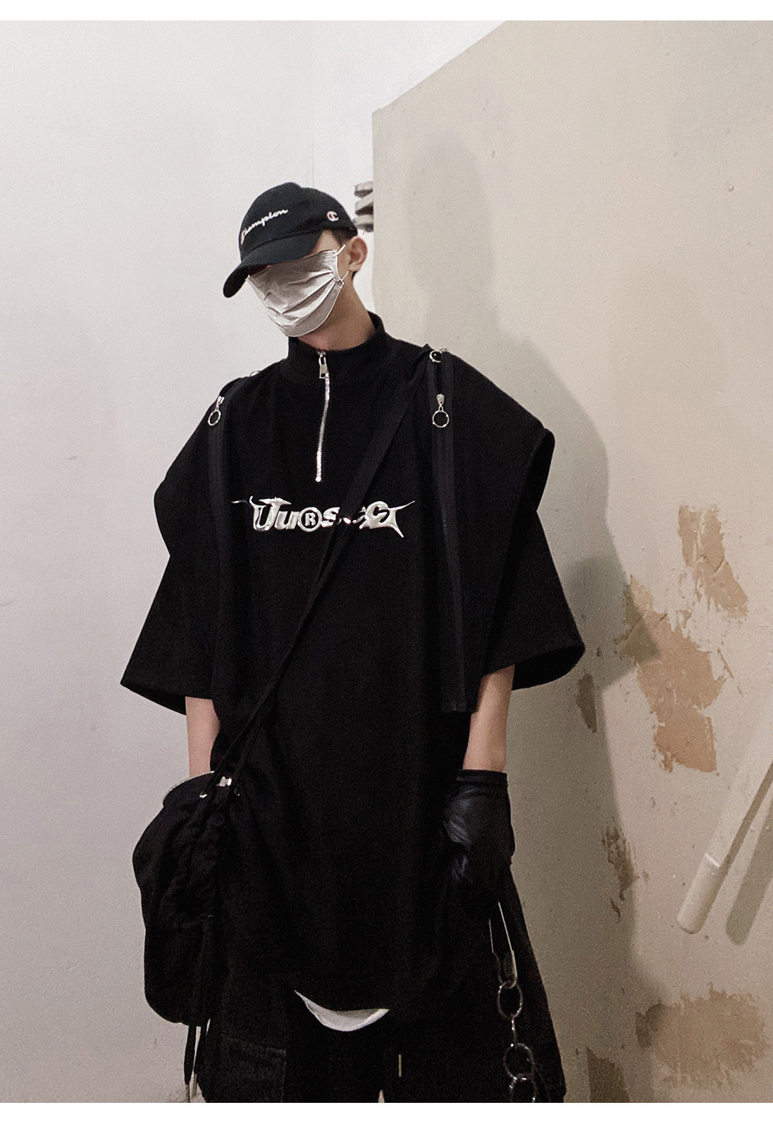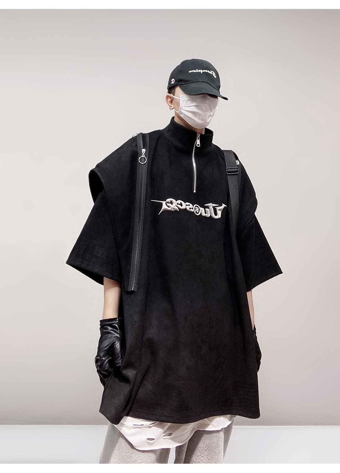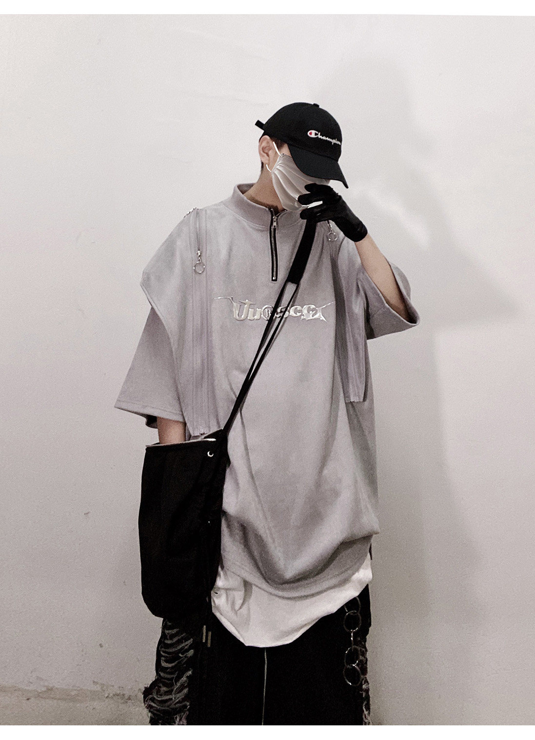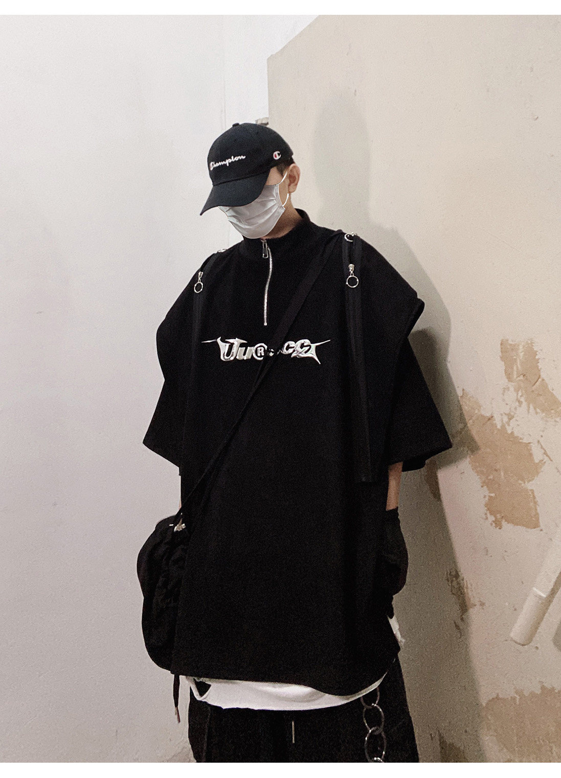 Дизайнерские наплечники в стиле хип-хоп, футболка, короткий рукав, свободный крой, тренд сезона, оверсайз
