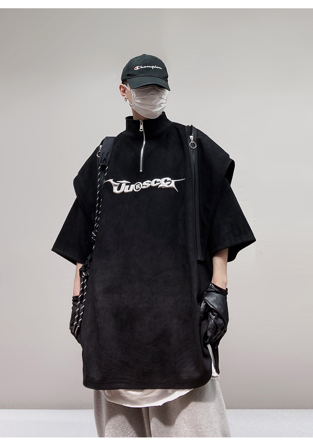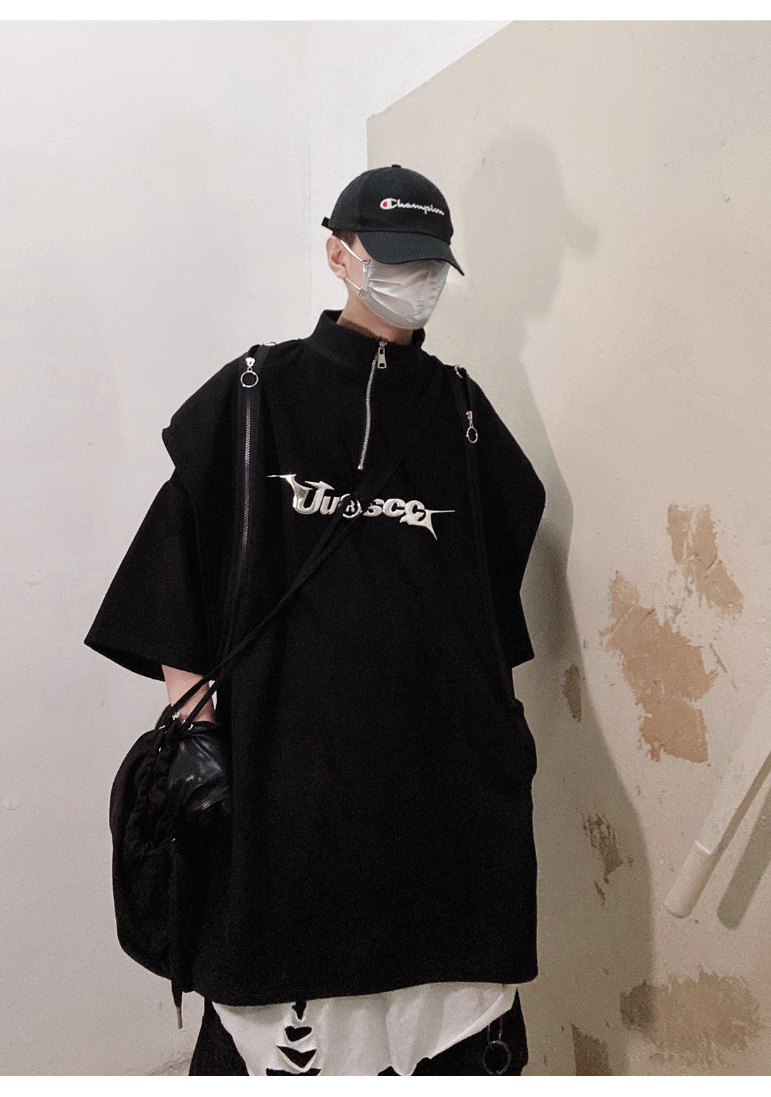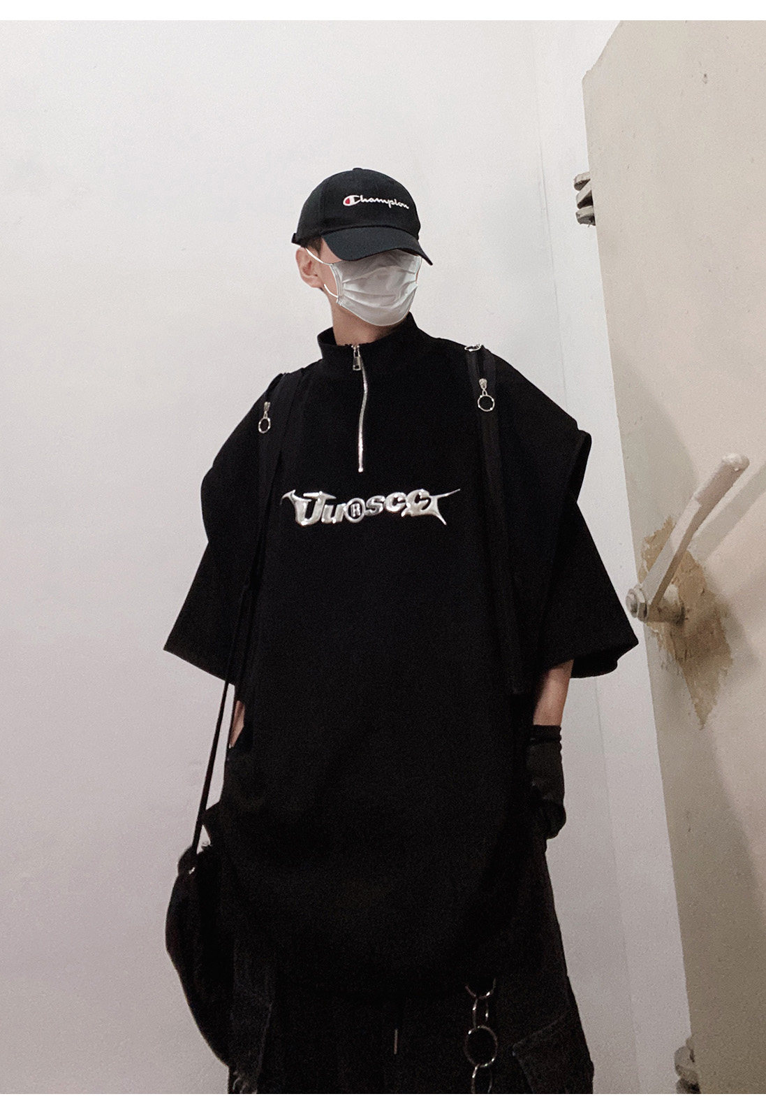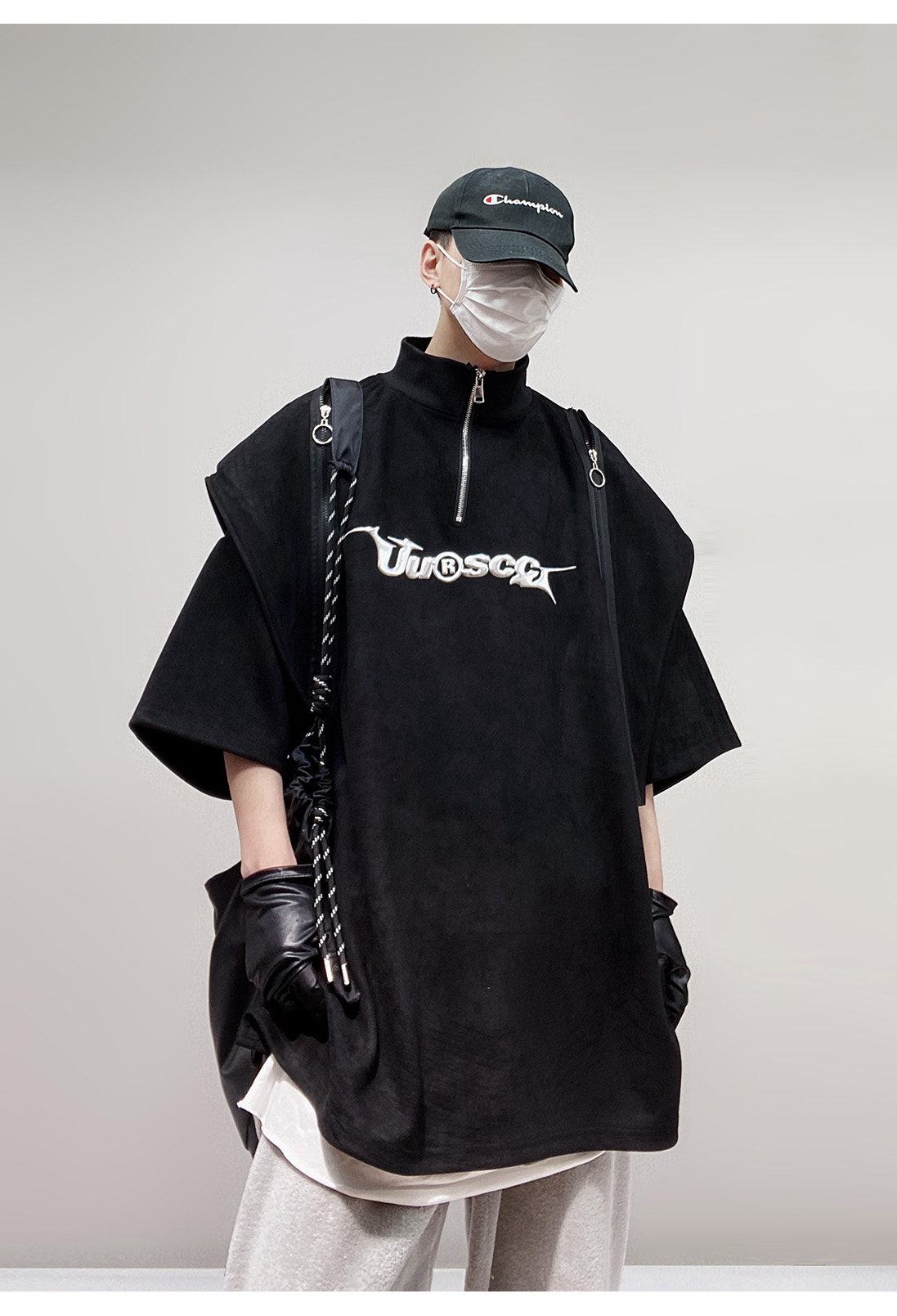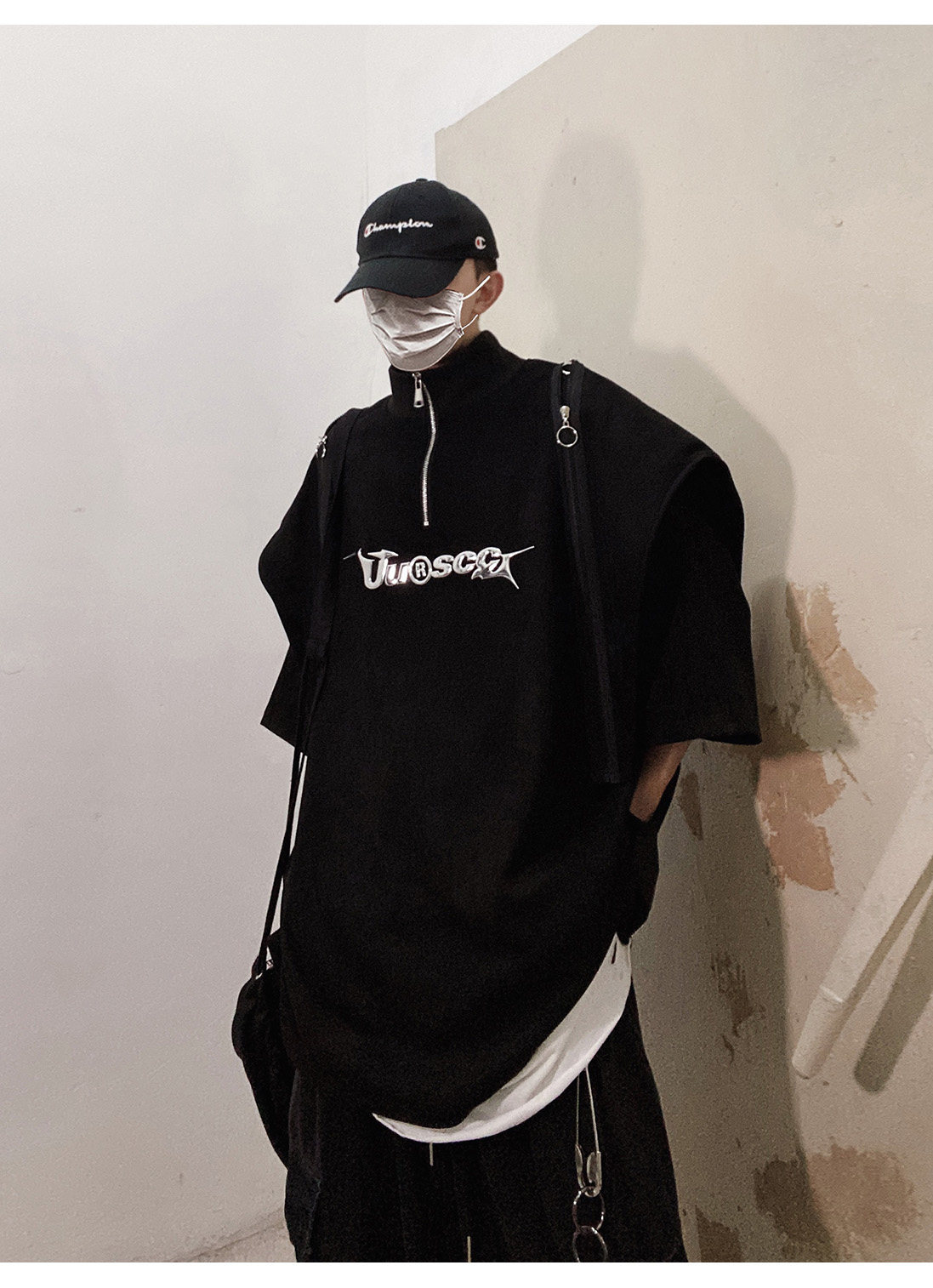 Дизайнерские наплечники в стиле хип-хоп, футболка, короткий рукав, свободный крой, тренд сезона, оверсайз