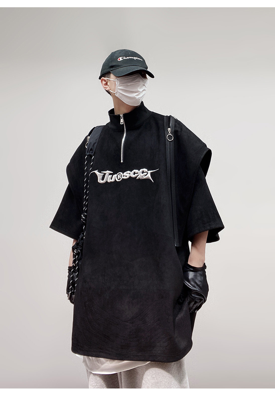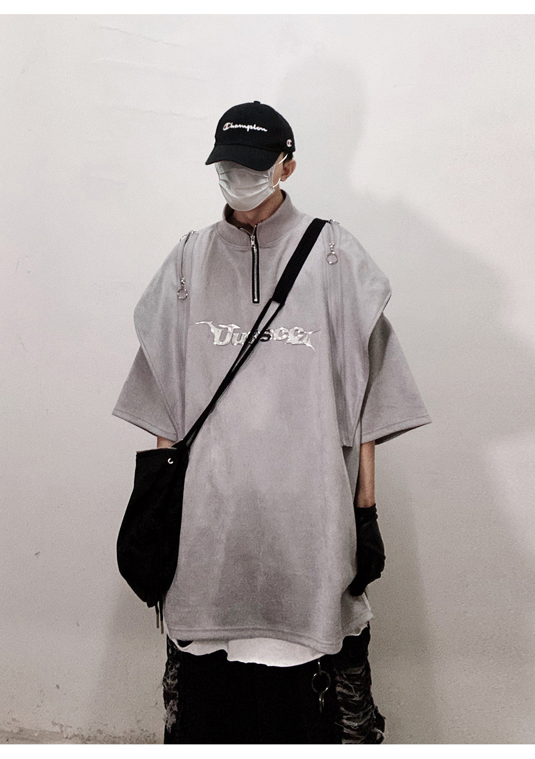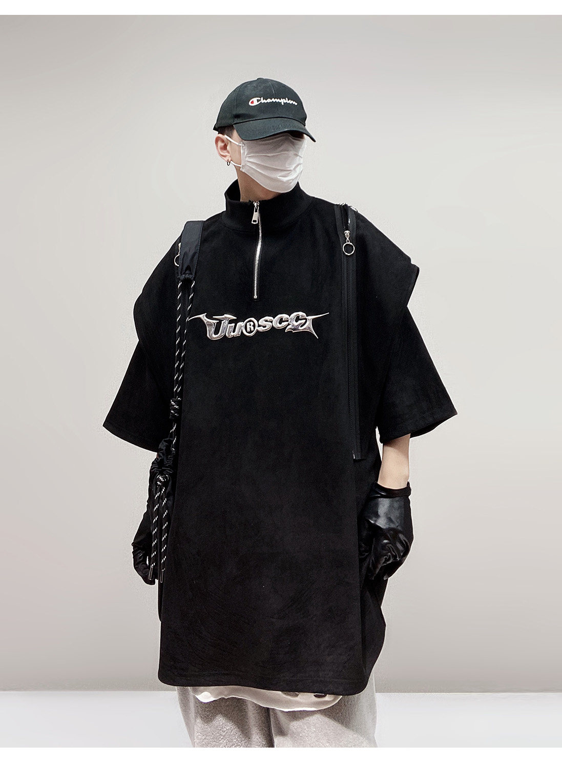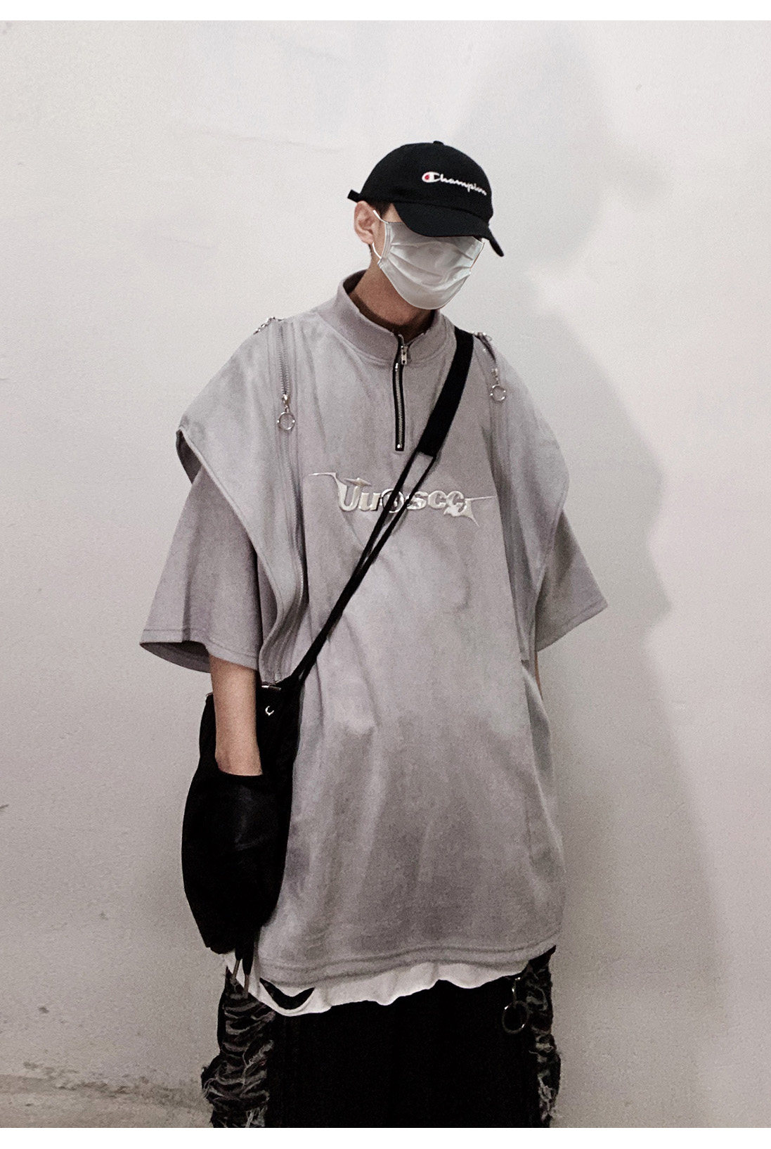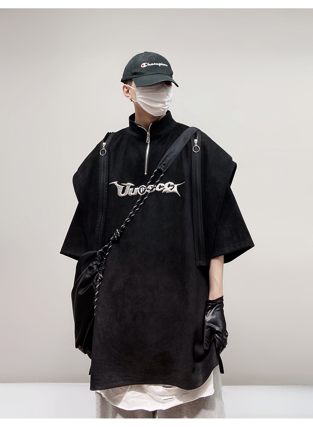 Дизайнерские наплечники в стиле хип-хоп, футболка, короткий рукав, свободный крой, тренд сезона, оверсайз