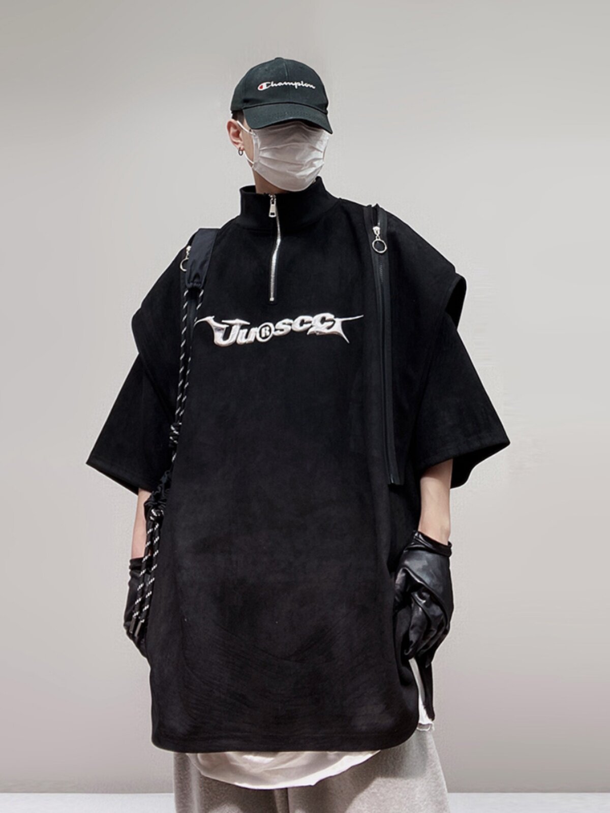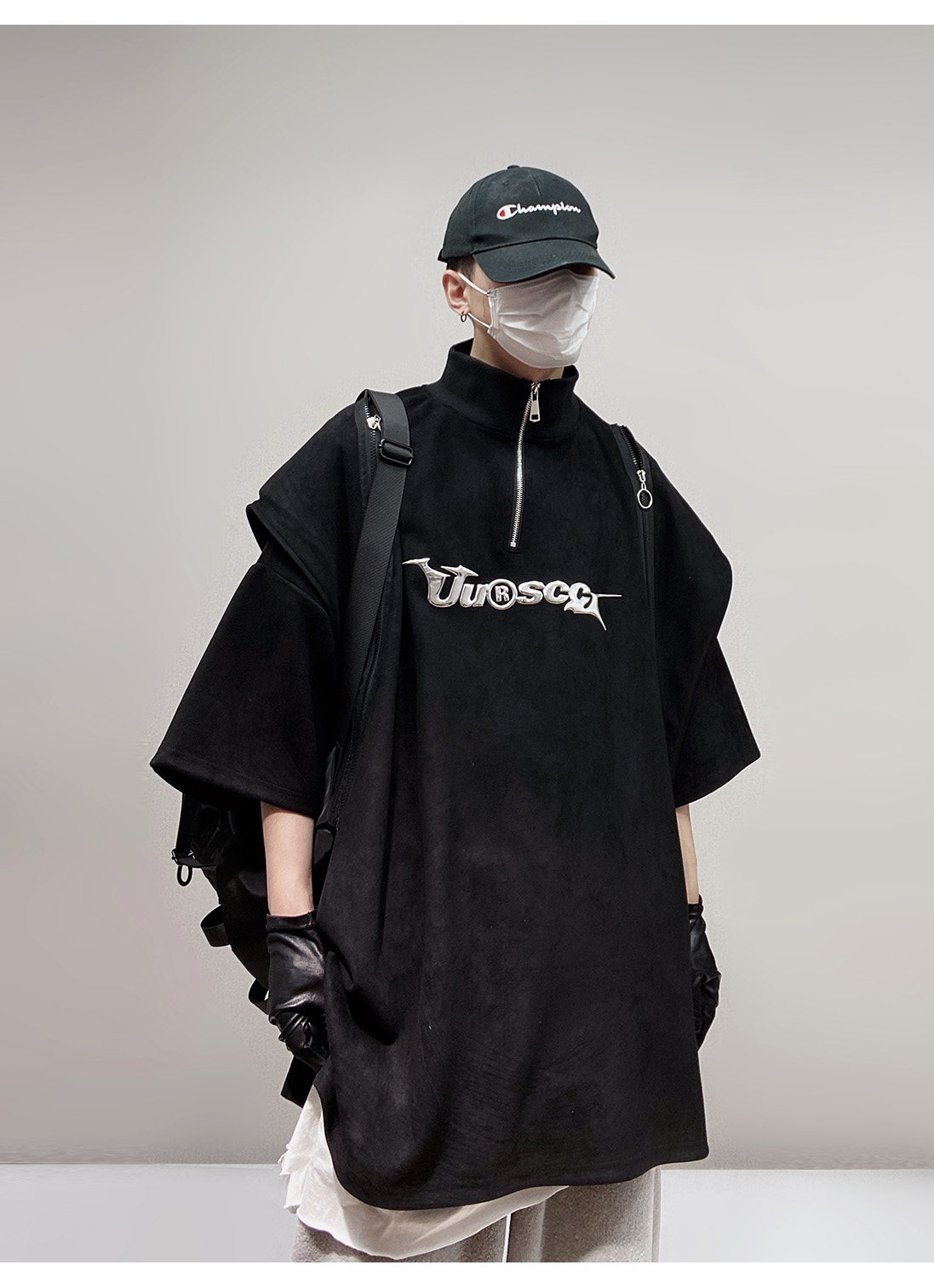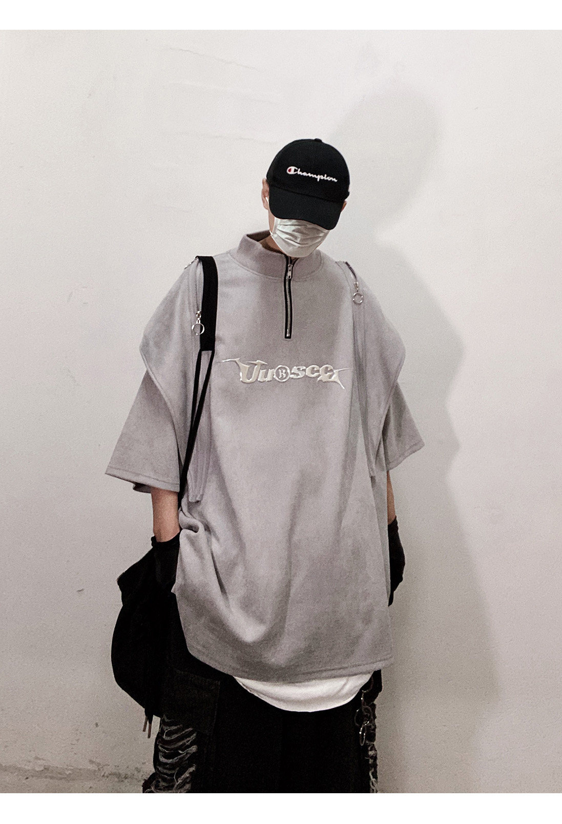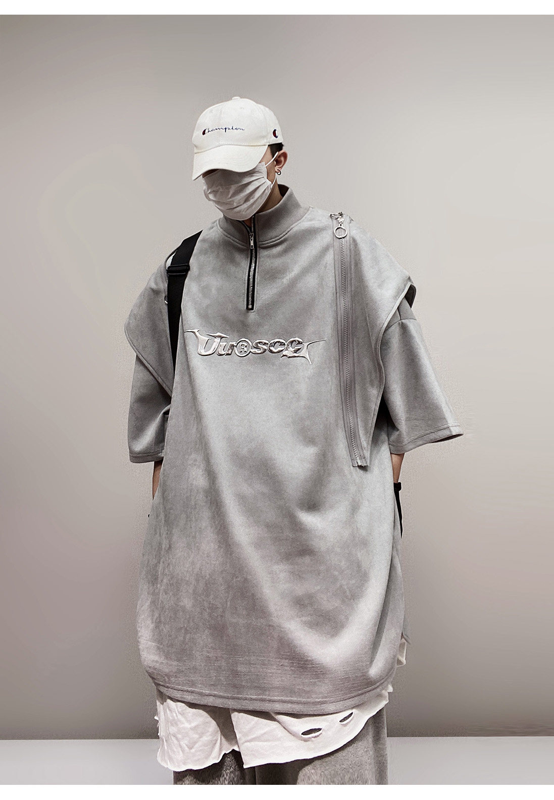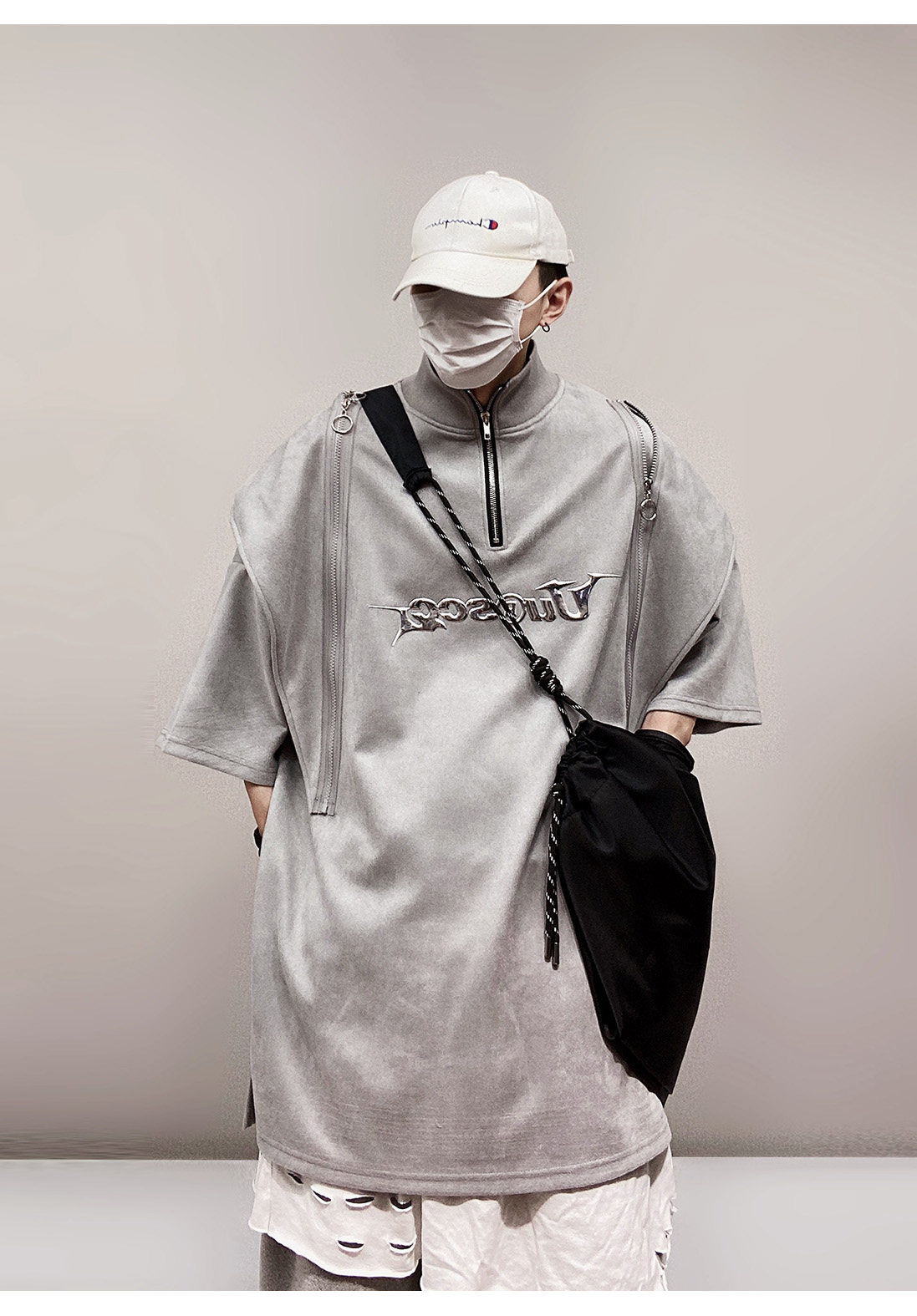 Дизайнерские наплечники в стиле хип-хоп, футболка, короткий рукав, свободный крой, тренд сезона, оверсайз