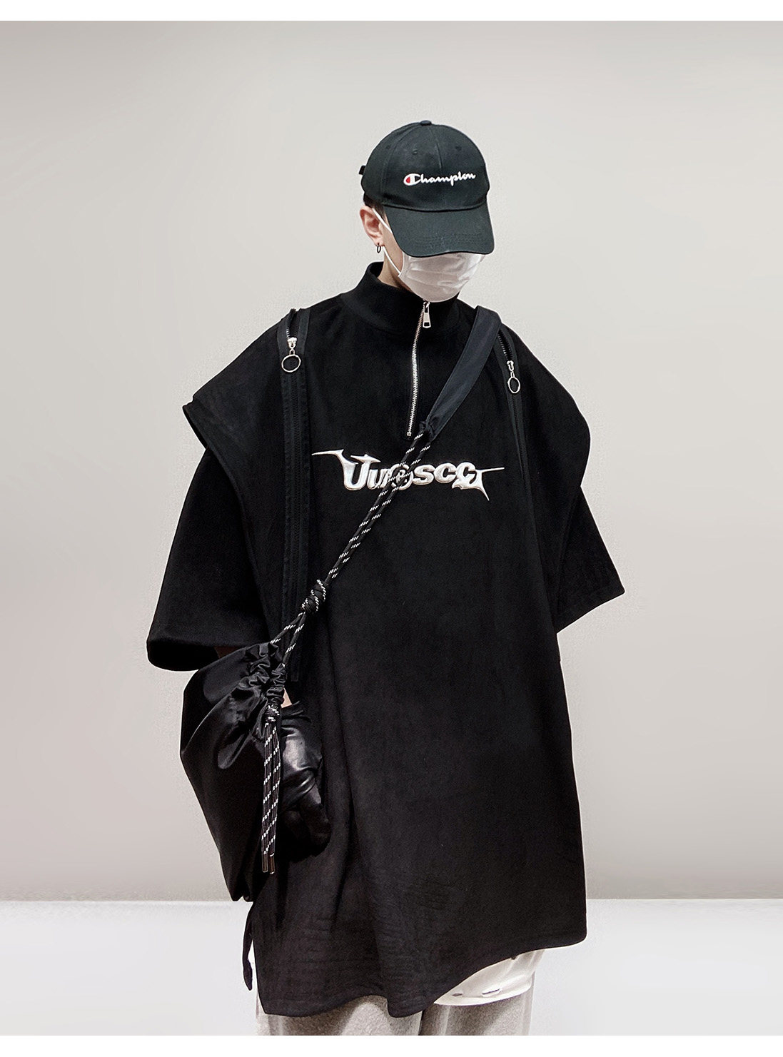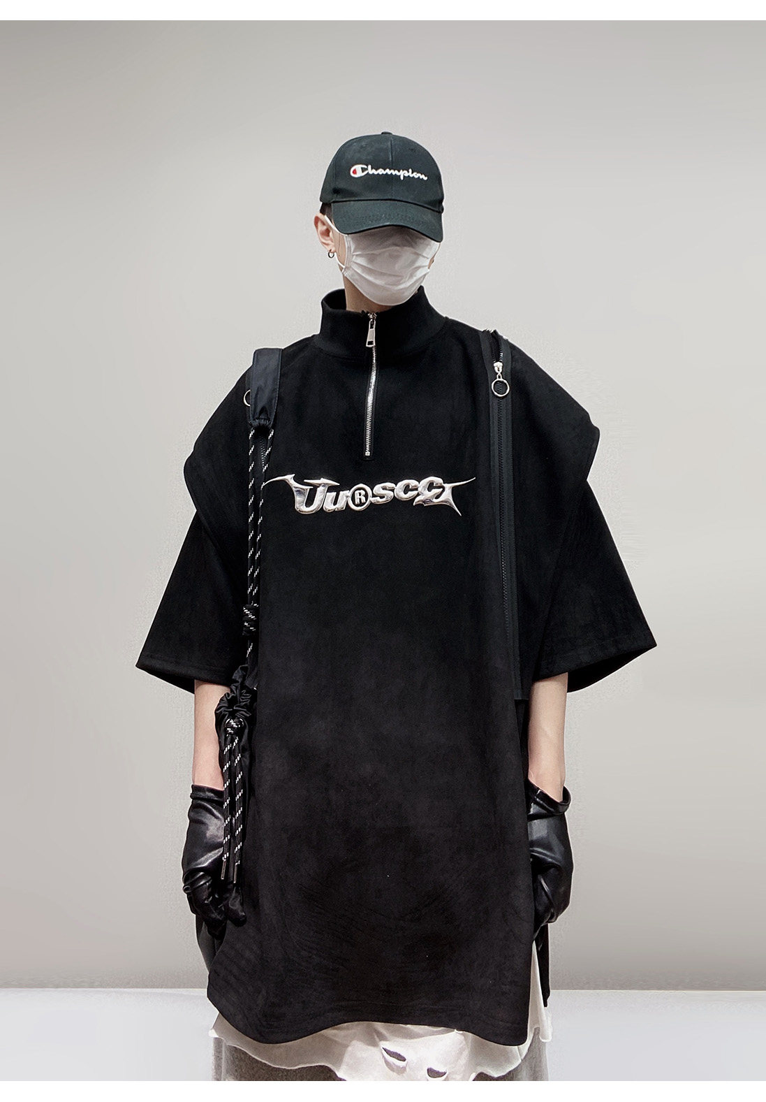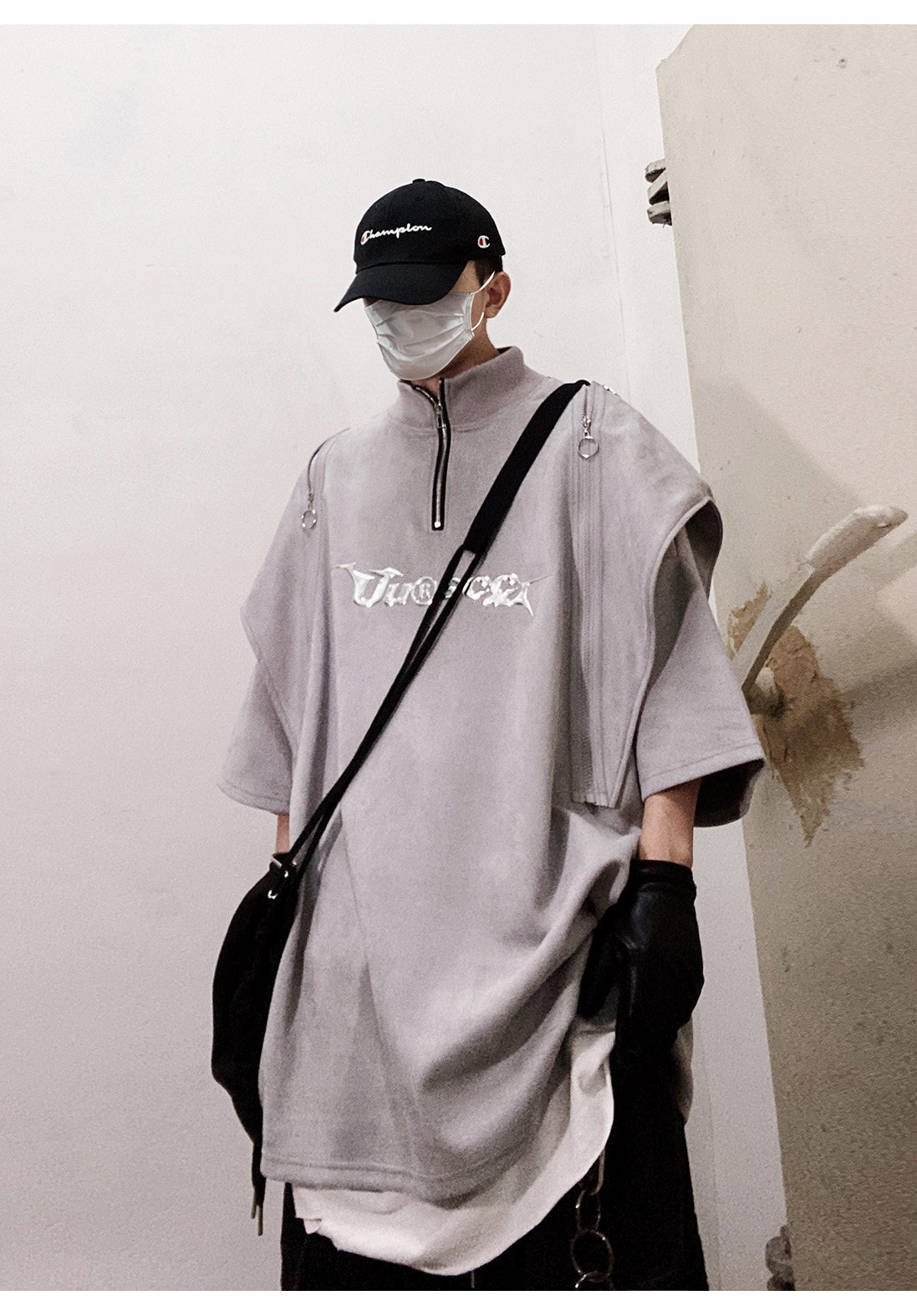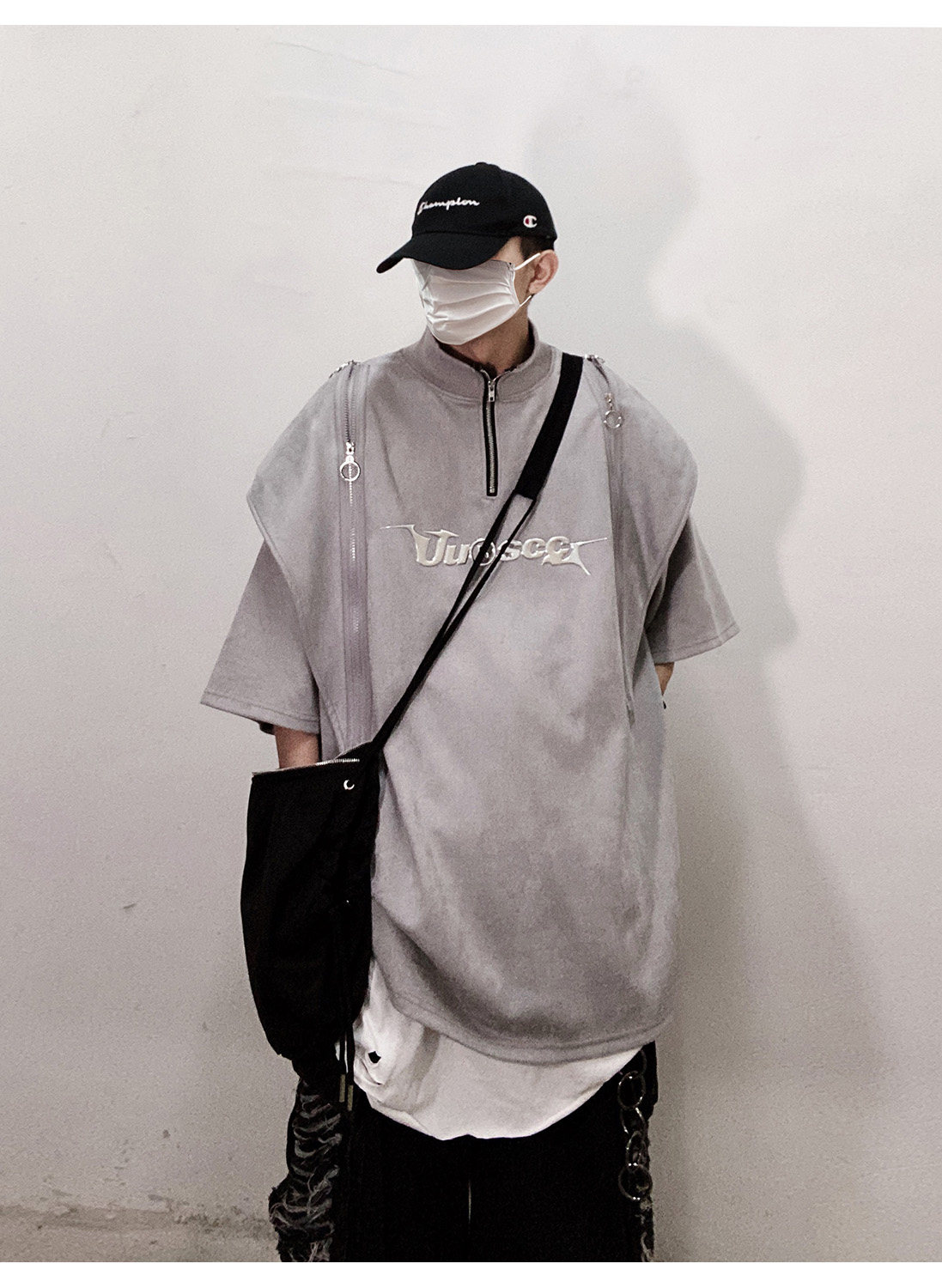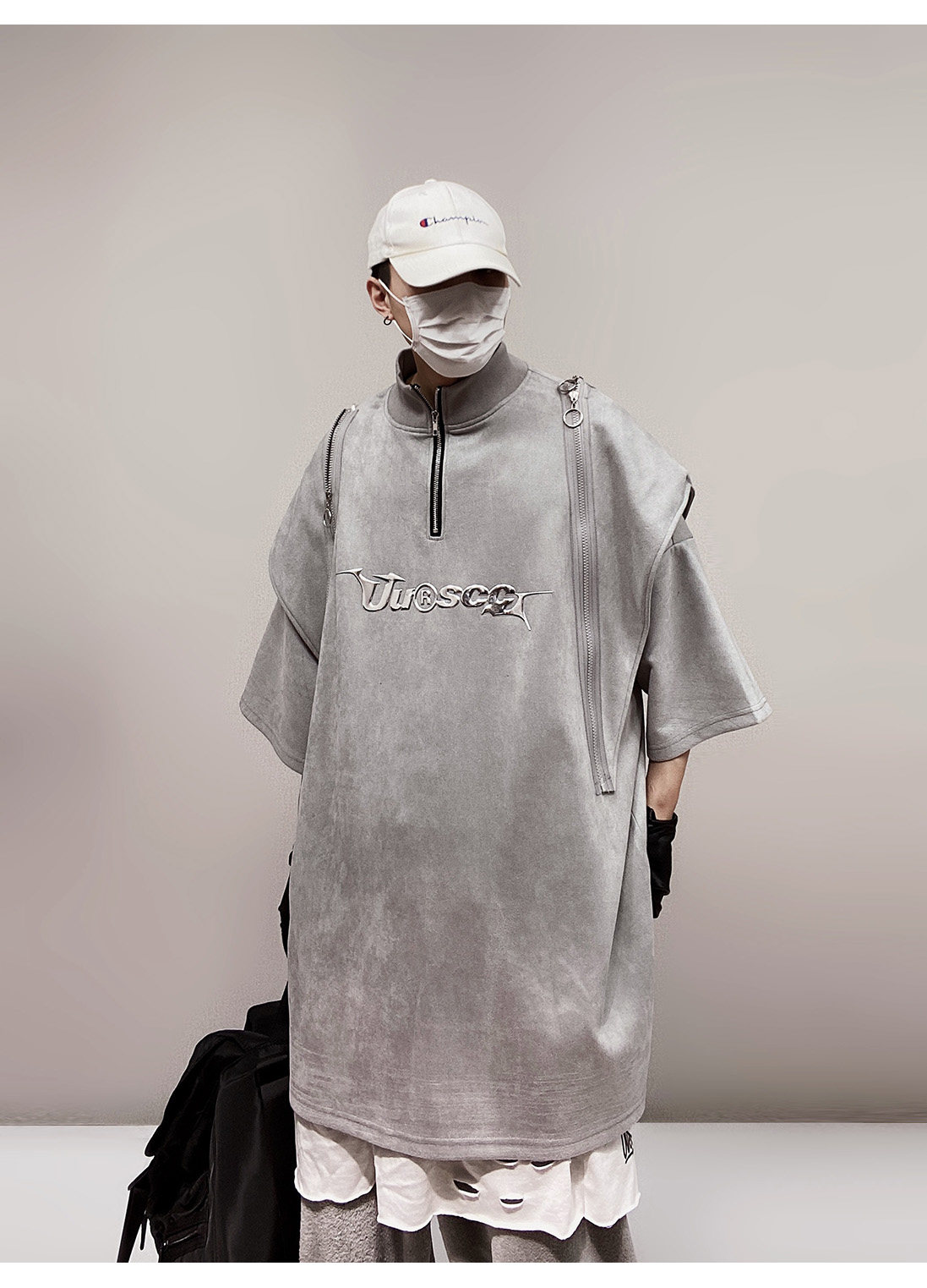 Дизайнерские наплечники в стиле хип-хоп, футболка, короткий рукав, свободный крой, тренд сезона, оверсайз