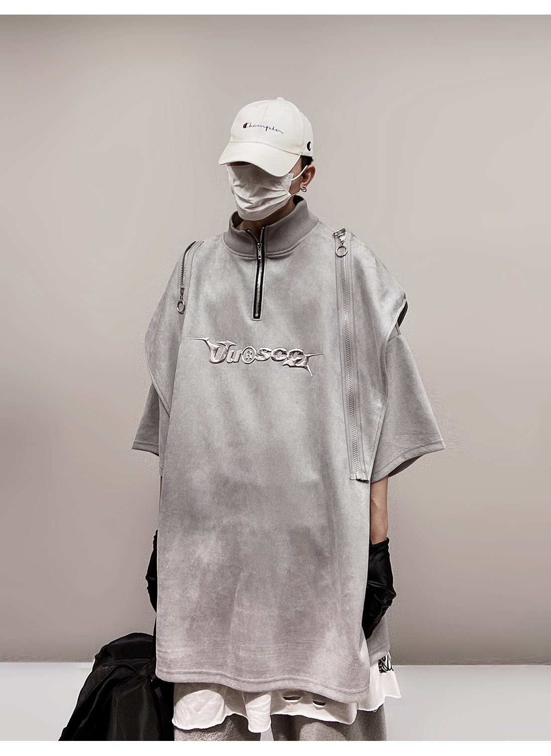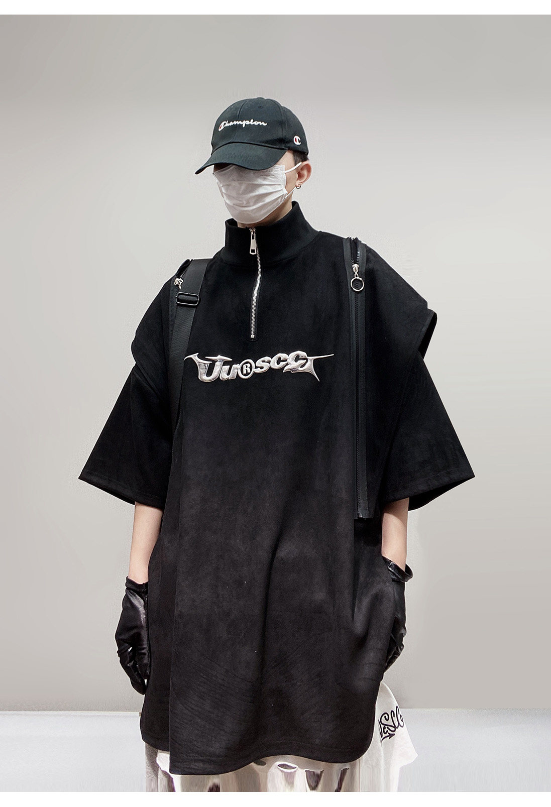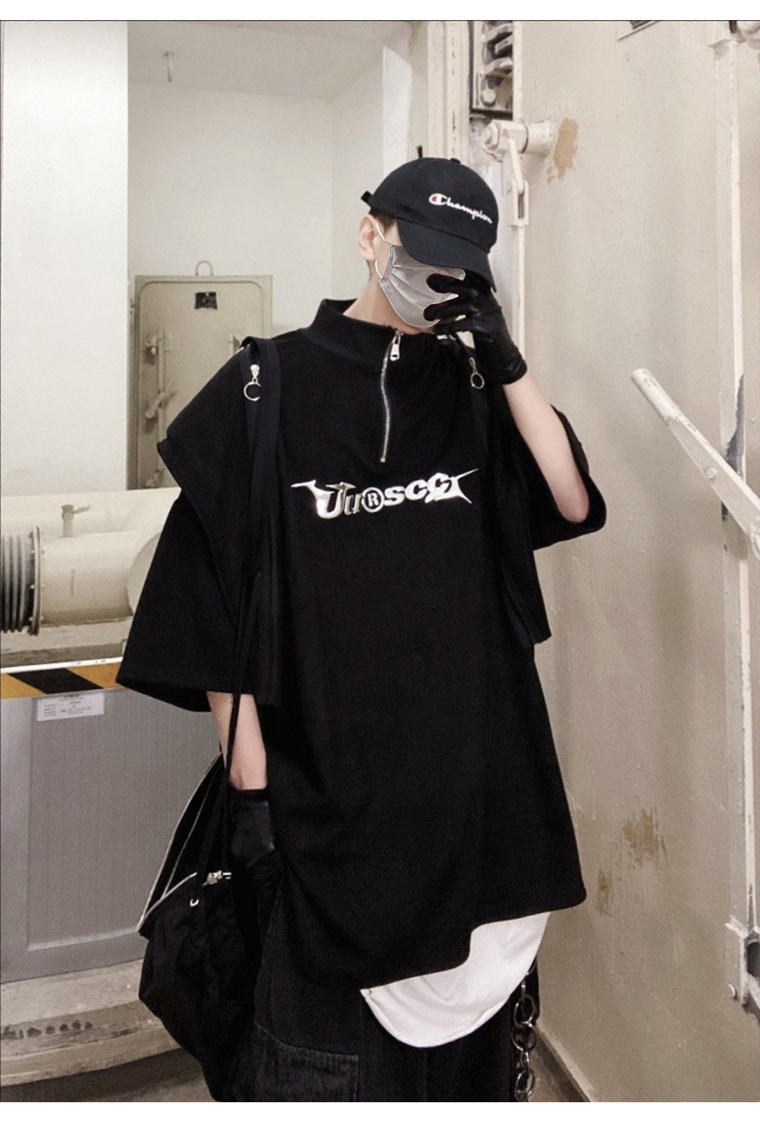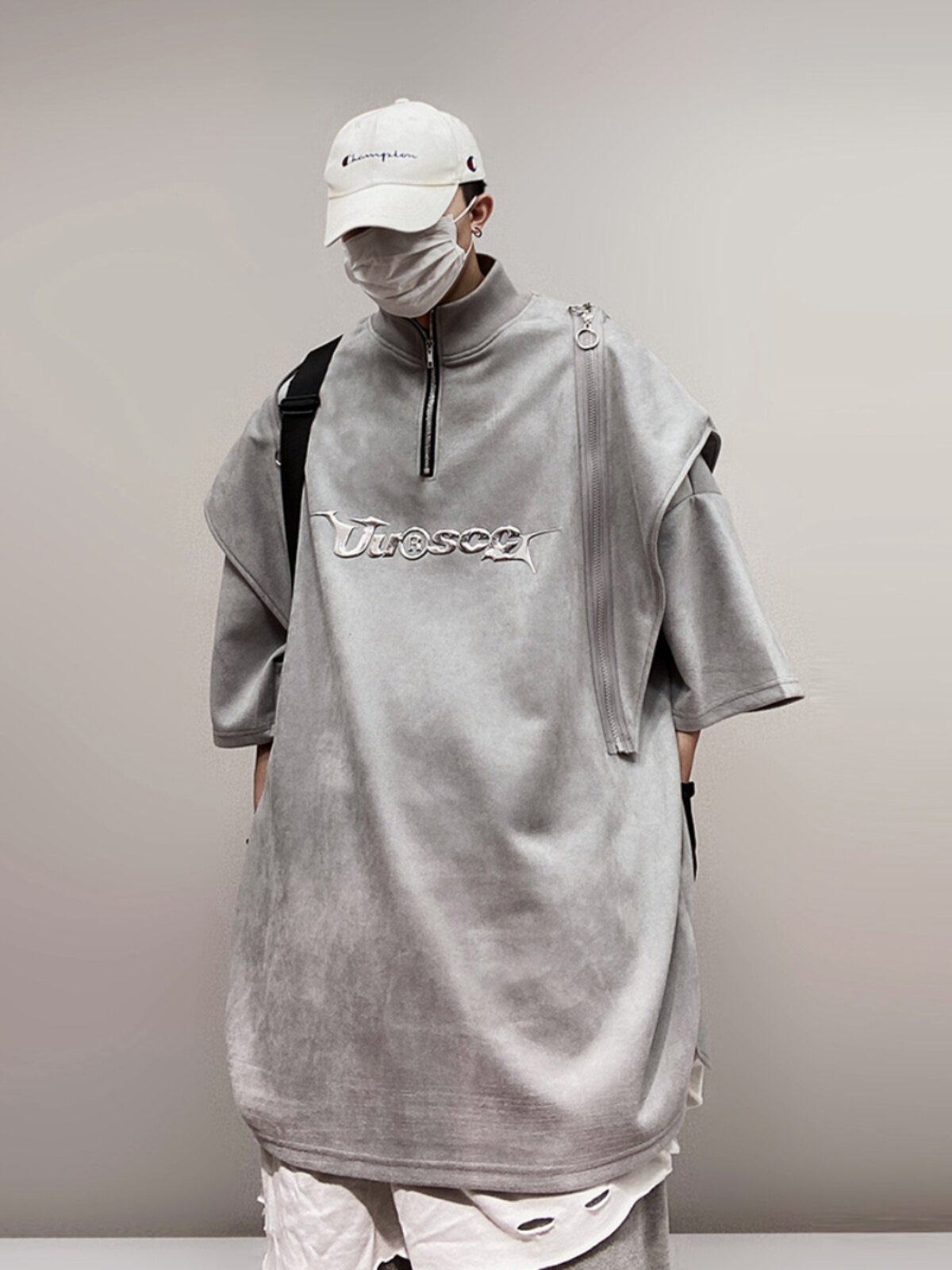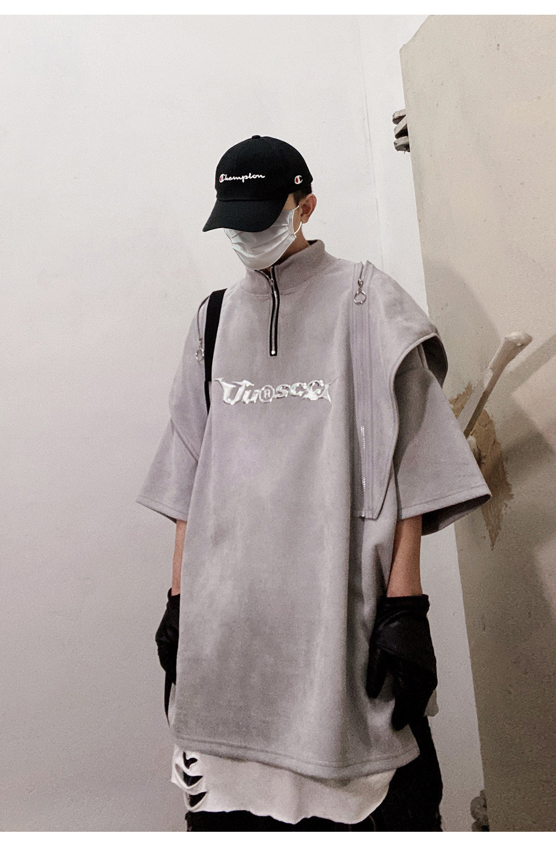 Дизайнерские наплечники в стиле хип-хоп, футболка, короткий рукав, свободный крой, тренд сезона, оверсайз