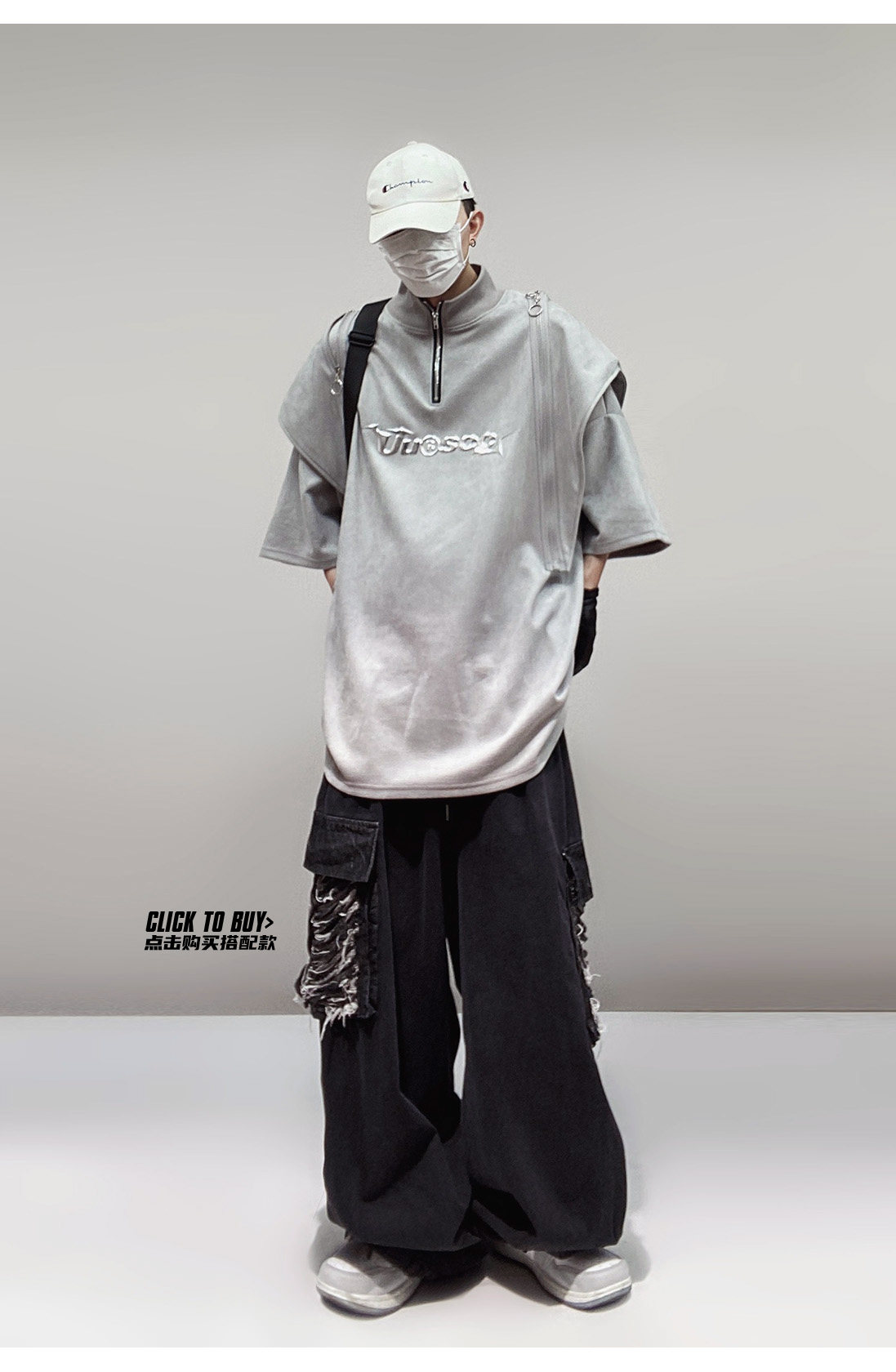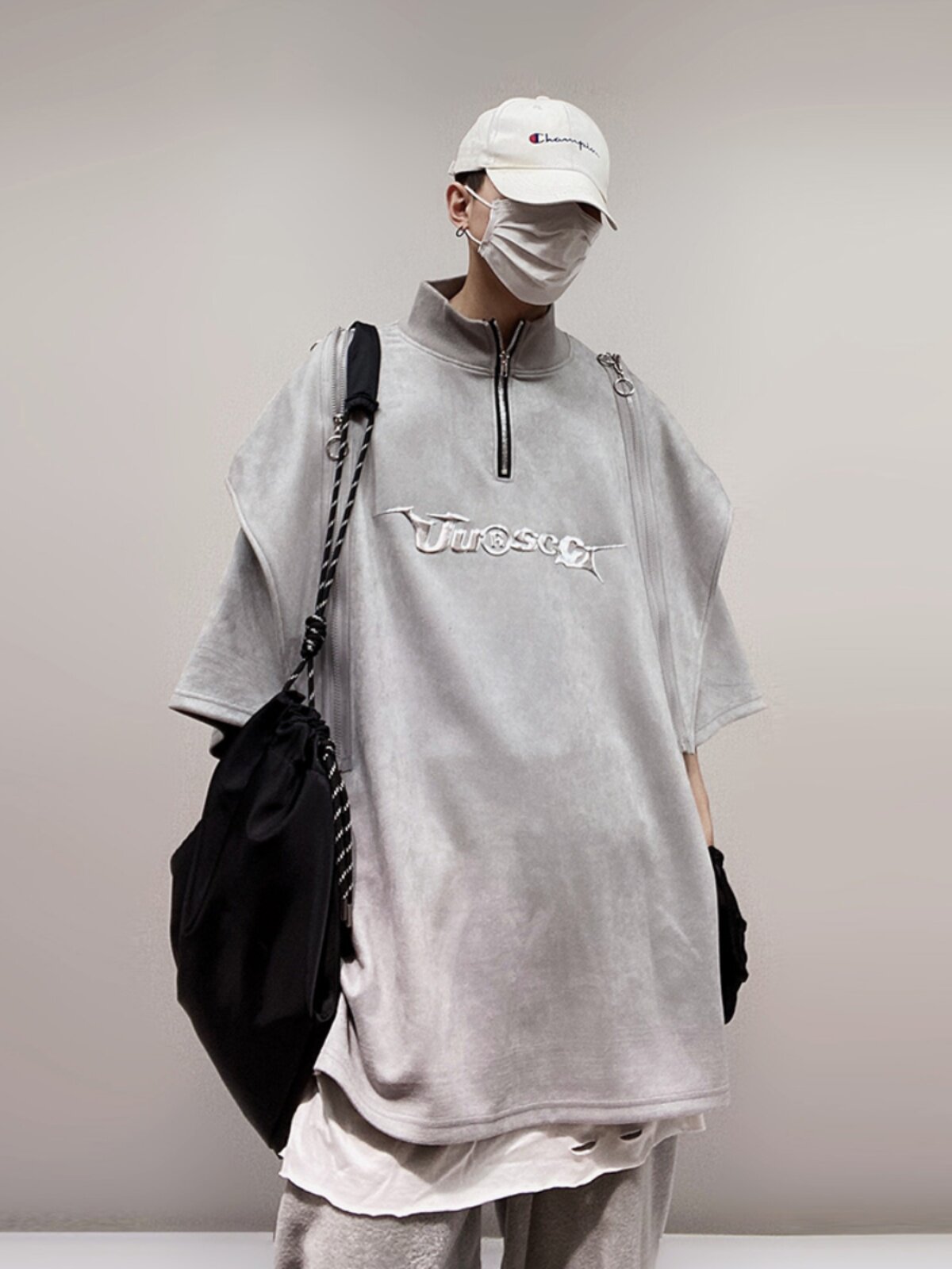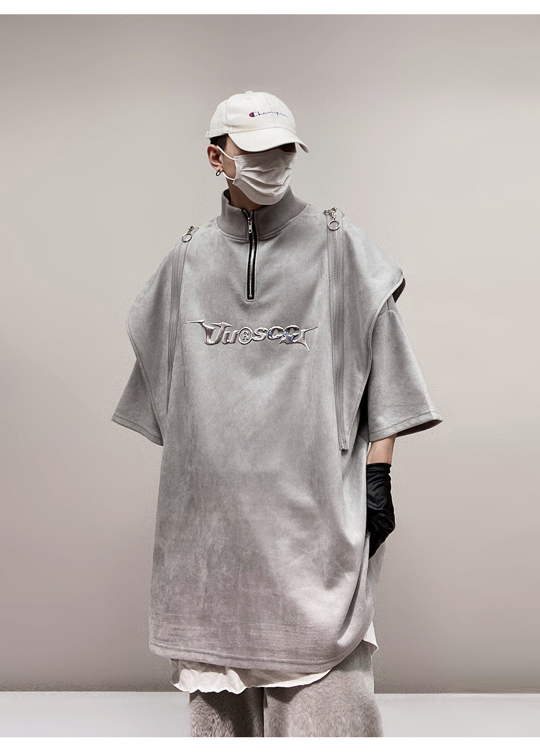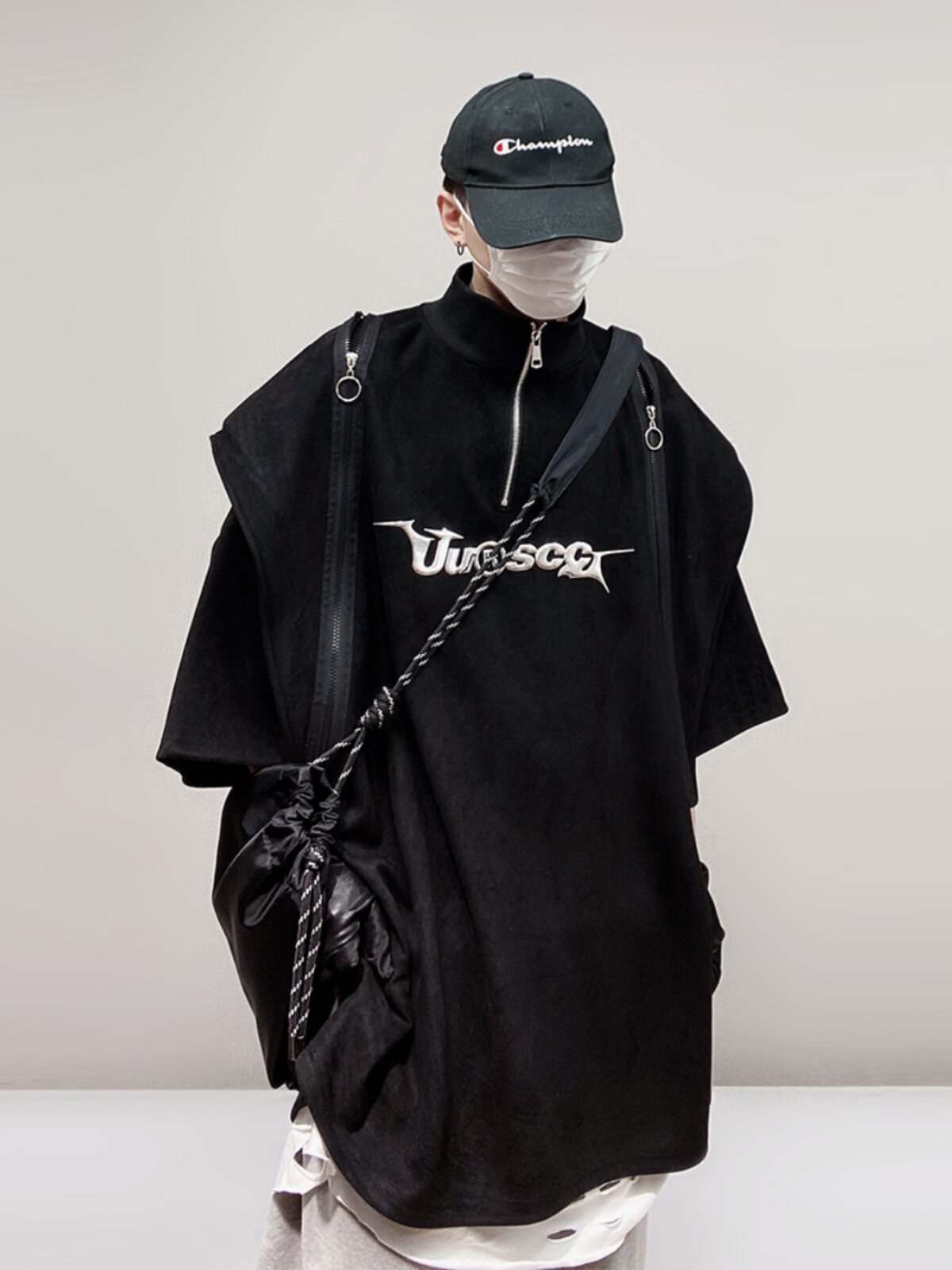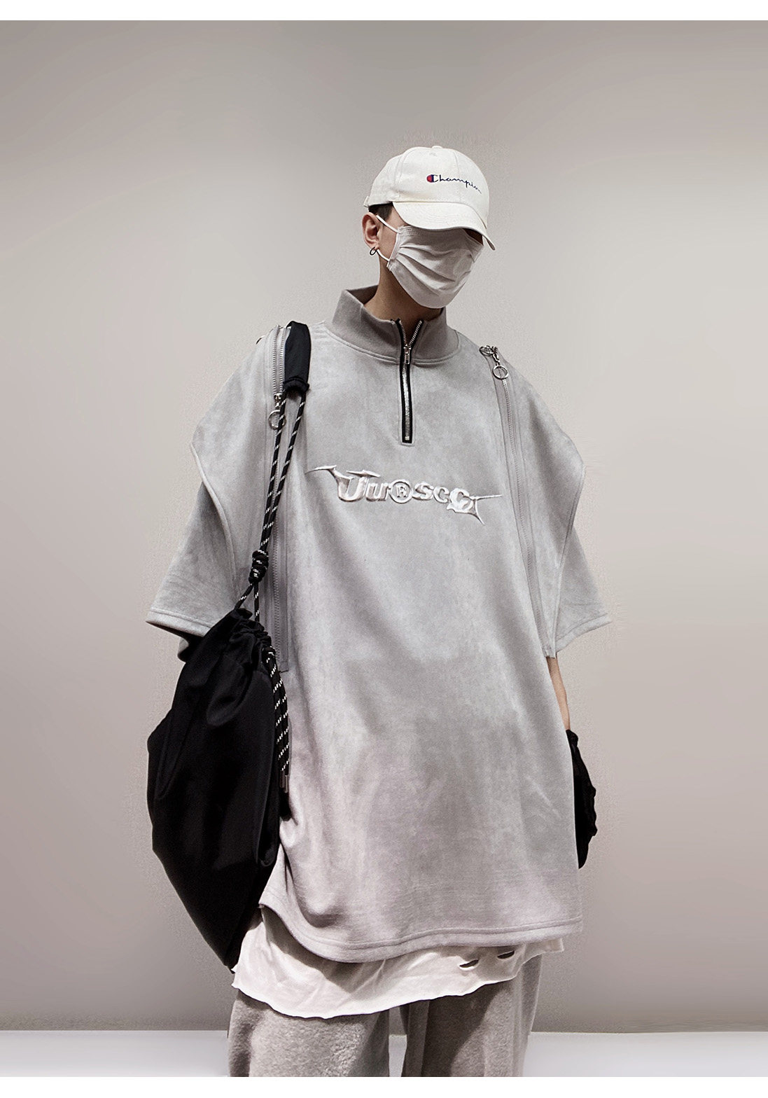Дизайнерские наплечники в стиле хип-хоп, футболка, короткий рукав, свободный крой, тренд сезона, оверсайз