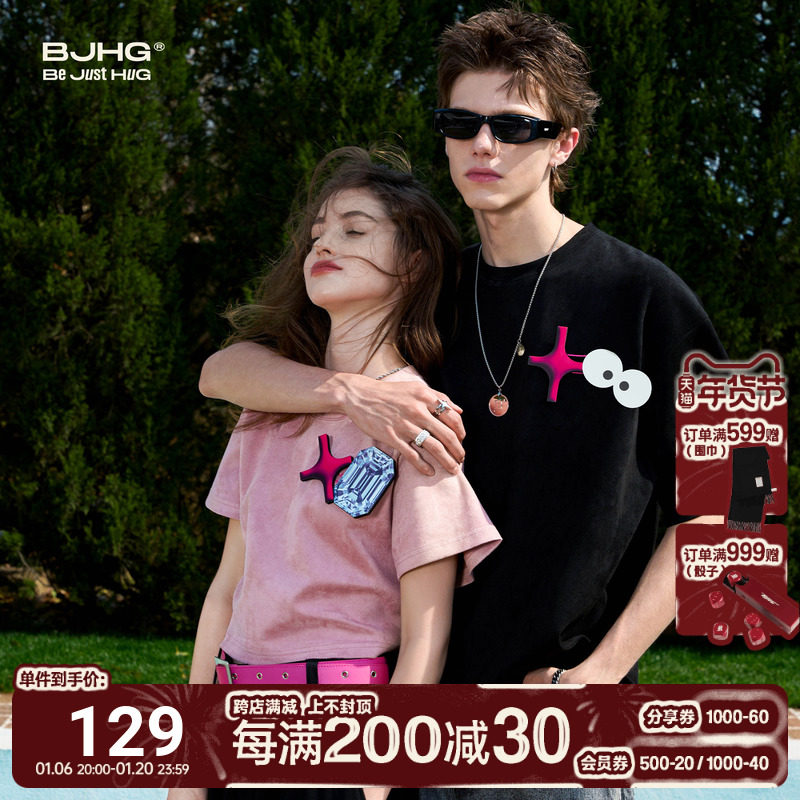 BJHG Шелковая бархатная летняя футболка с коротким рукавом на липучке