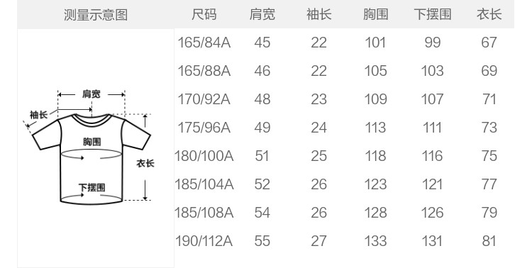 | Размер: | 165/84a (xs) размер Азии, 165/88A (S) размер Азии, 170/92A (M) размер Азии, 175/96A (L) азиатский размер, 180/100a (XL) размер Азии, 185/104A (xxl) размер Азии, 185/108a (xxxl) азиатский размер |