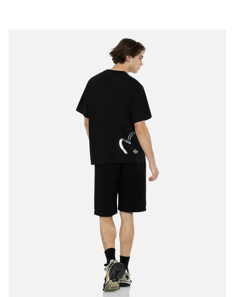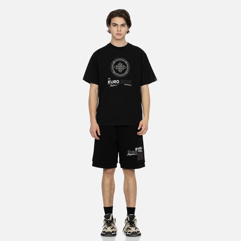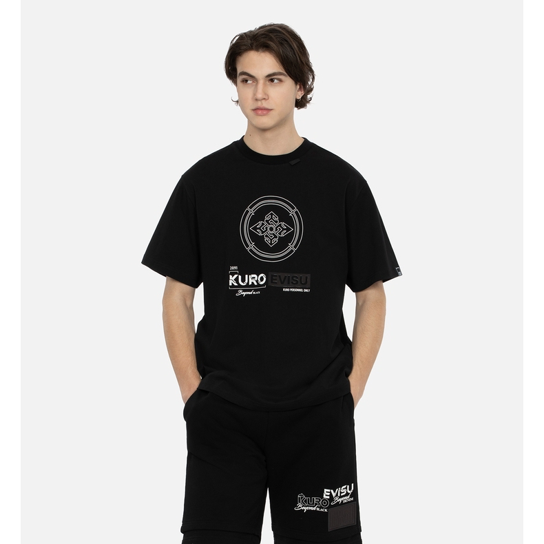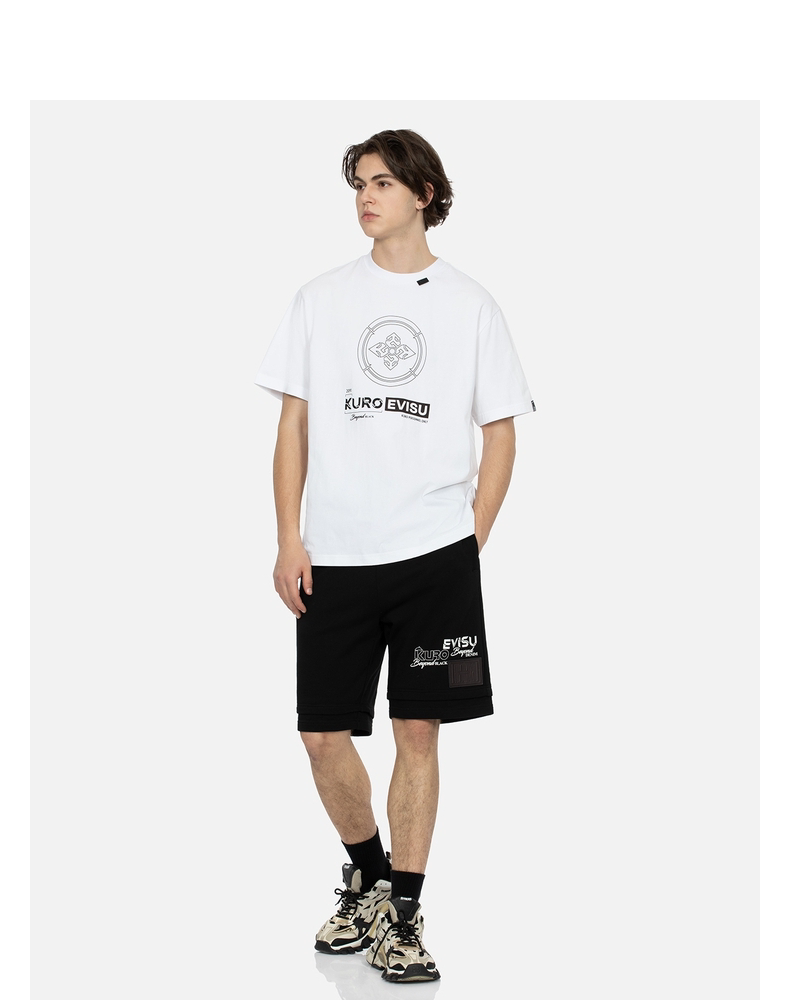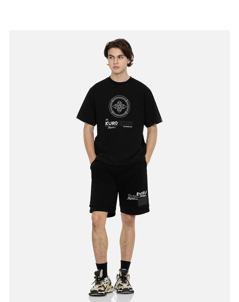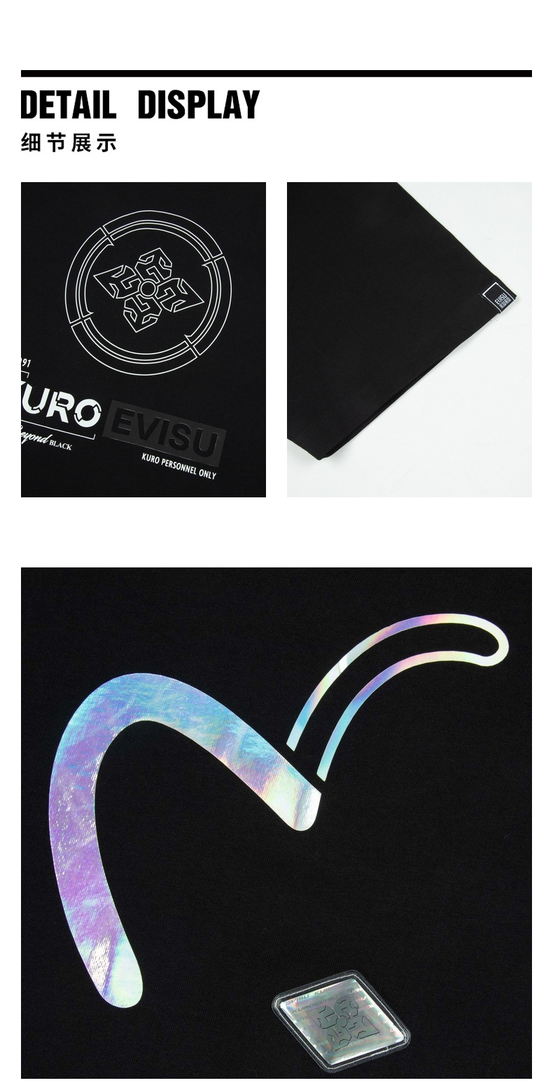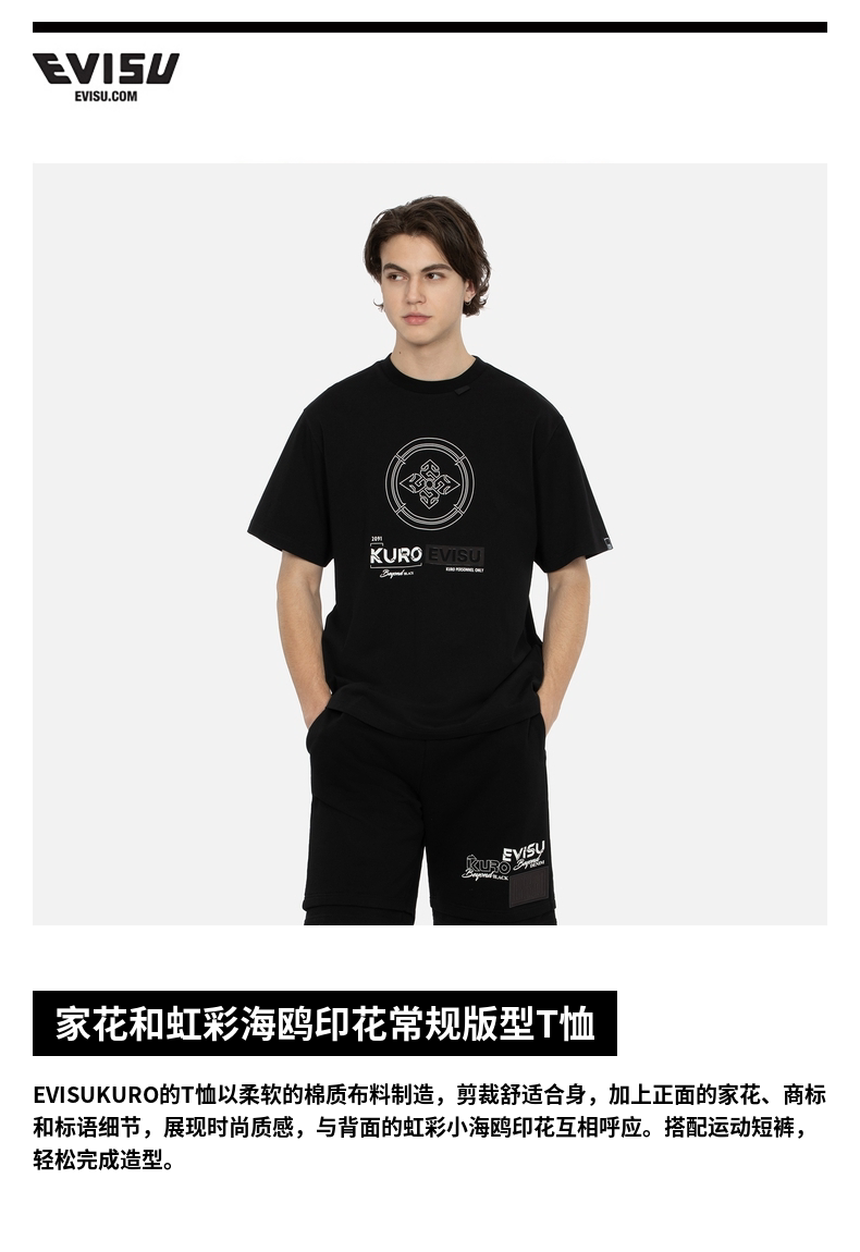 Мужская футболка EVISU KURO с цветочным принтом «домик» и переливающейся чайкой, стандартный крой, с короткими рукавами