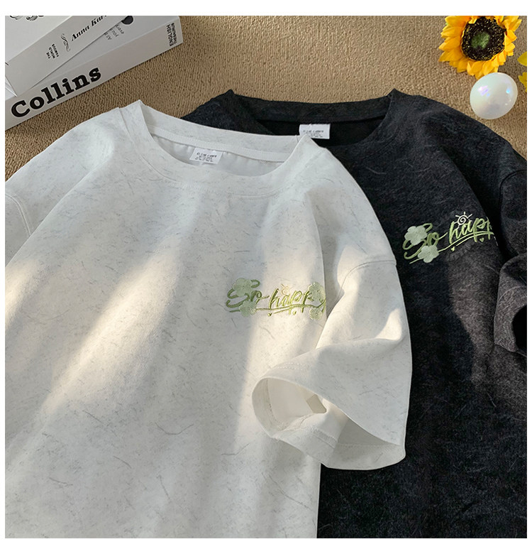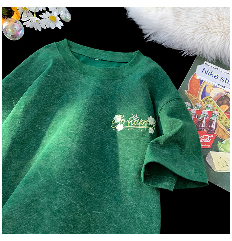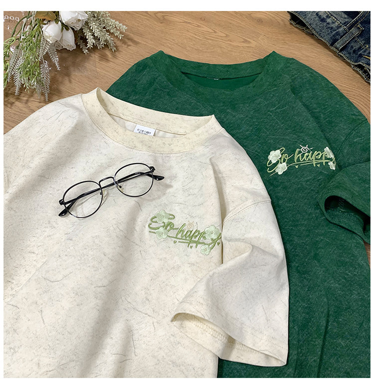 Шелковая футболка с коротким рукавом, в американском стиле, с вышивкой