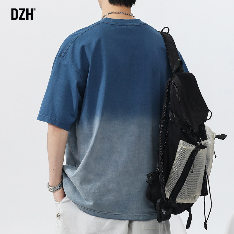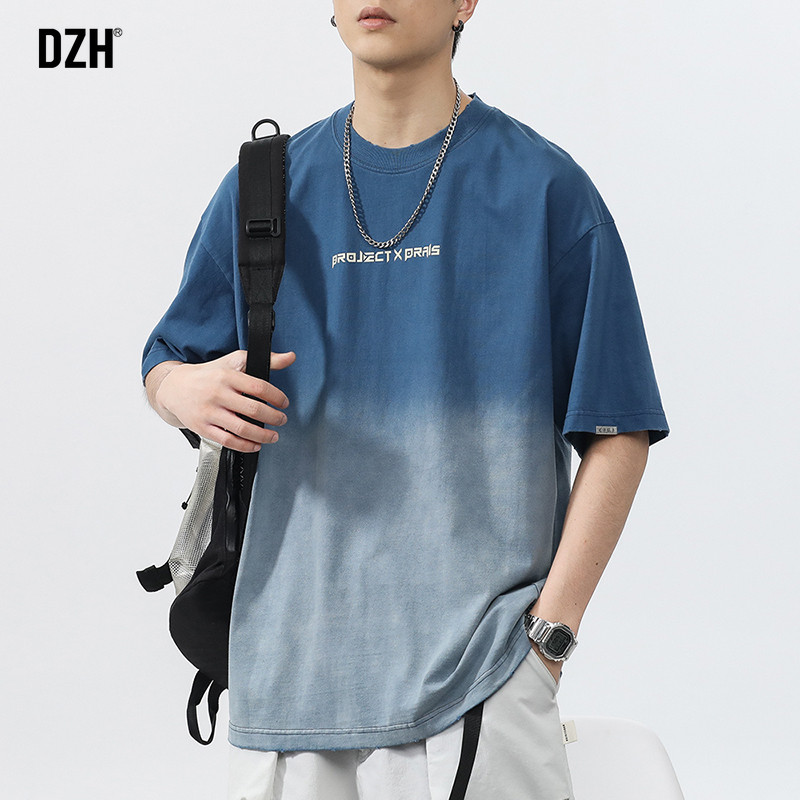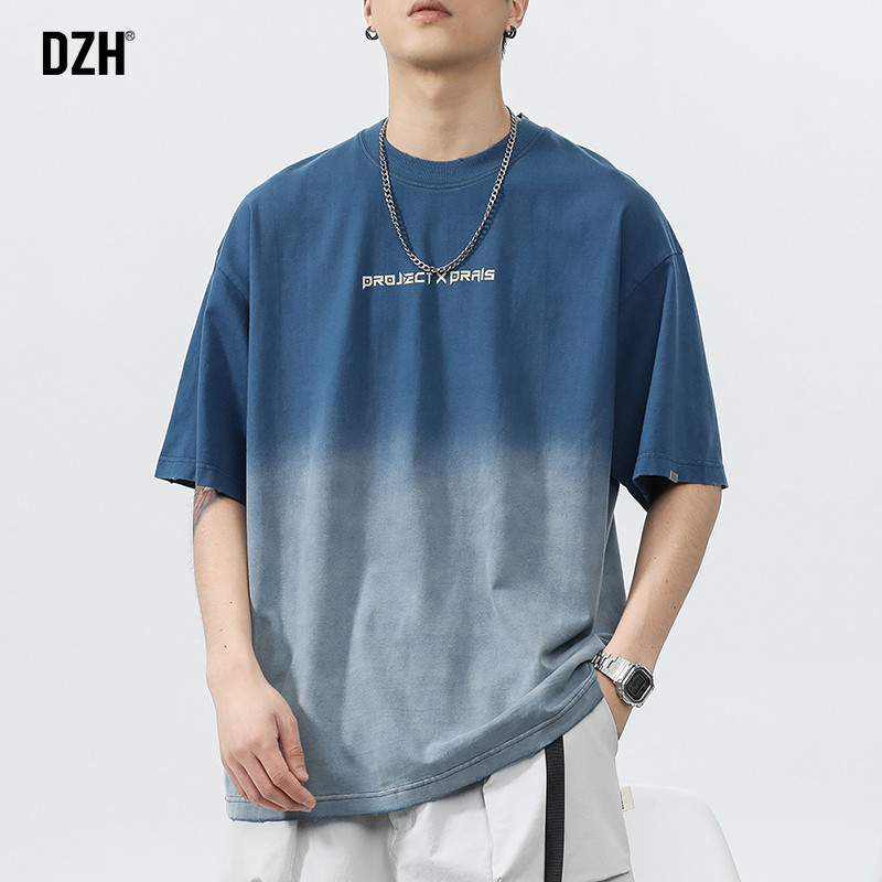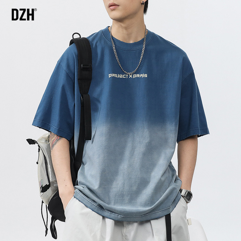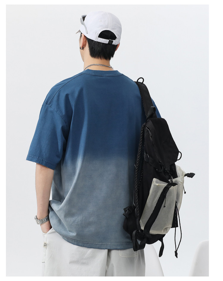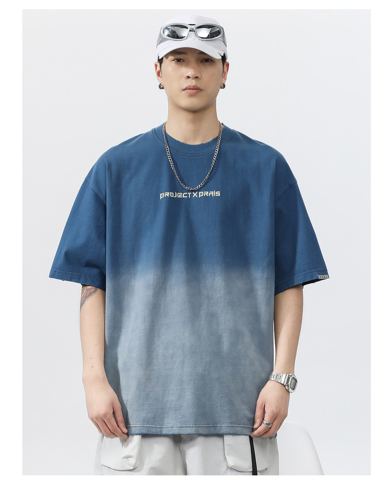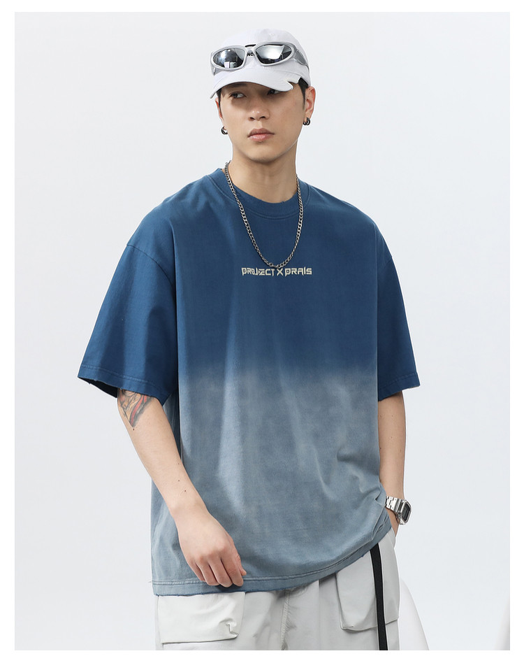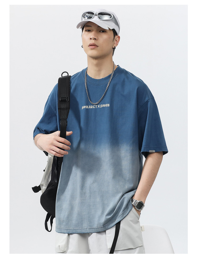 Синяя хлопковая футболка с коротким рукавом, градиент, короткий рукав