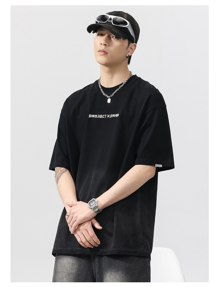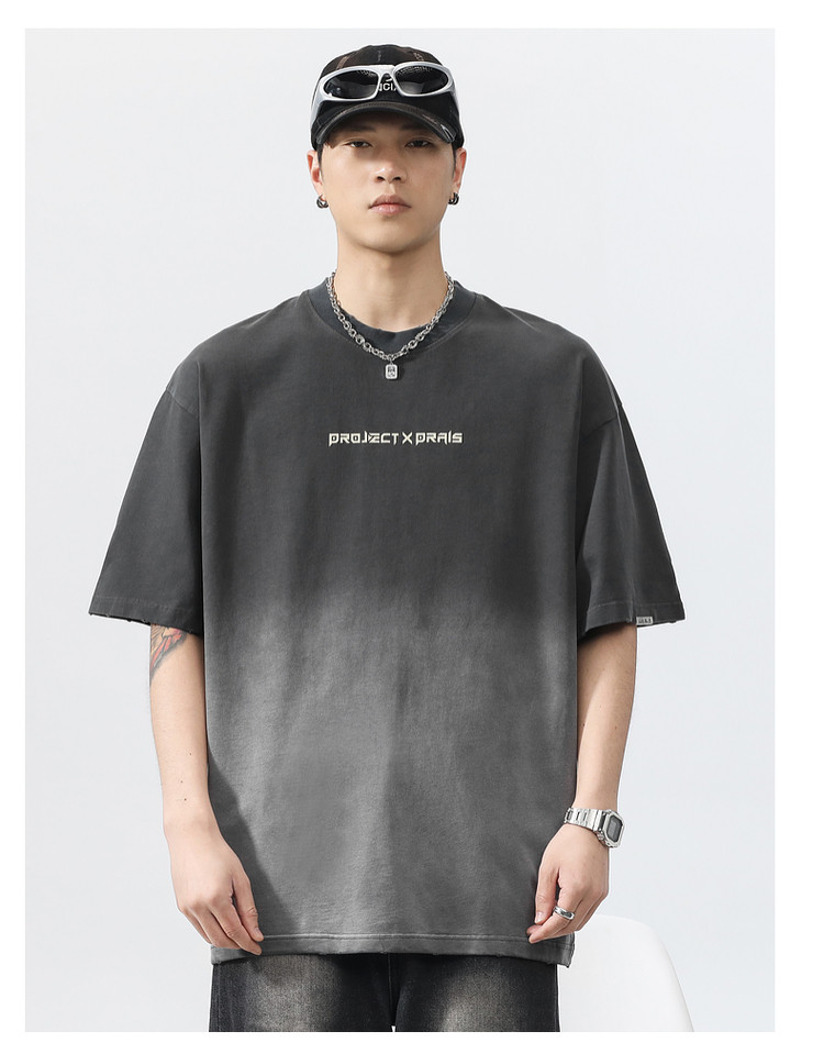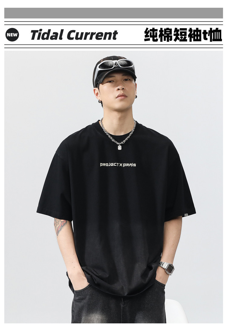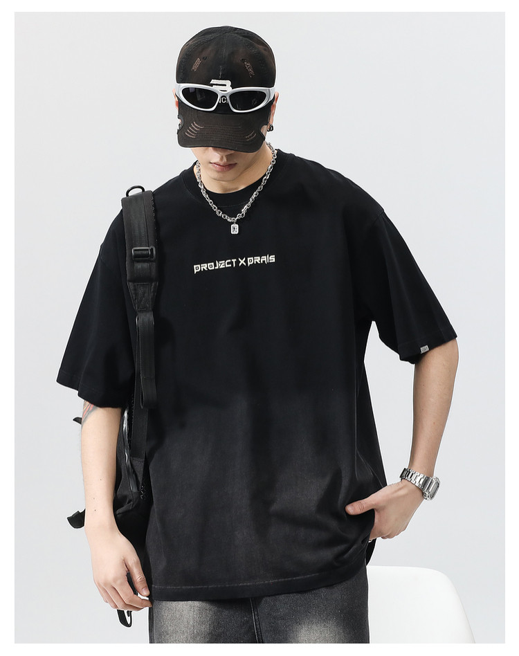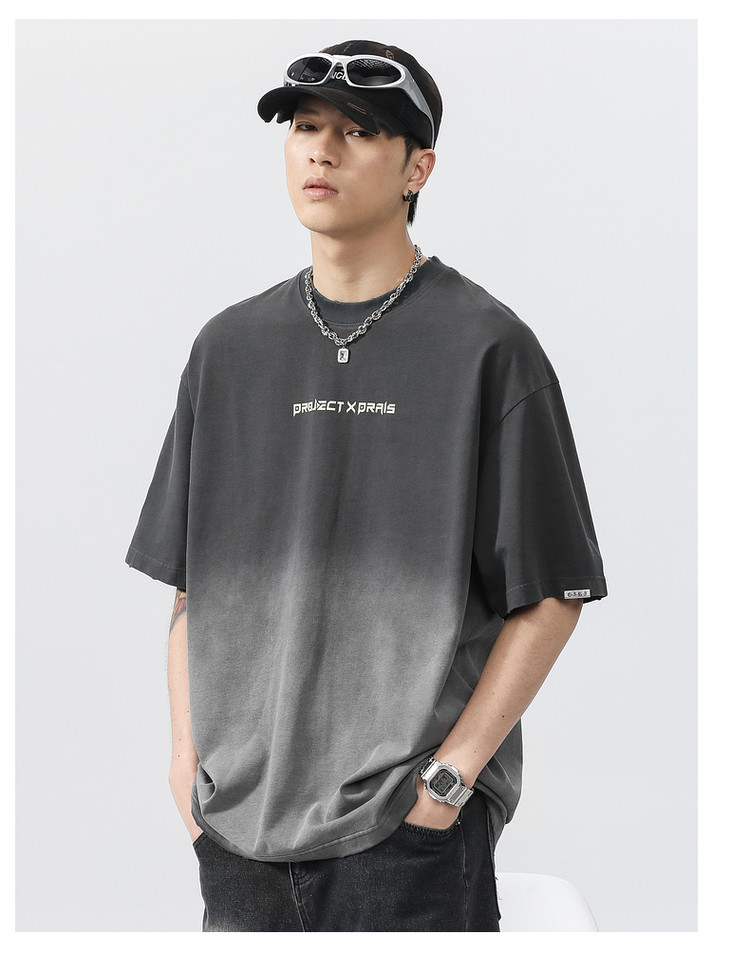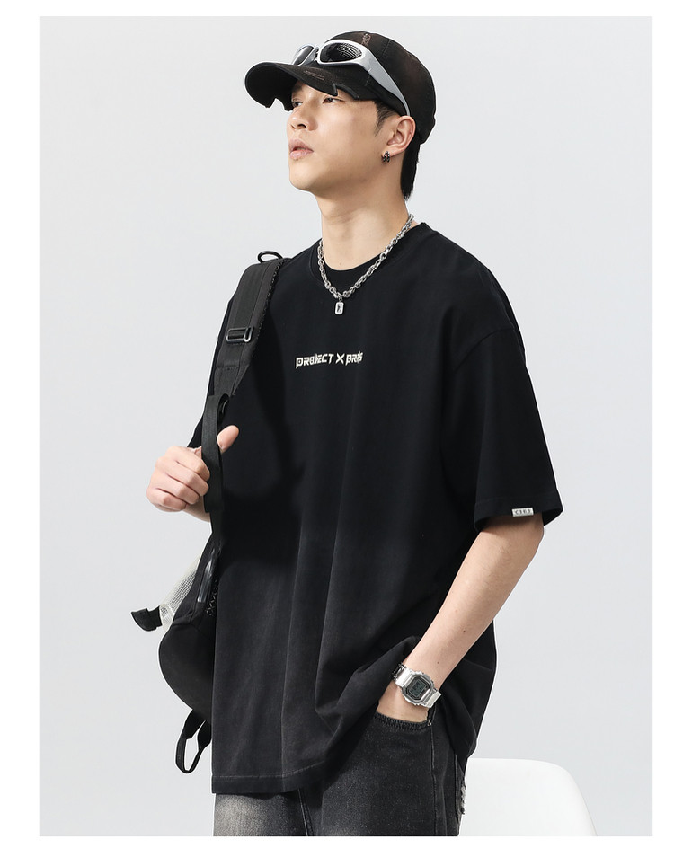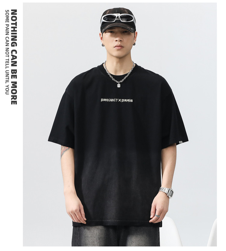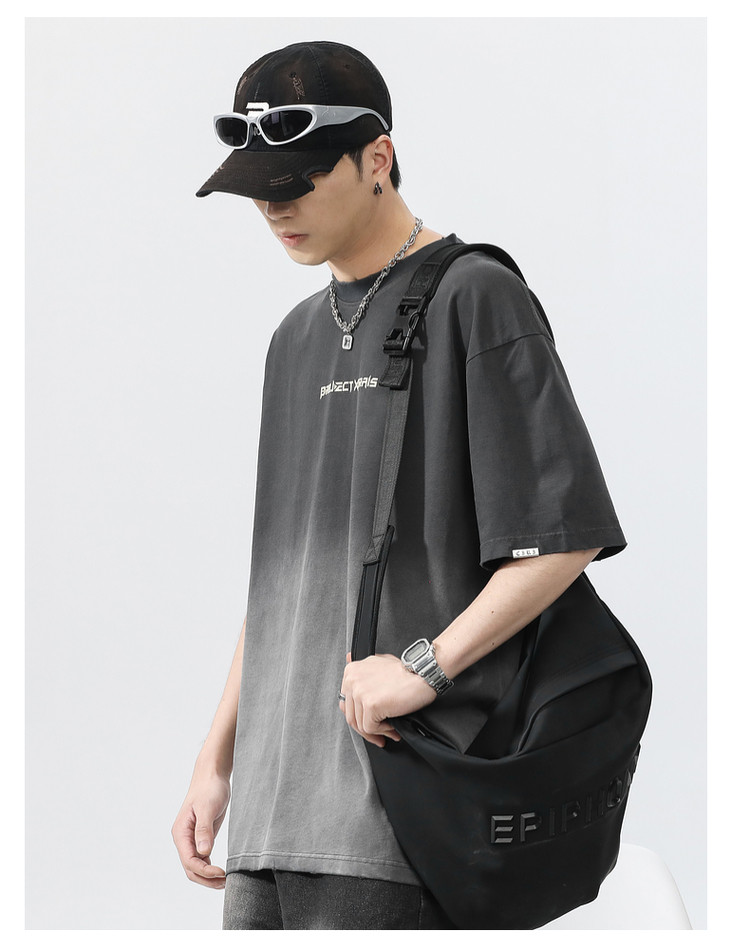 Синяя хлопковая футболка с коротким рукавом, градиент, короткий рукав