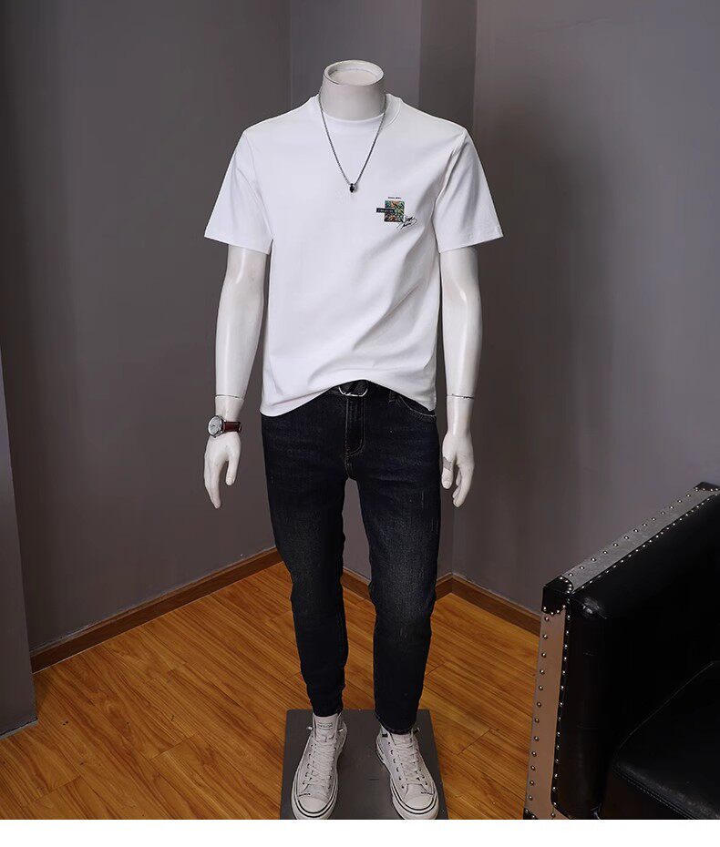 Летняя трендовая хлопковая футболка с коротким рукавом, в корейском стиле, облегающий крой