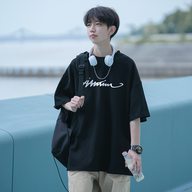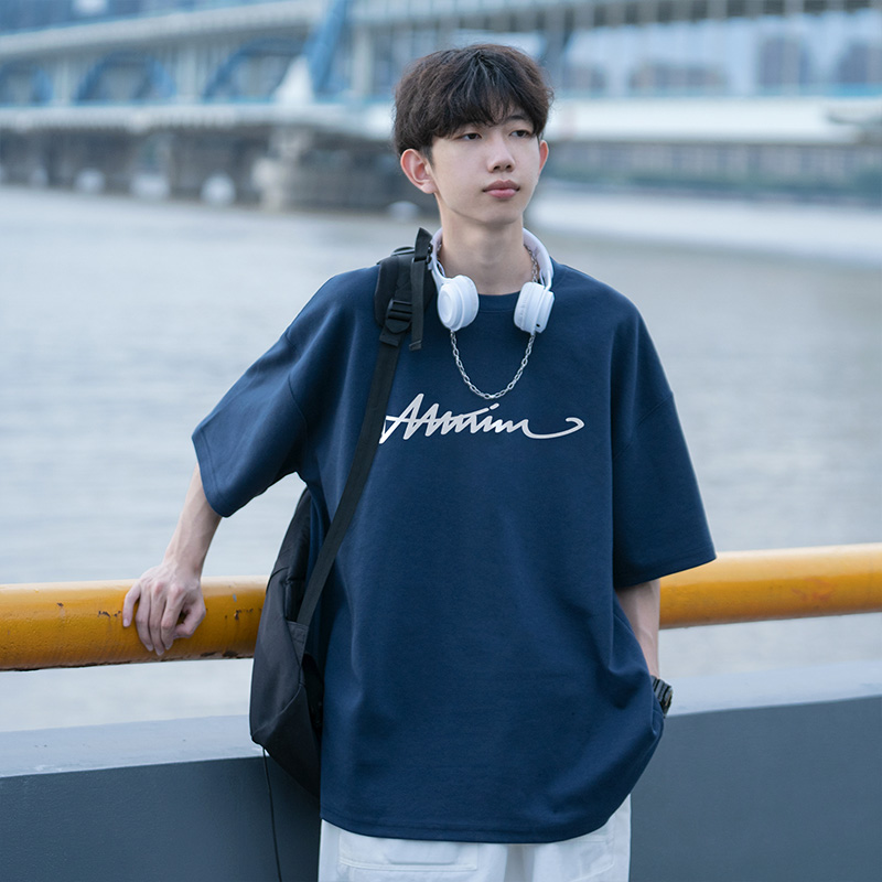 Хлопковая трендовая футболка с коротким рукавом для отдыха, оверсайз