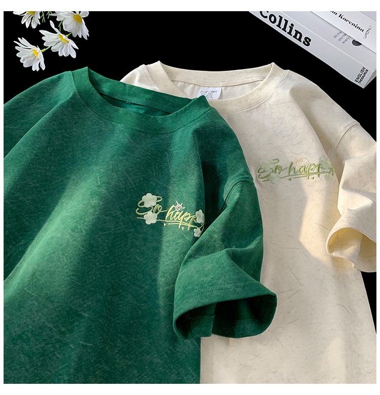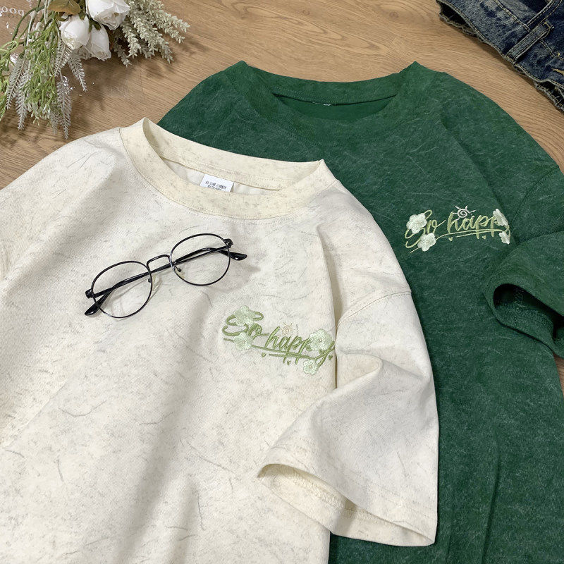 Летняя ретро футболка, короткий рукав, оверсайз, в американском стиле, с вышивкой