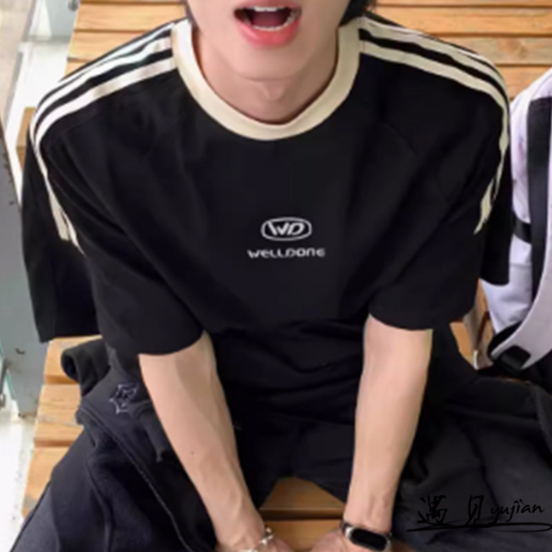 Футболка с коротким рукавом с круглым воротником подходит для мужчин и женщин, с вышивкой, оверсайз