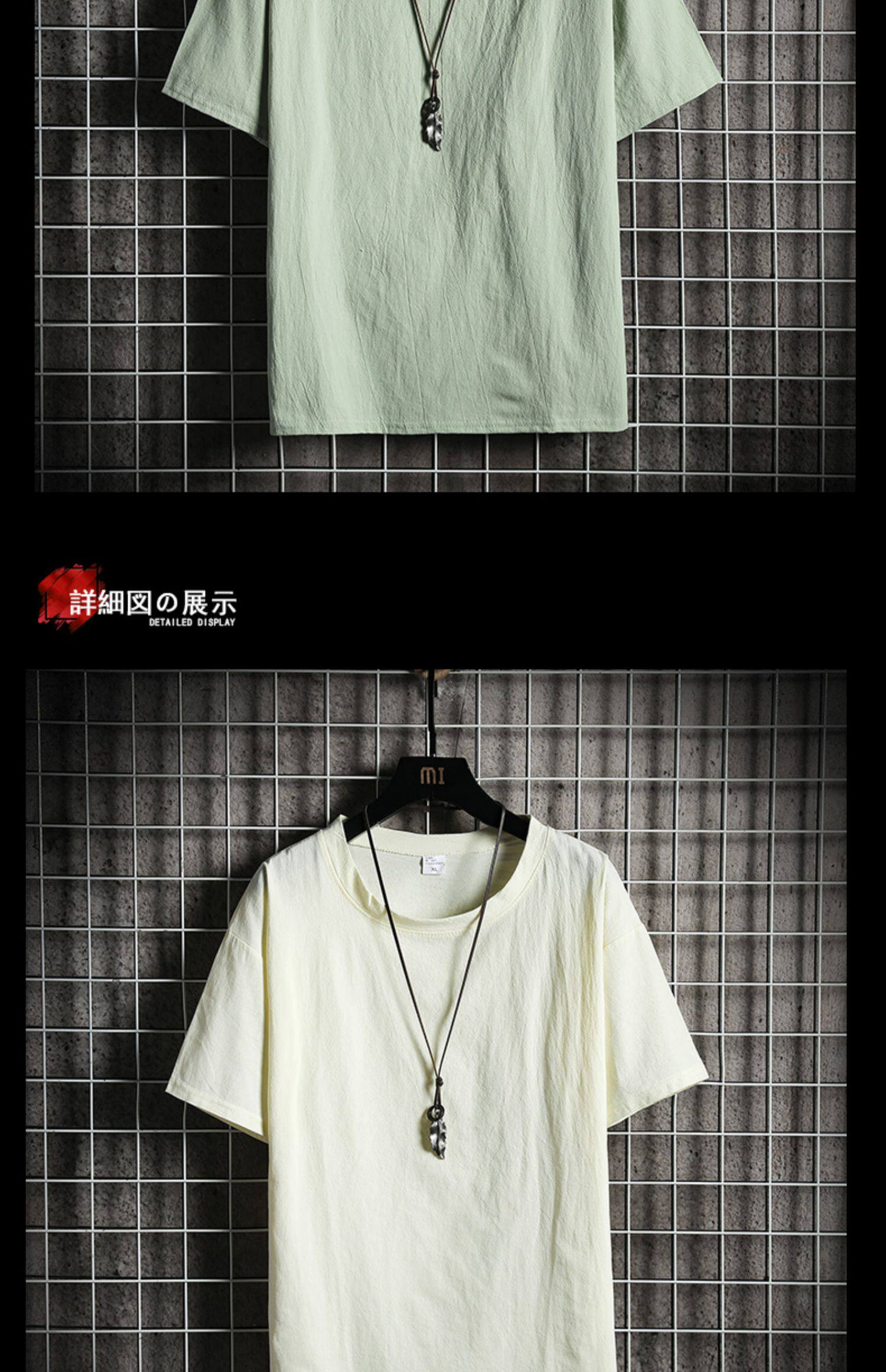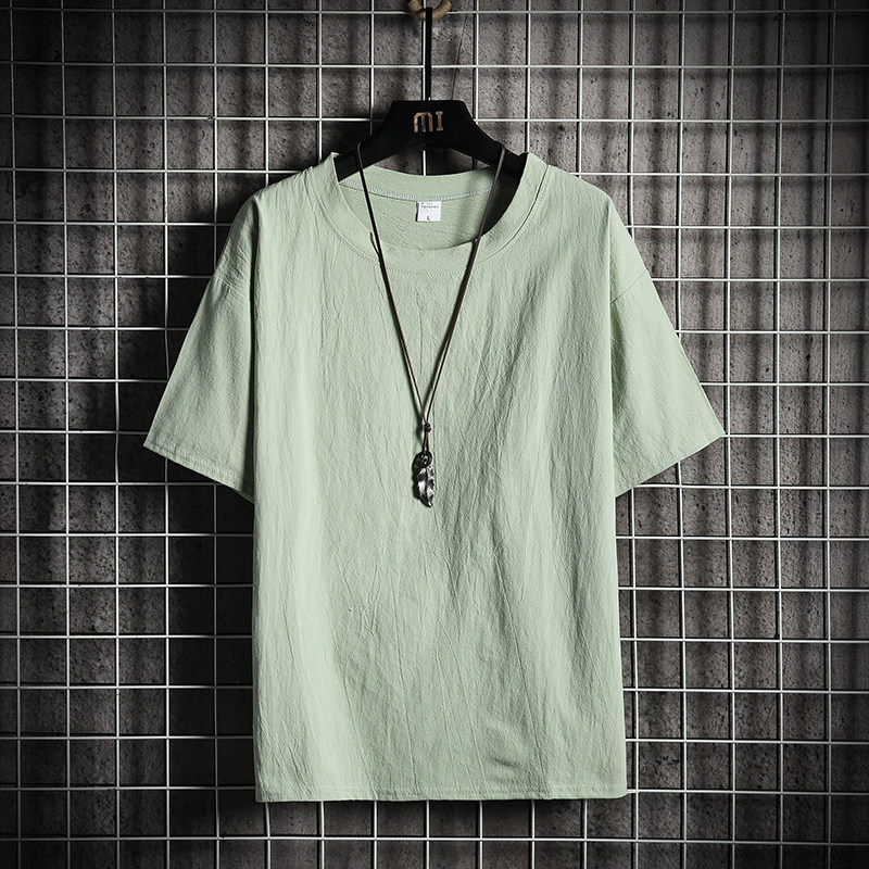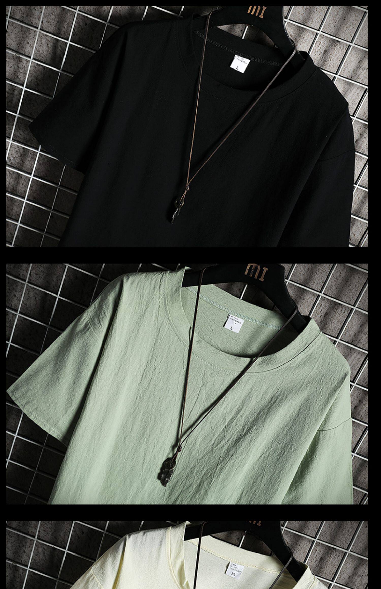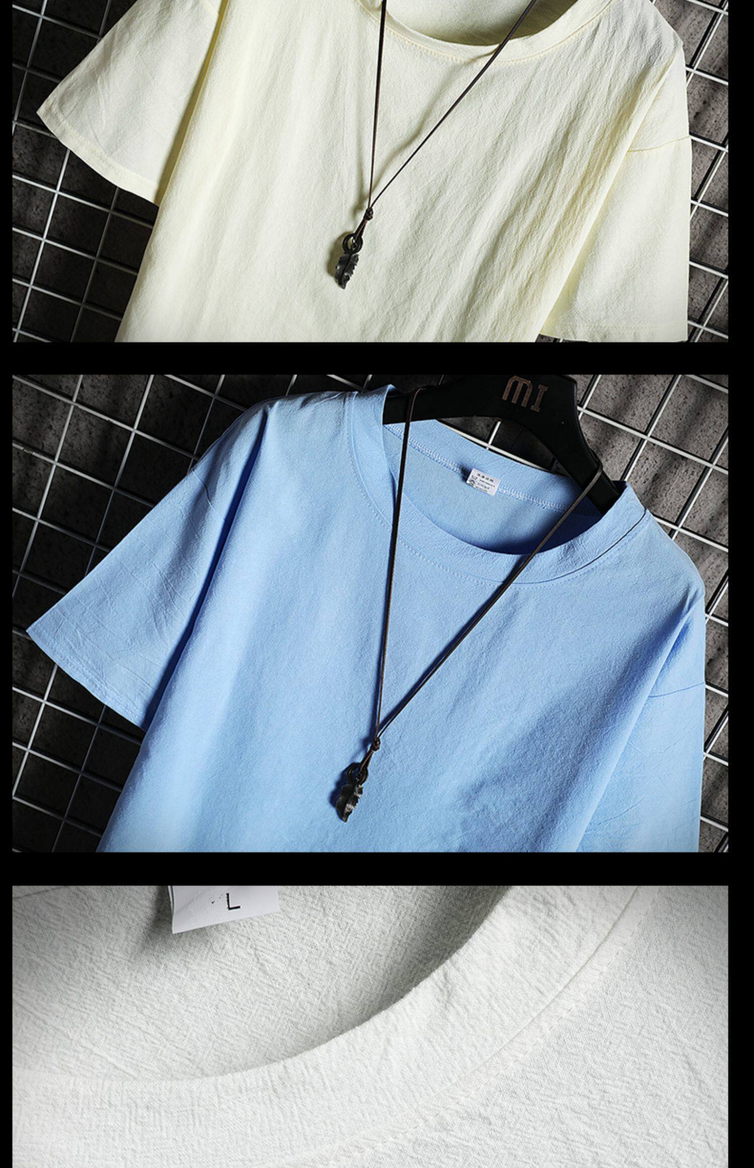 Летняя цветная шелковая дышащая футболка с коротким рукавом, из хлопка и льна