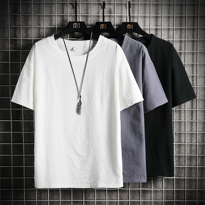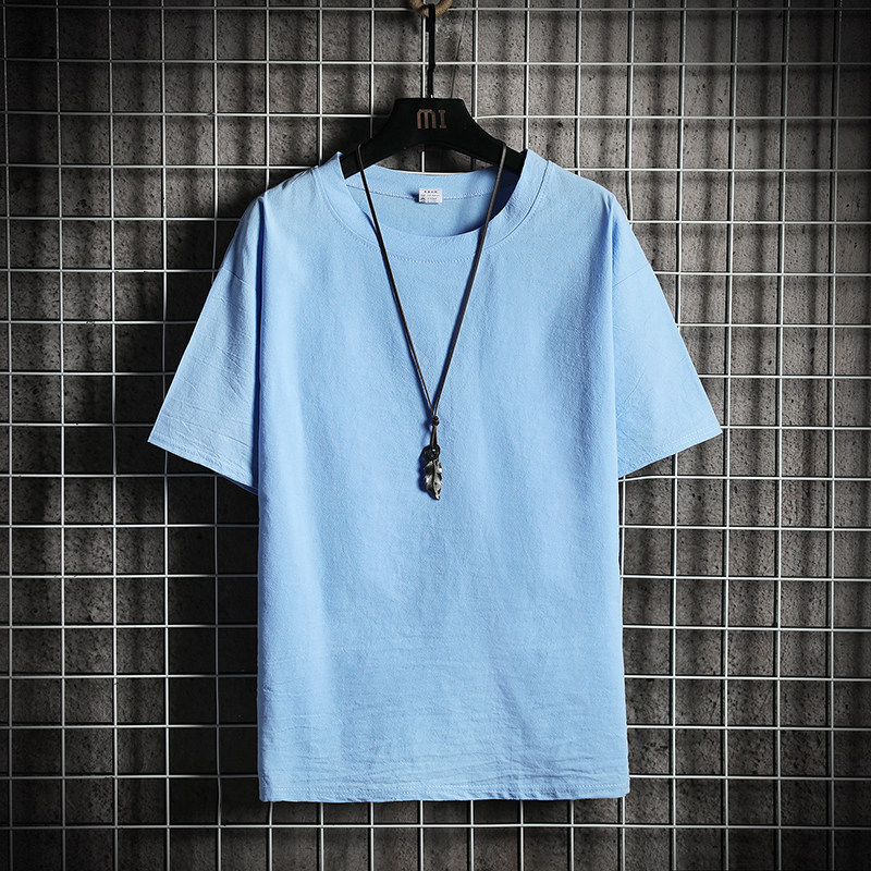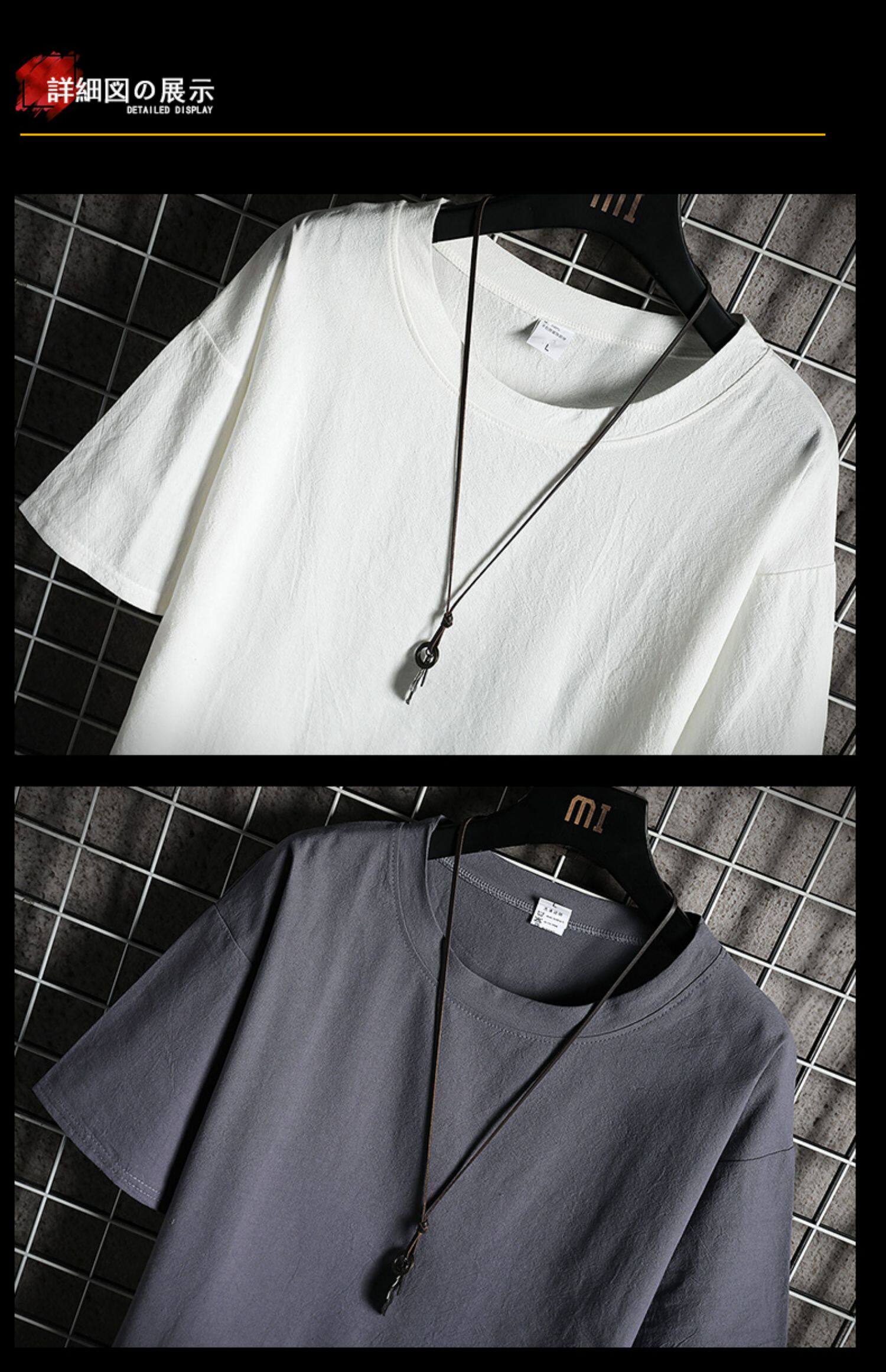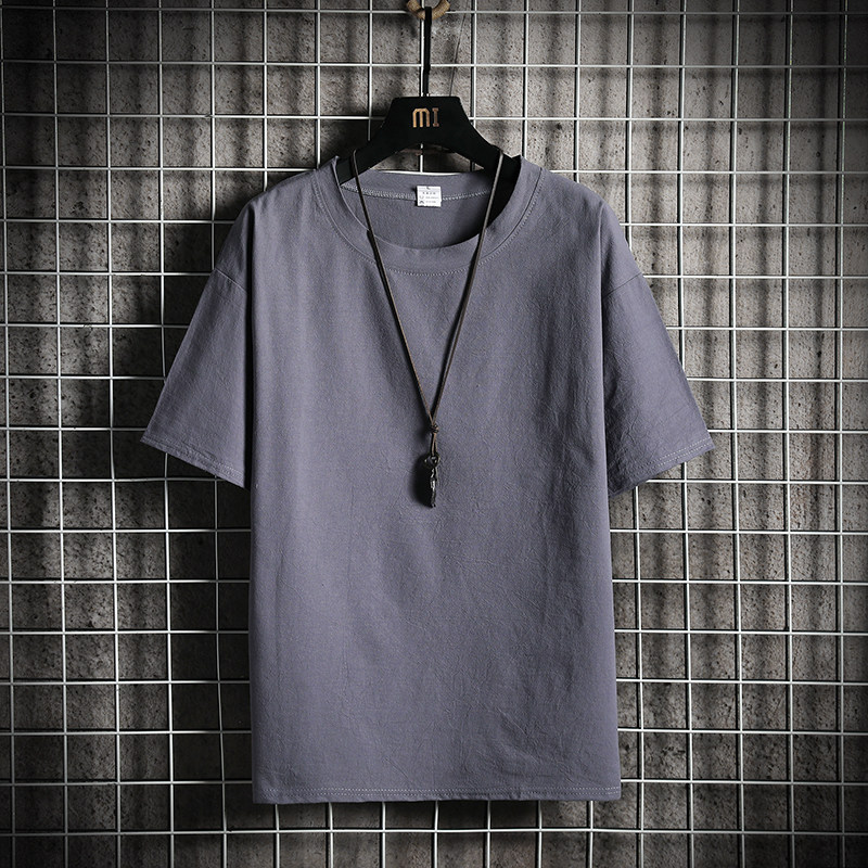 Летняя цветная шелковая дышащая футболка с коротким рукавом, из хлопка и льна