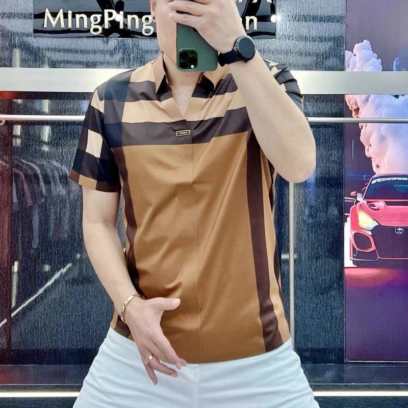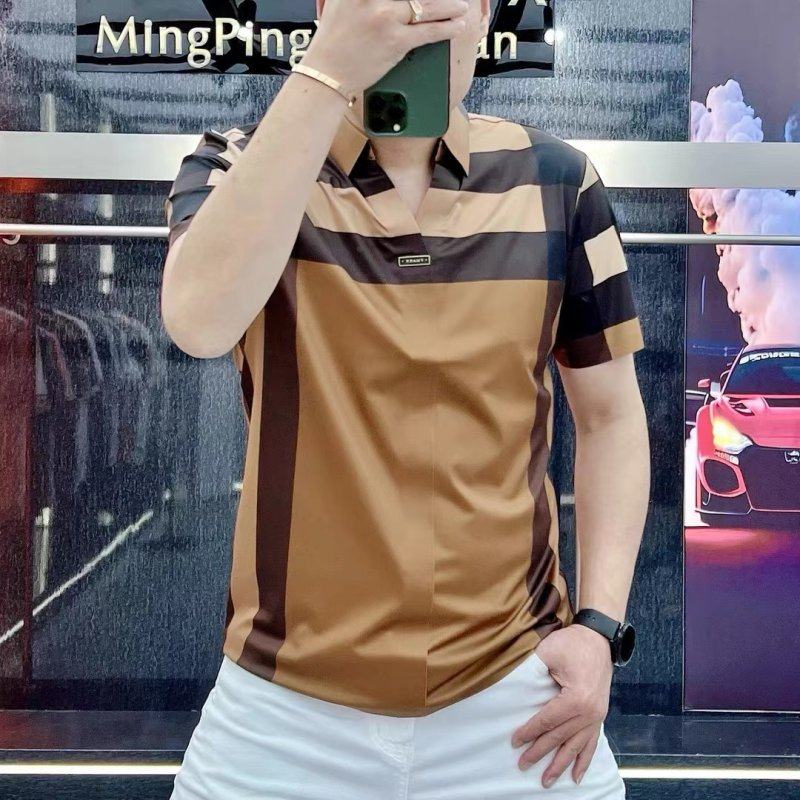Шелковая футболка с коротким рукавом, футболка polo для отдыха, V-образный вырез