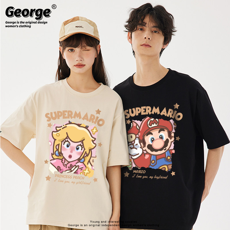 Свежая парная одежда, футболка подходит для мужчин и женщин для отдыха, в корейском стиле, для влюбленных, короткий рукав