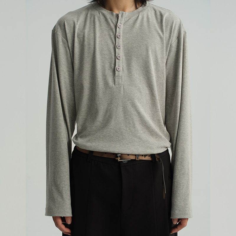 JCAESAR HENRY SLEEVE Воротник Генри с длинными рукавами, мягкий, удобный и универсальный, подчеркивает фигуру, доступен в нескольких цветах.