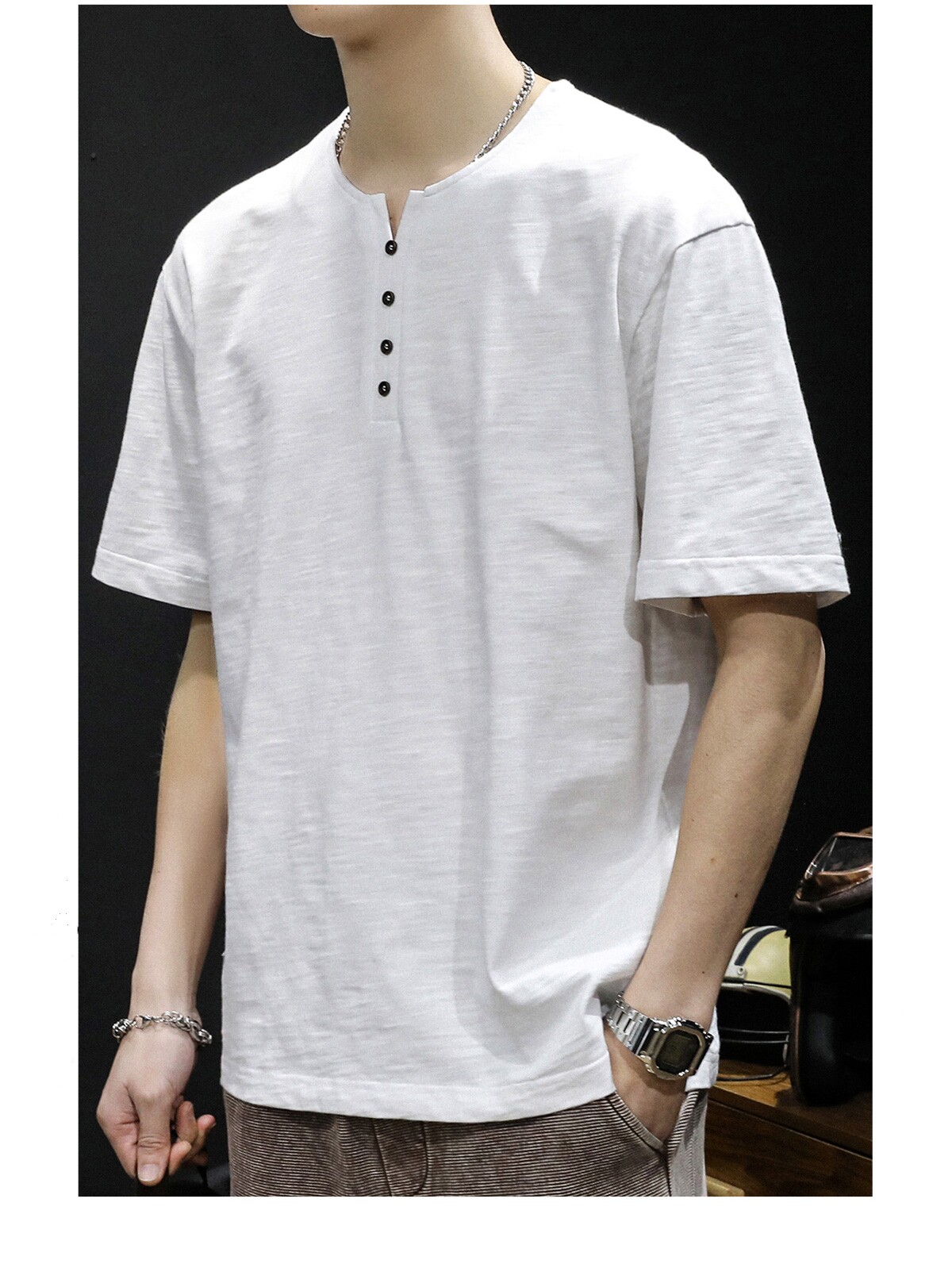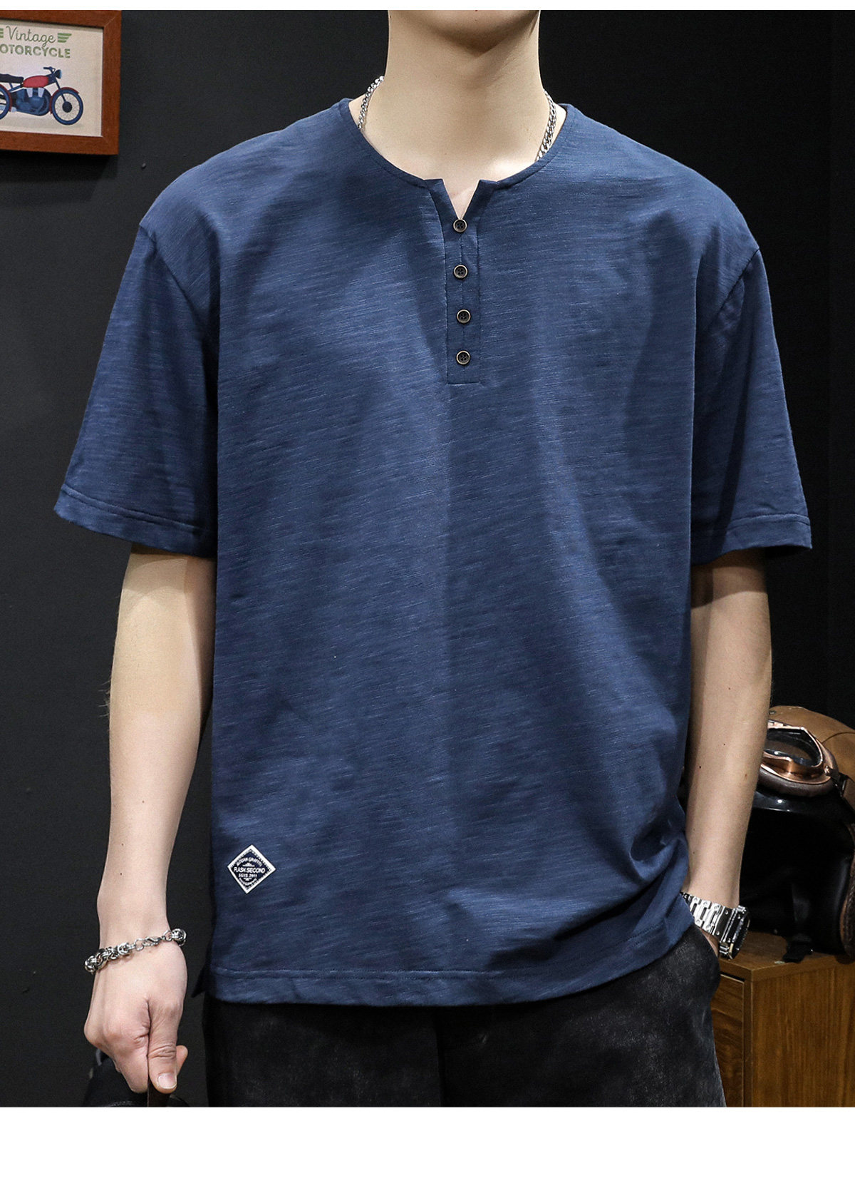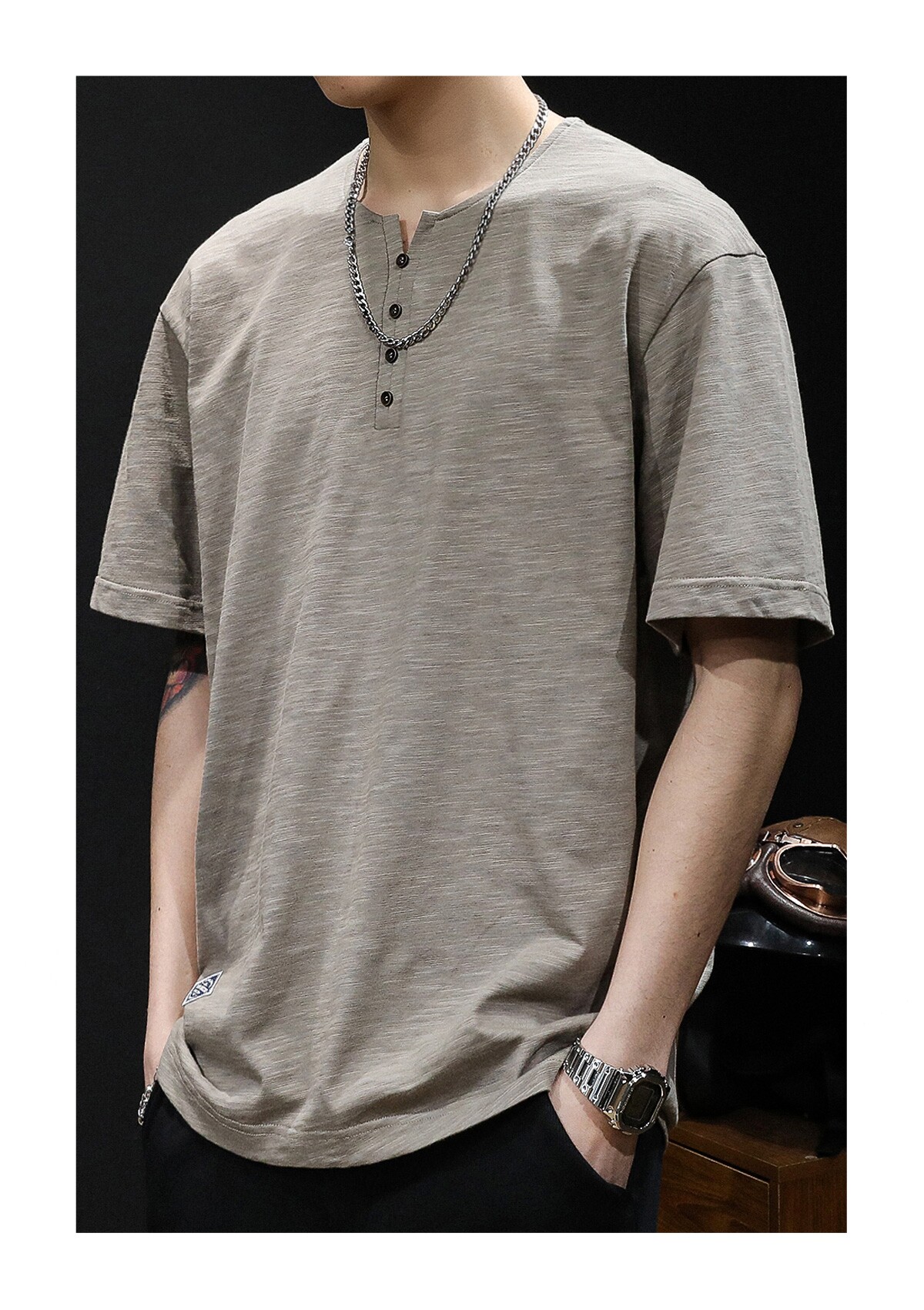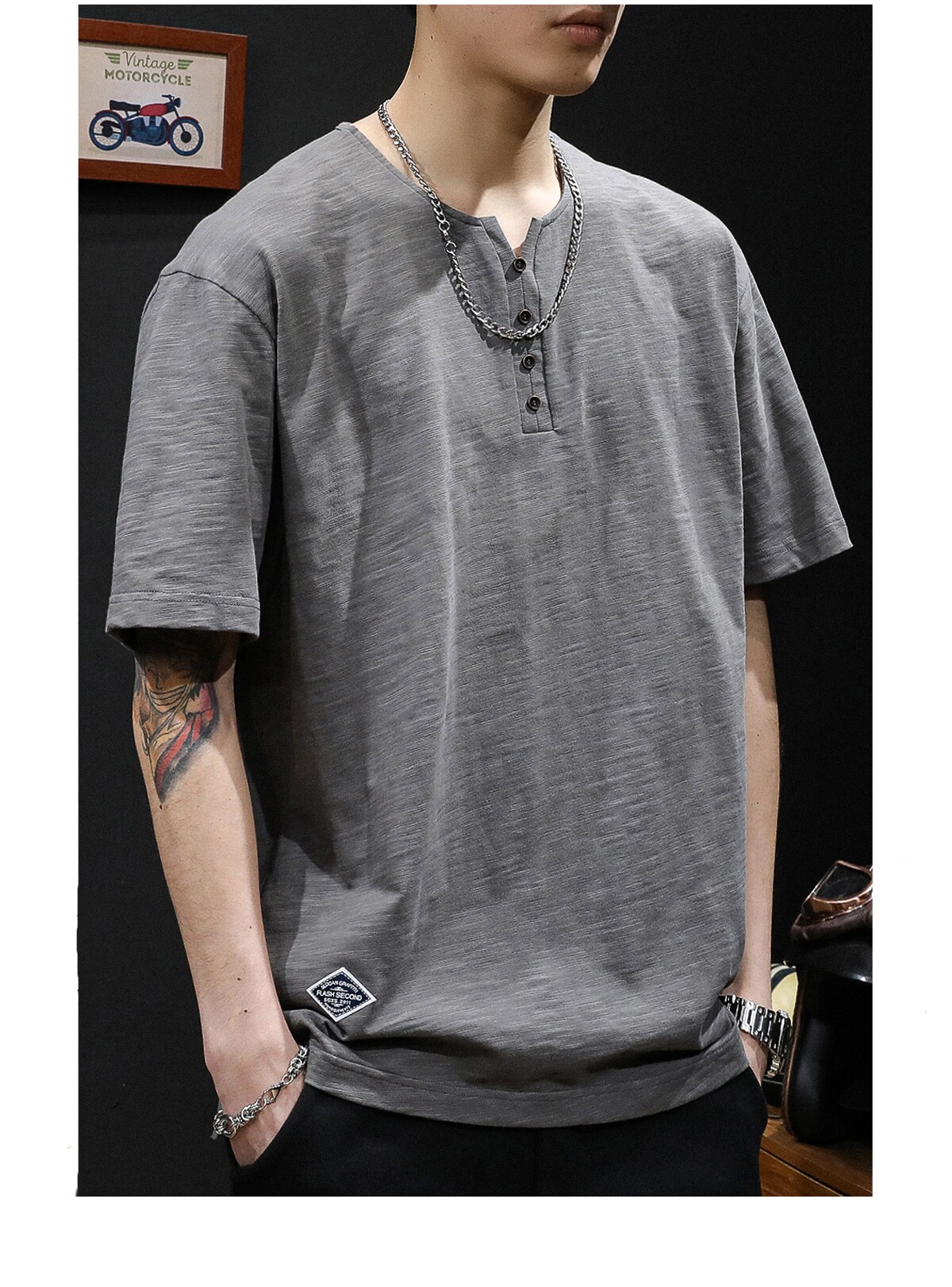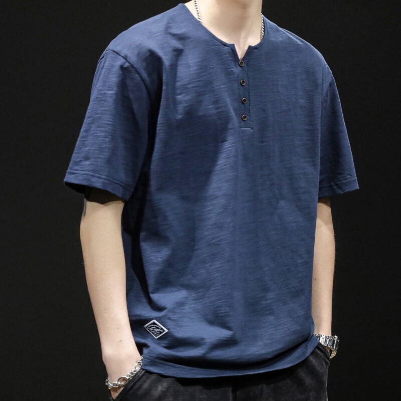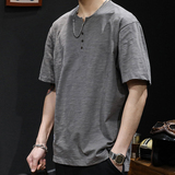 Бамбуковая хлопковая японская ретро футболка с коротким рукавом, свободный крой