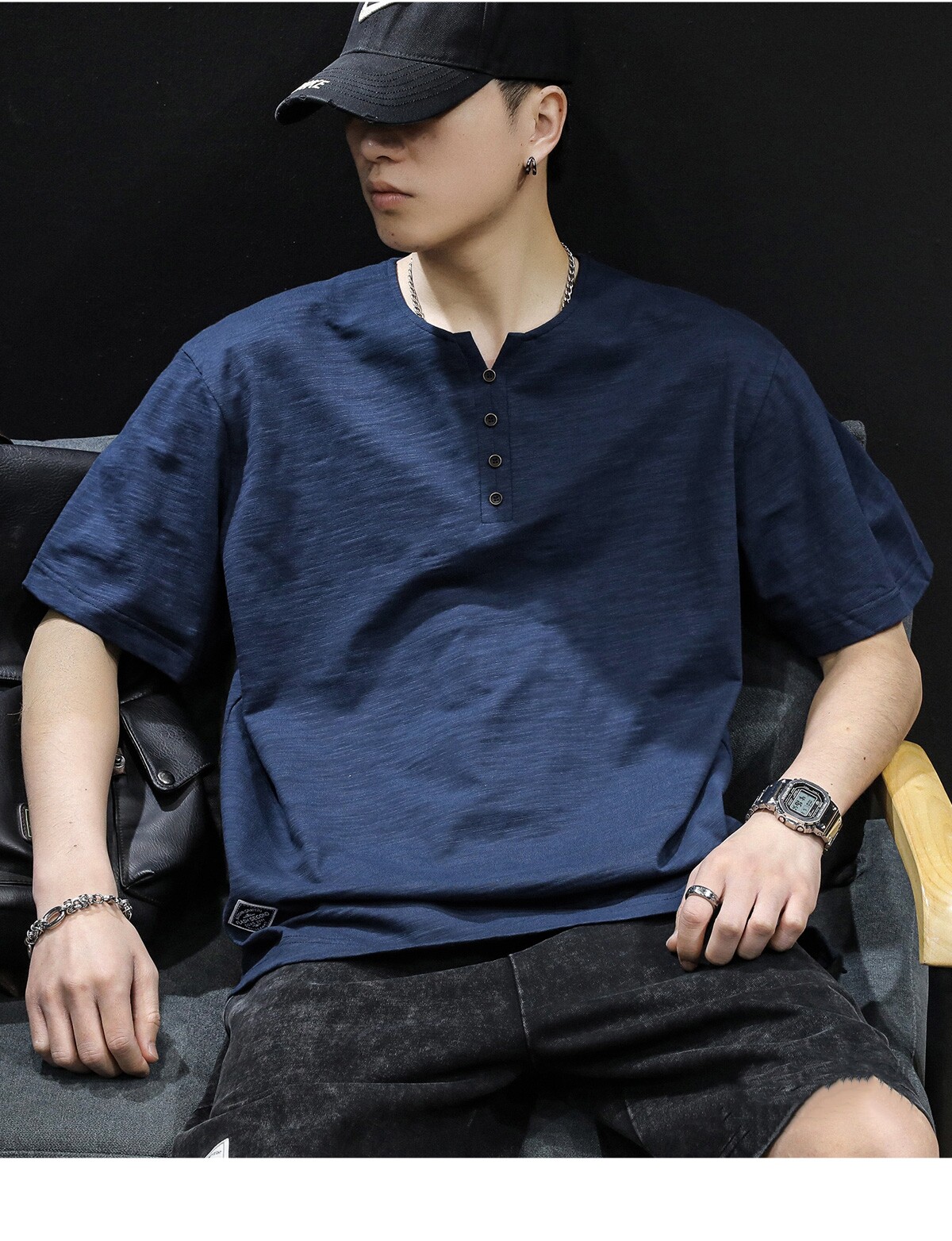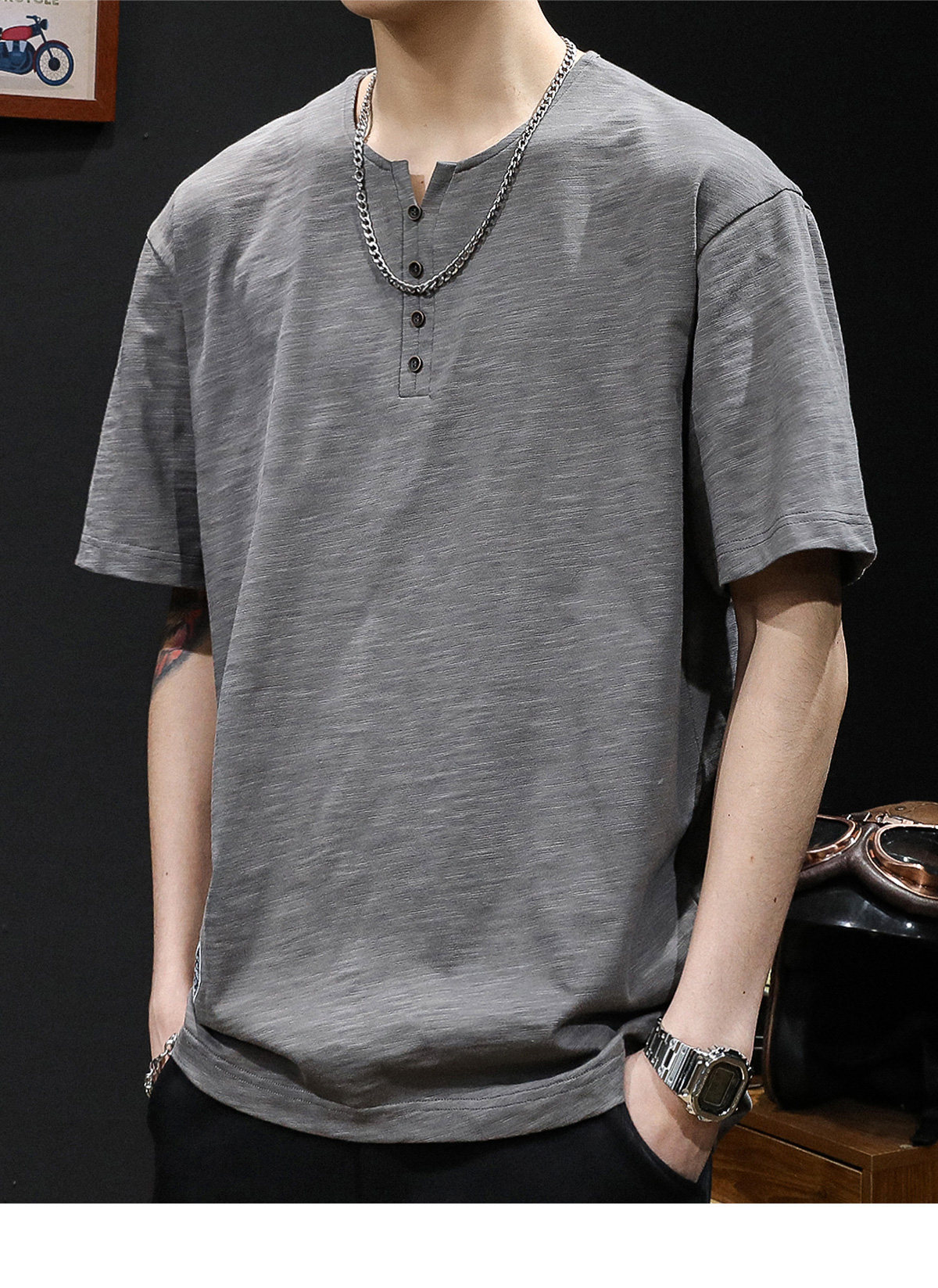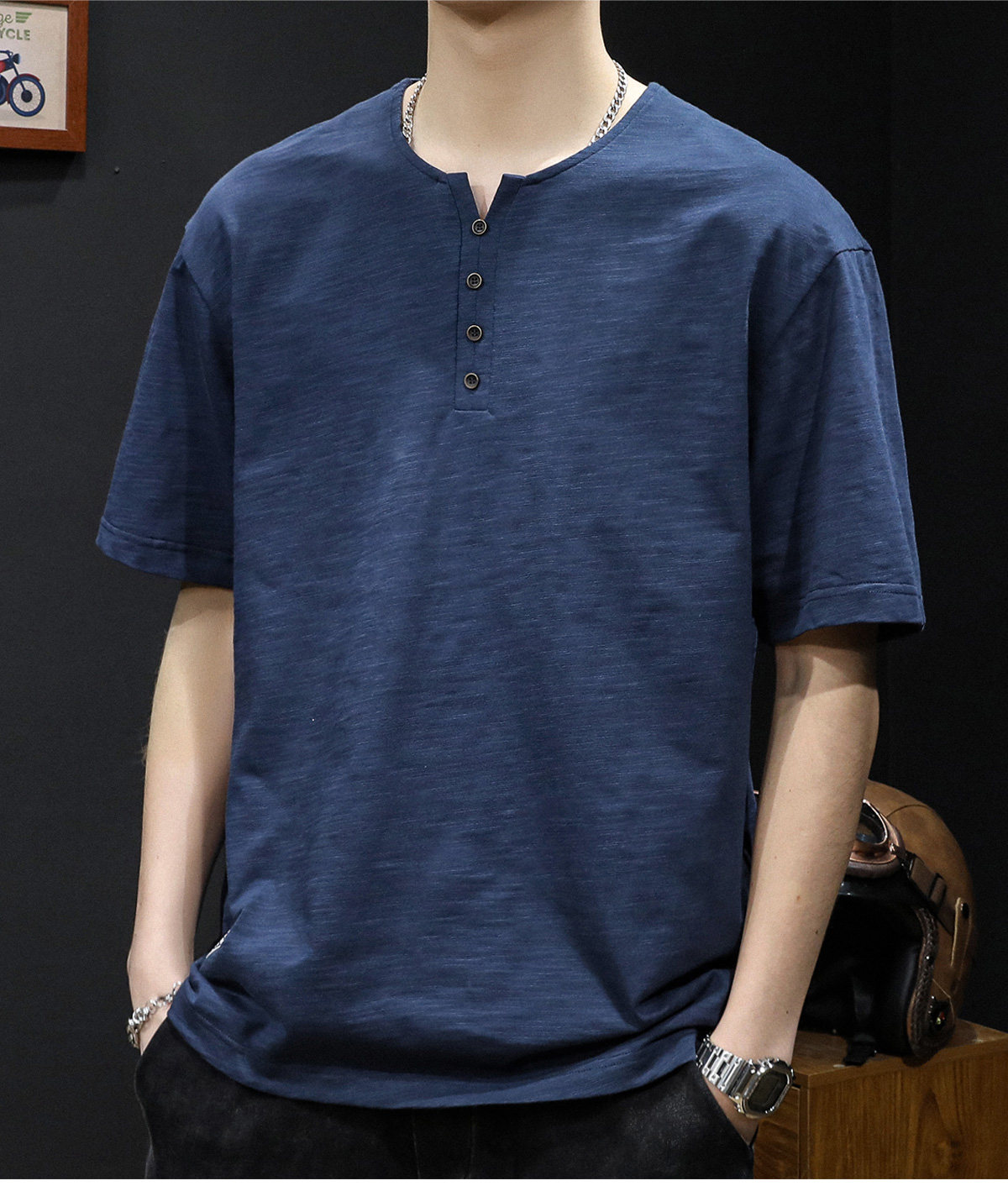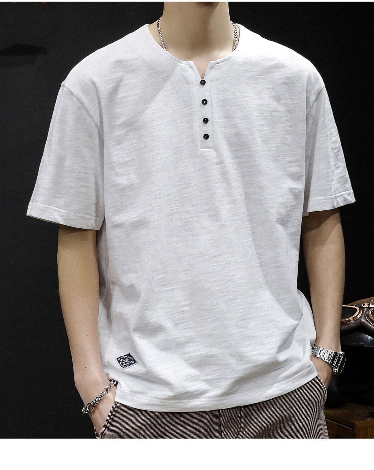 Бамбуковая хлопковая японская ретро футболка с коротким рукавом, свободный крой